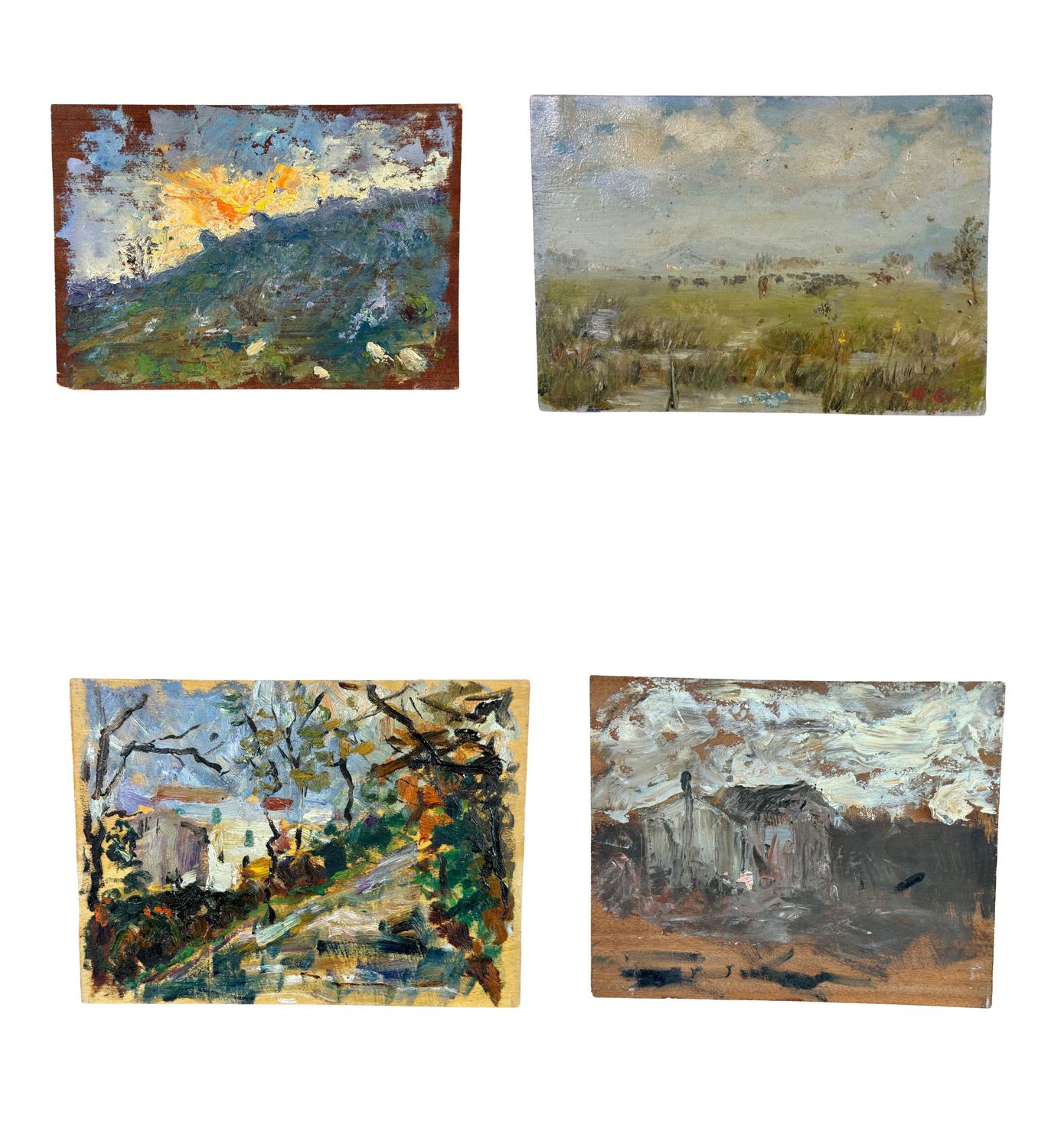 Lotto di 4 dipinti olio su tavola da A. Cuomo. Dimensioni cadauno: 18x24 cm. Opere in buone condizioni.