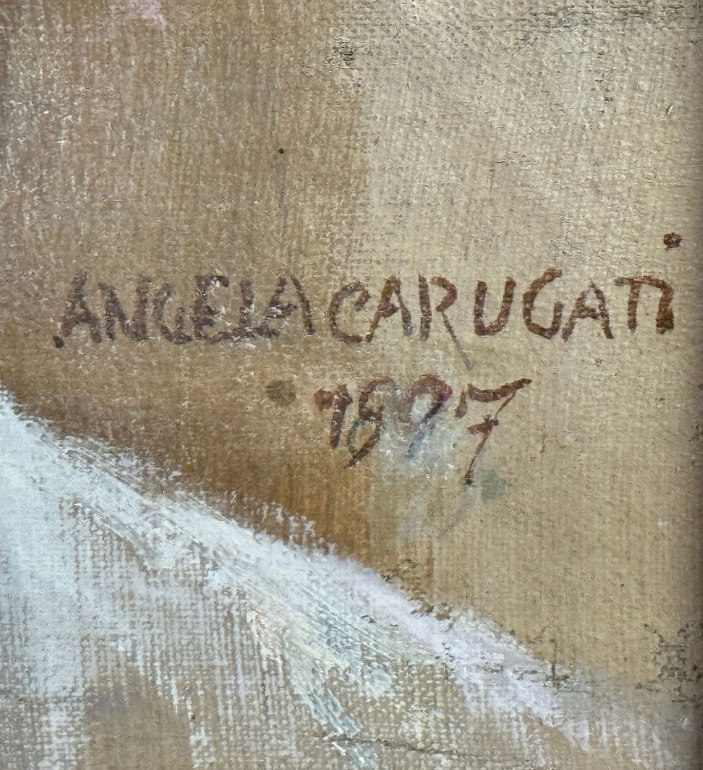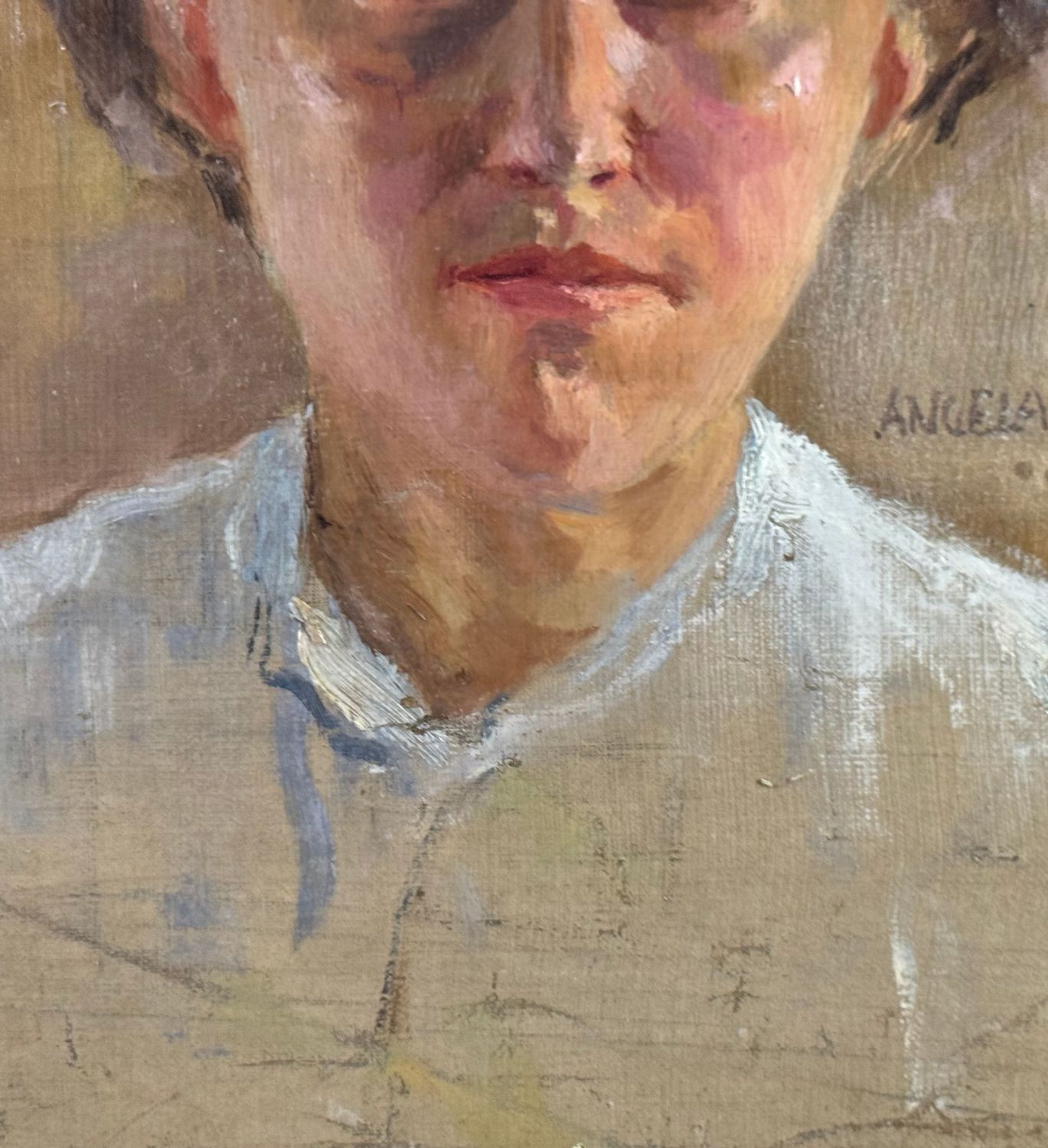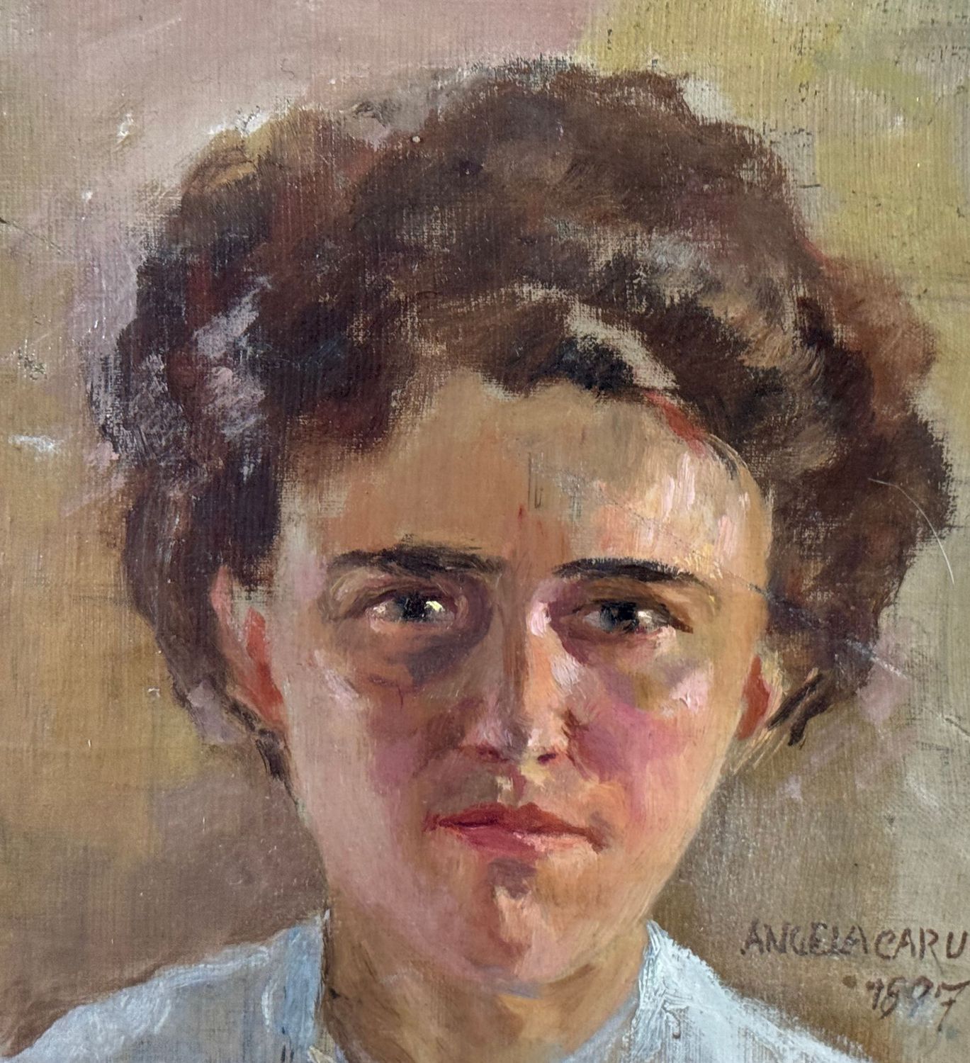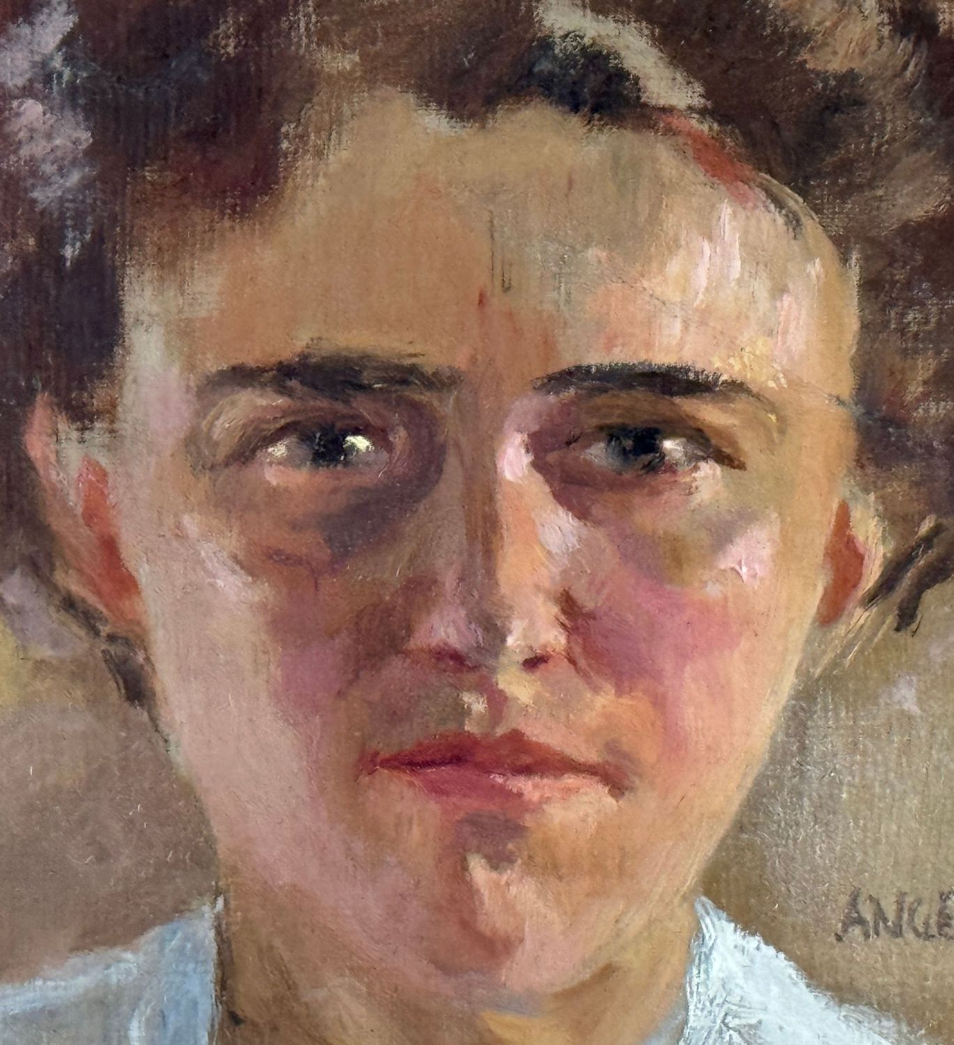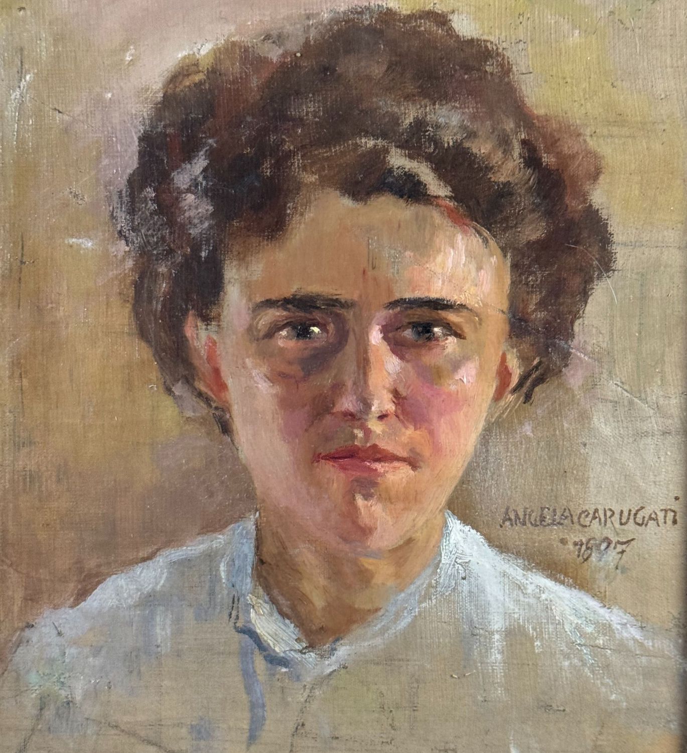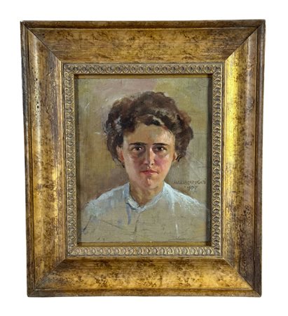 Dipinto olio su tela, periodo XX secolo scuola Italiana, raffigurante Ritratto di donna. Dimensioni compreso cornice: 39x45 cm. Dimensioni interno cornice: 23x28 cm. Reca firma laterale a destra da Angela Carugati (1881 - 1977). Opera in buone condizioni.
