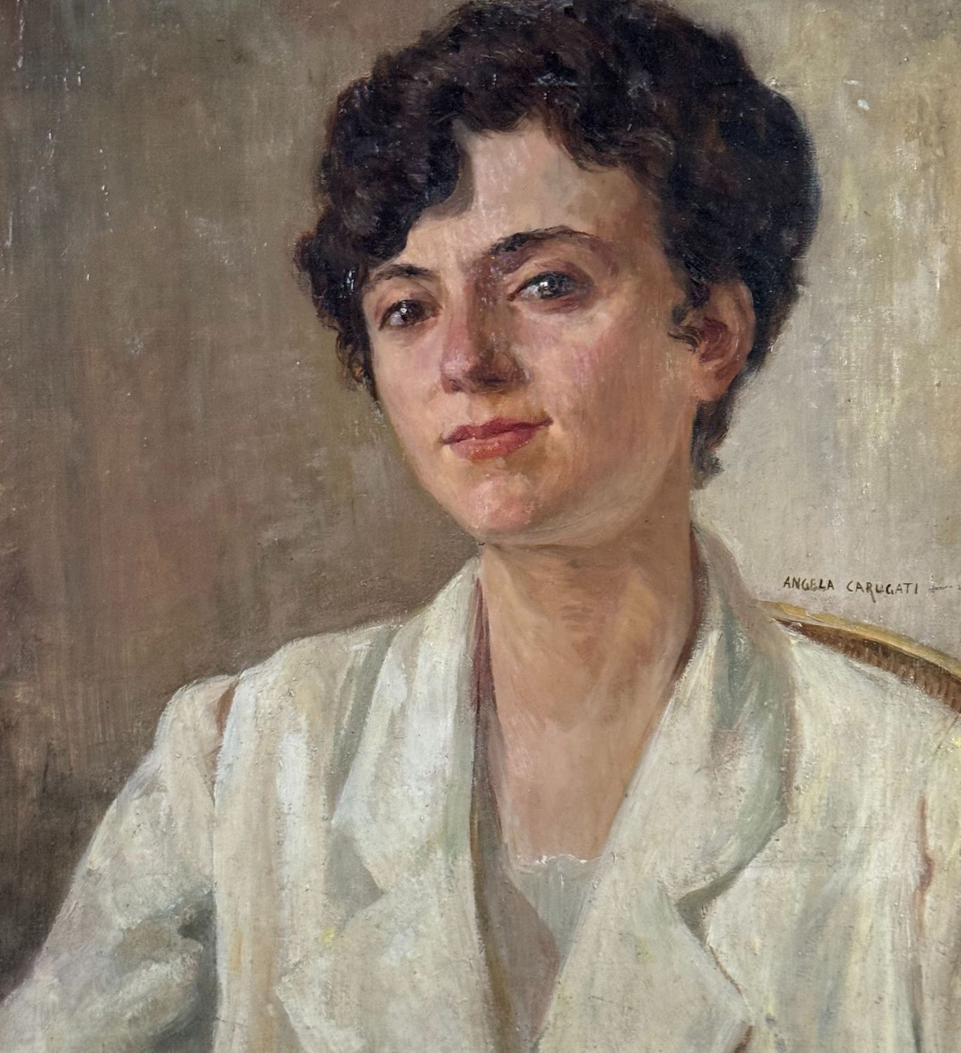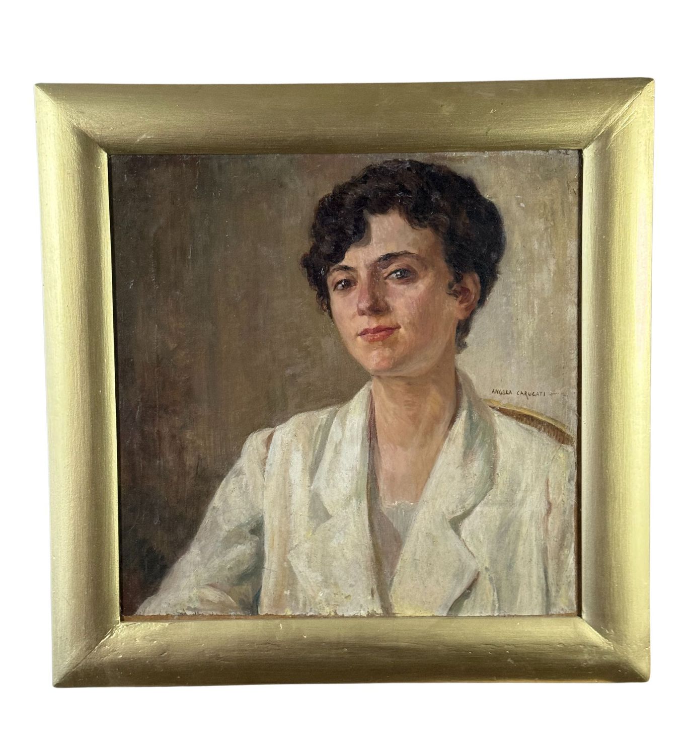 Dipinto olio su tela applicata su pannello, periodo XX secolo scuola Italiana, raffigurante Ritratto di donna. Dimensioni compreso cornice: 65x65 cm. Dimensioni interno cornice: 50x50 cm. Reca firma laterale a destra da Angela Carugati (1881 - 1977). Opera in buone condizioni.