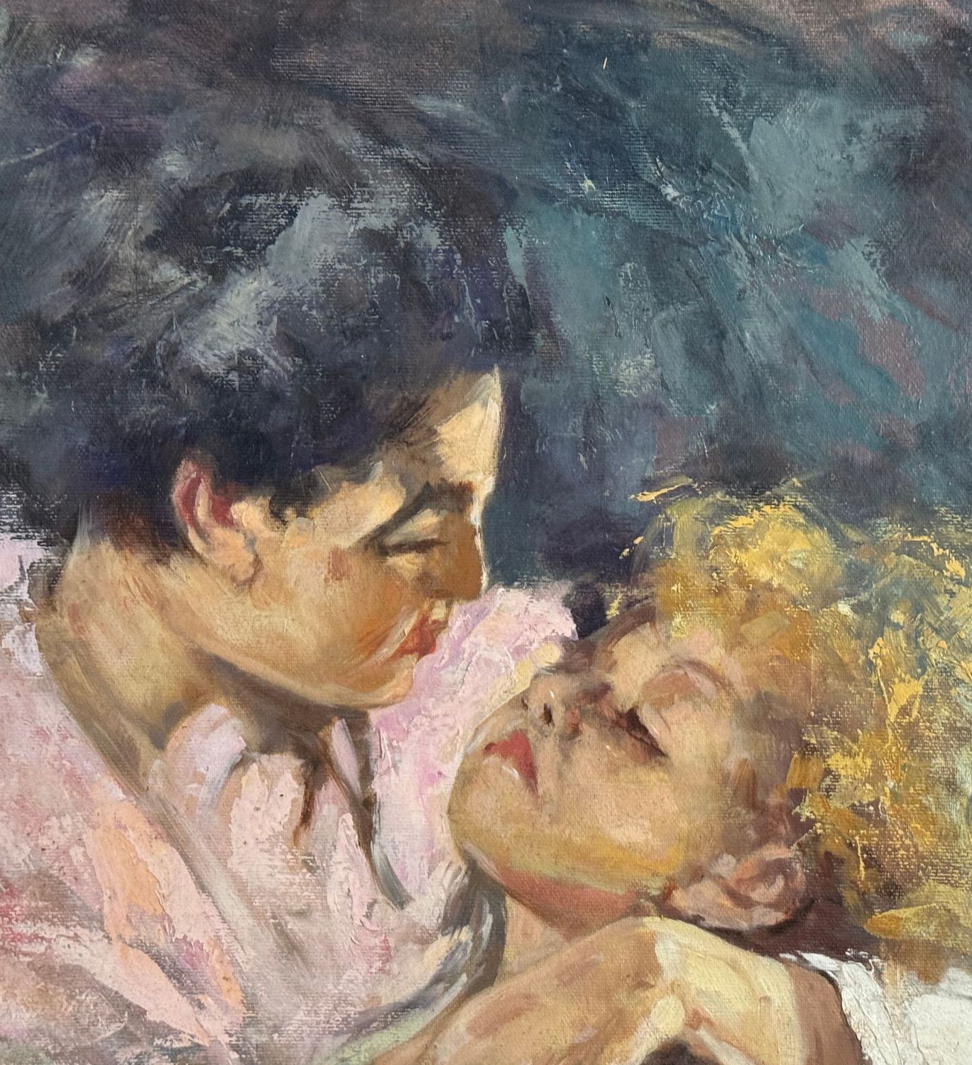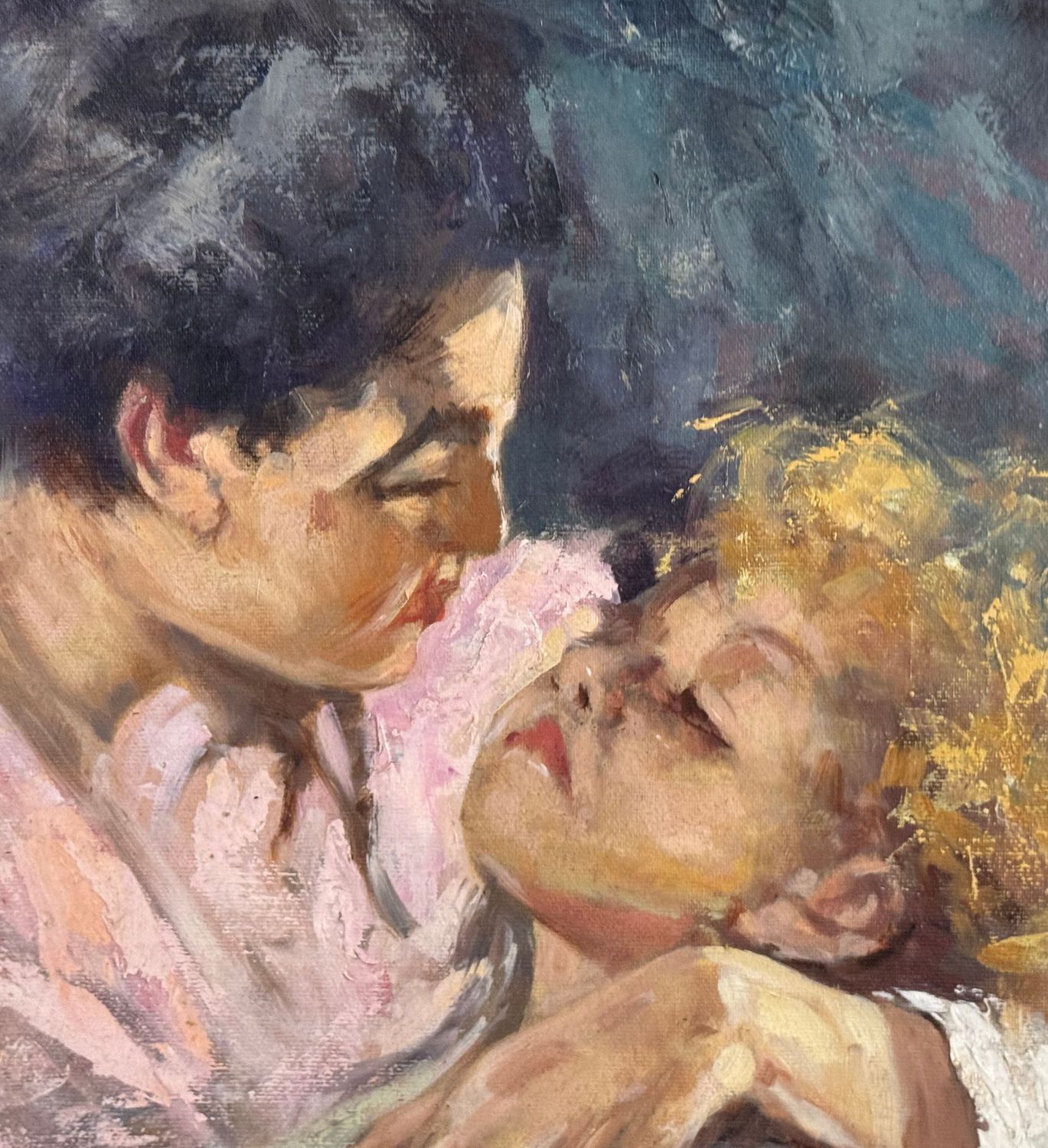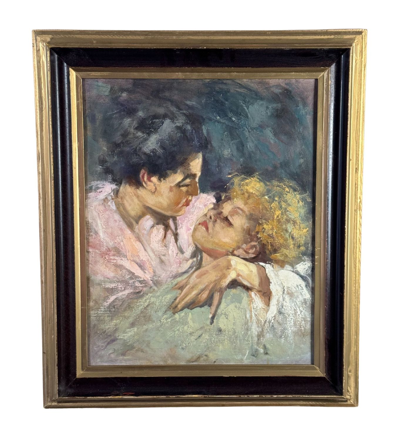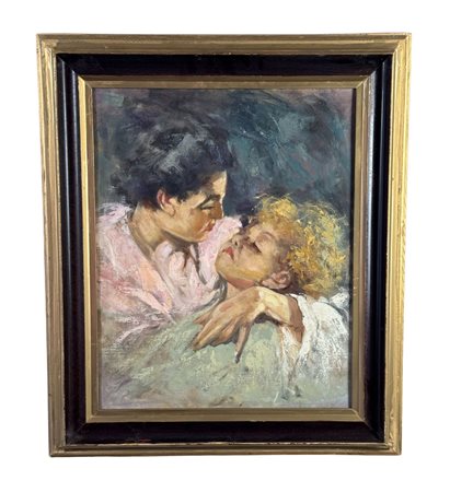 Dipinto olio su pannello, periodo XX secolo scuola Italiana, raffigurante "L'abbraccio" da Vincenzo Irolli. Dimensioni compreso cornice: 52x61 cm. Dimensioni interno cornice: 39x49 cm. Da artista anonimo. Opera in buone condizioni.