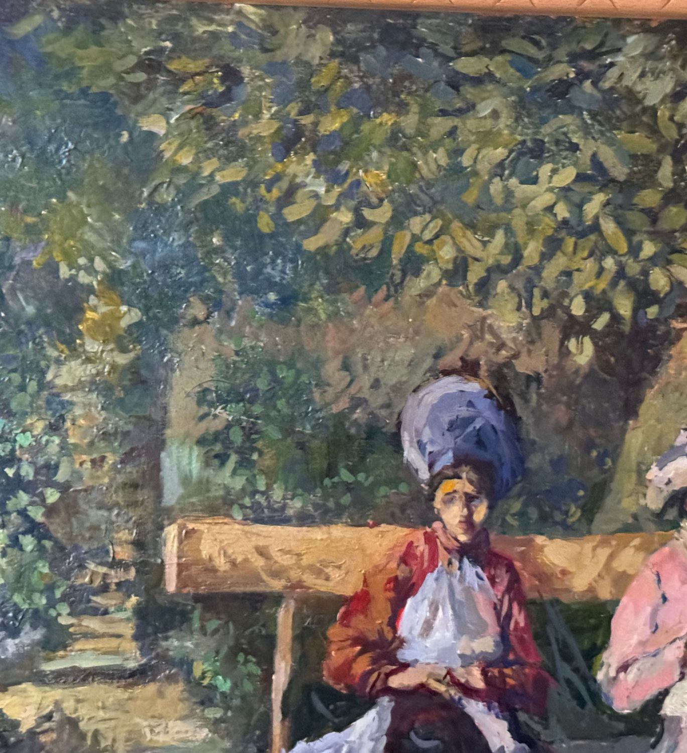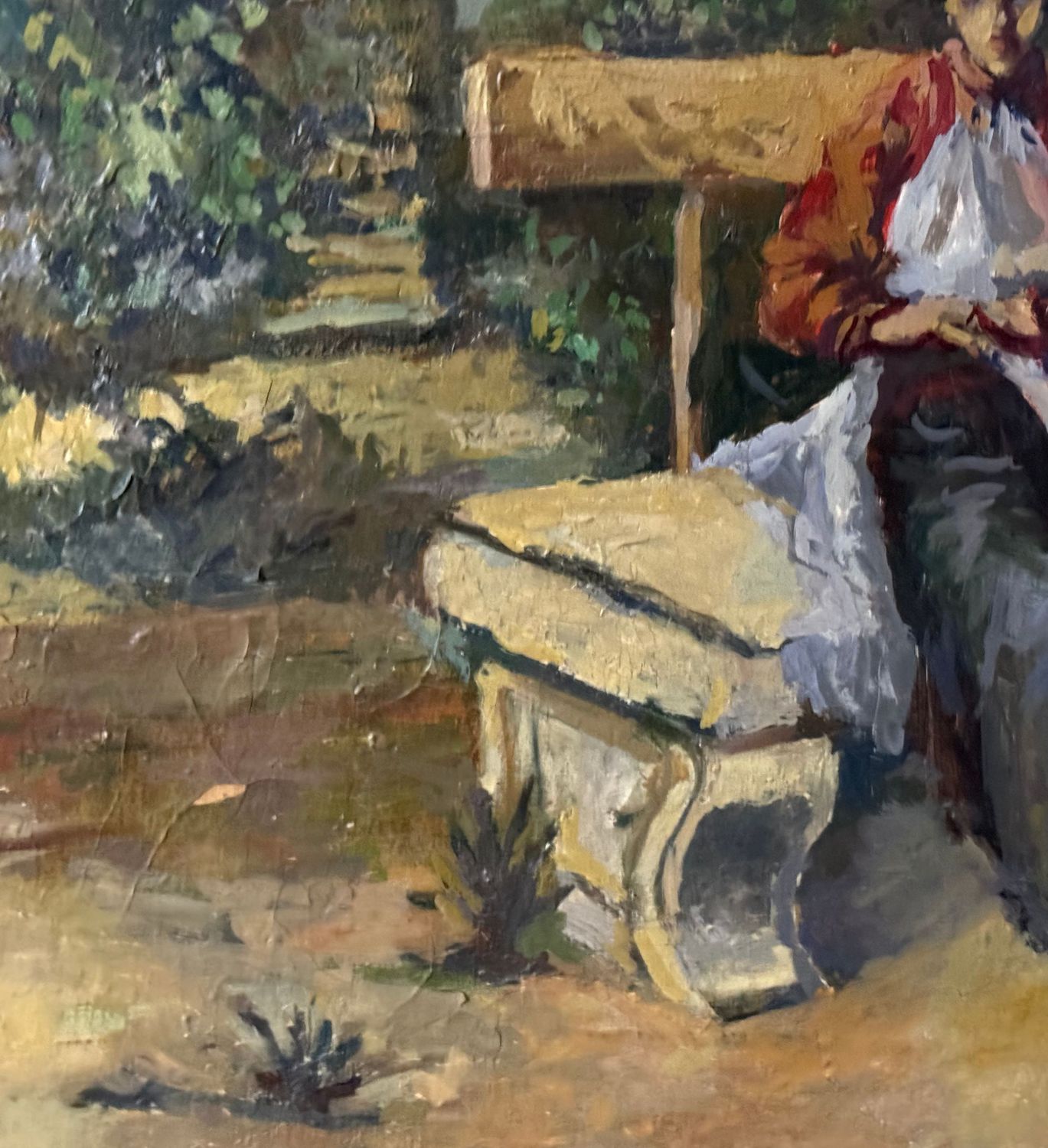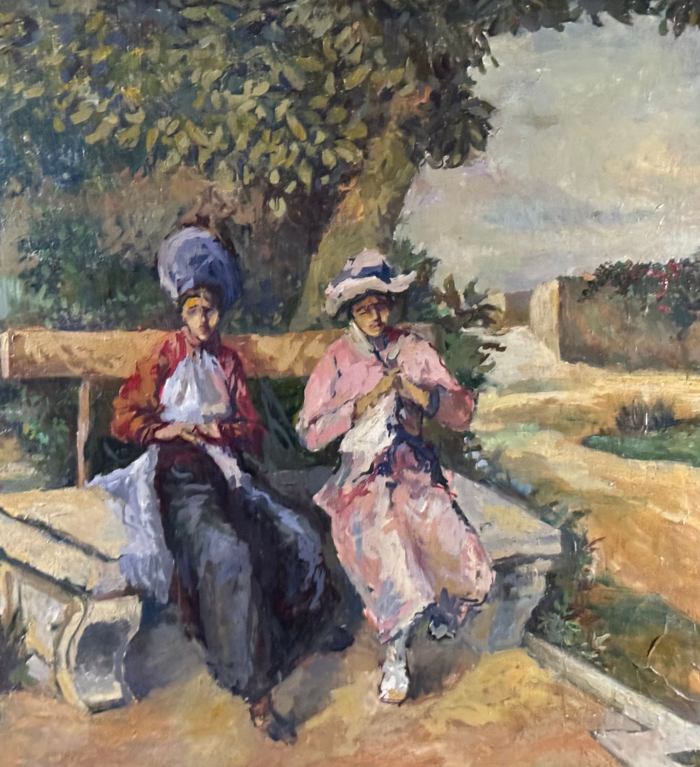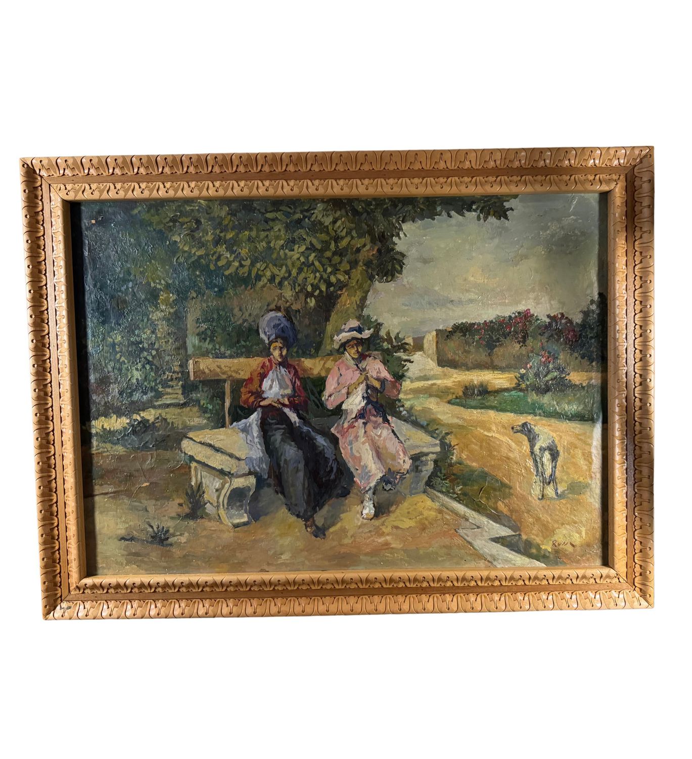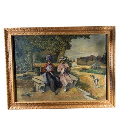 Dipinto olio su tela, periodo XIX secolo scuola Italiana, raffigurante Donne al giardino. Dimensioni compreso cornice: 114x86 cm. Dimensioni interno cornice: 100x71 cm. Reca firma in basso a destra da artista non identificato. Opera in buone condizioni, con piccoli punti di restauro.