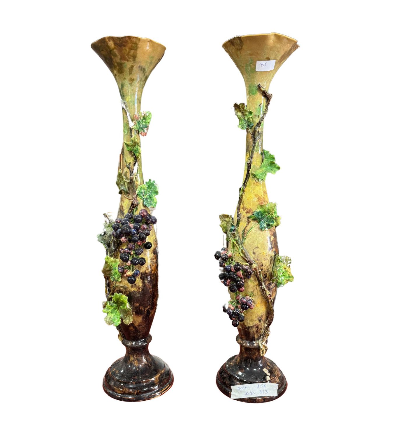 Coppia di vasi in ceramica, periodo XX secolo. Dimensioni: 72x15x15 cm. Piccole mancanze e lievi segni di vissuto come da foto allegate.