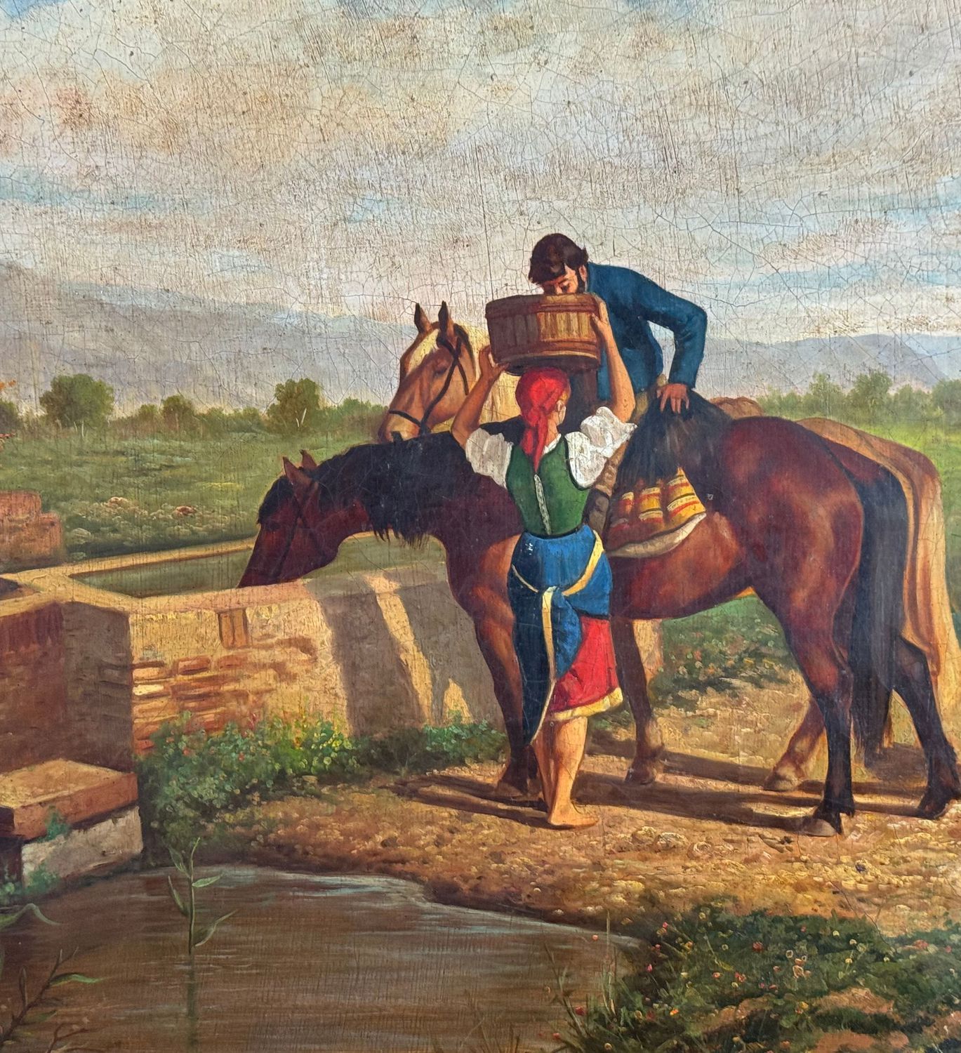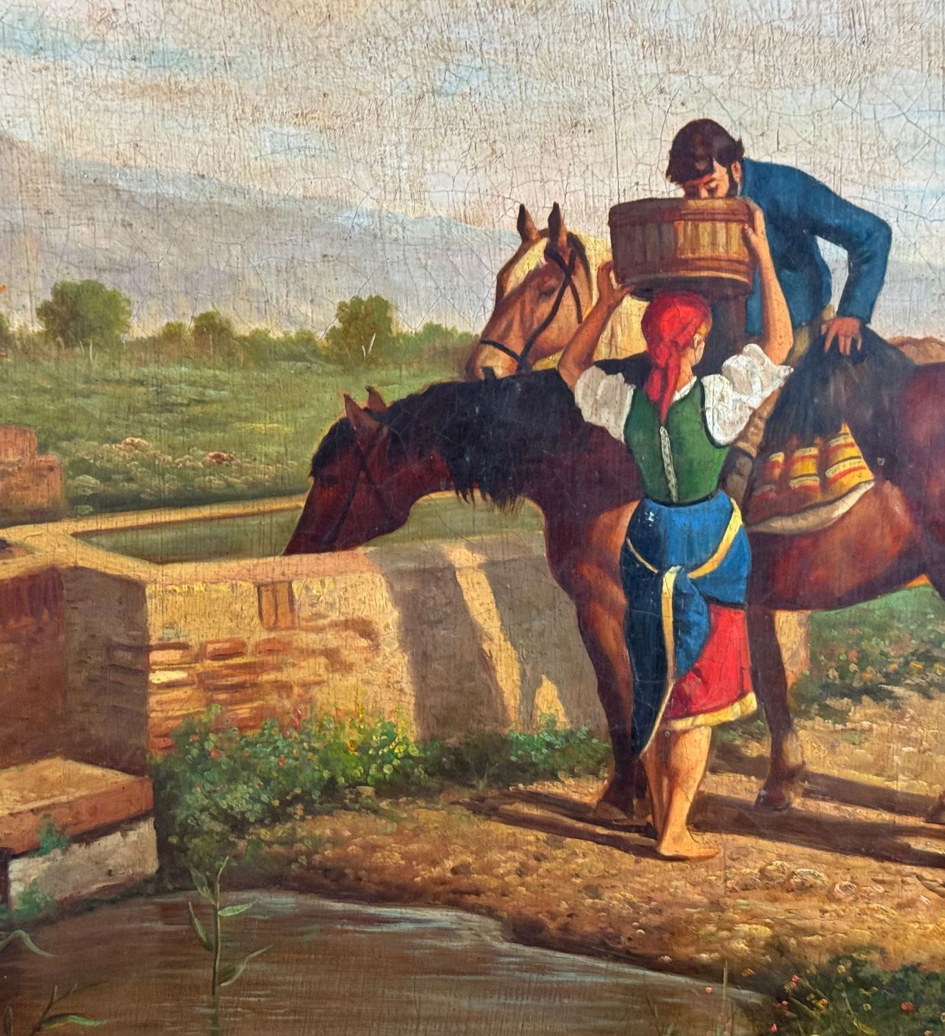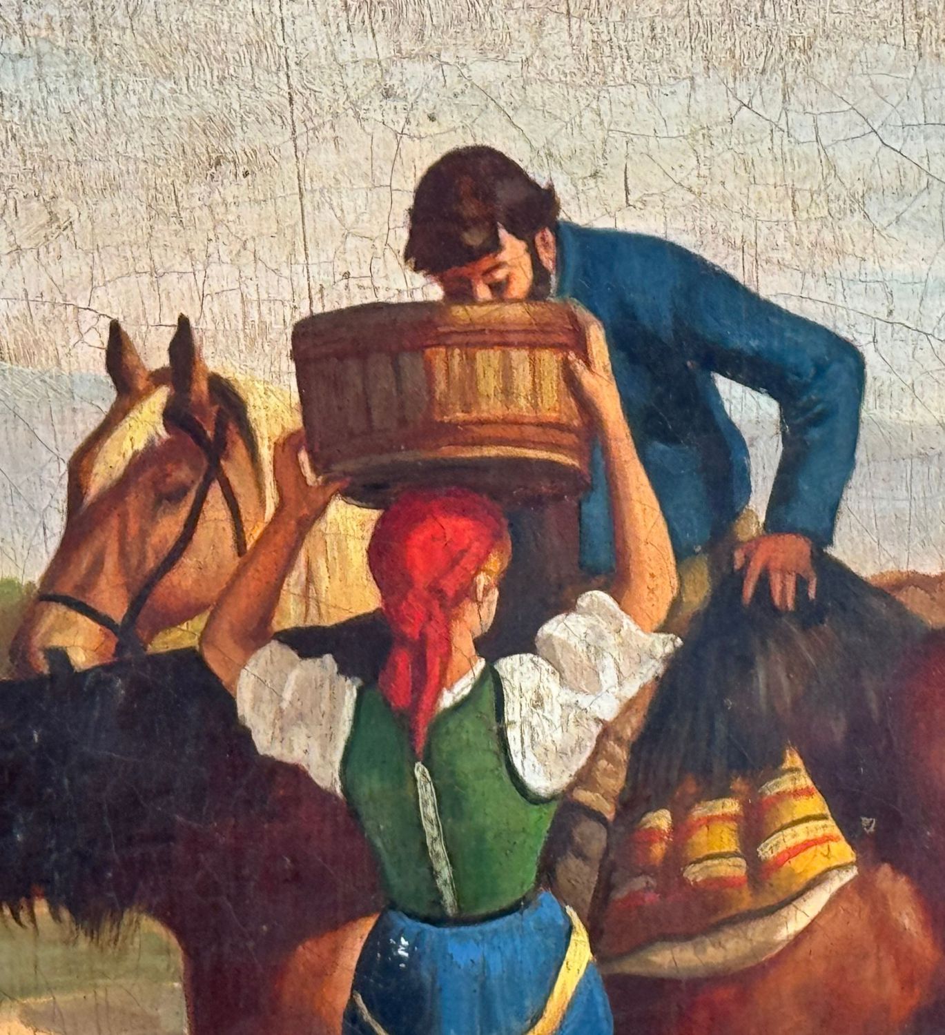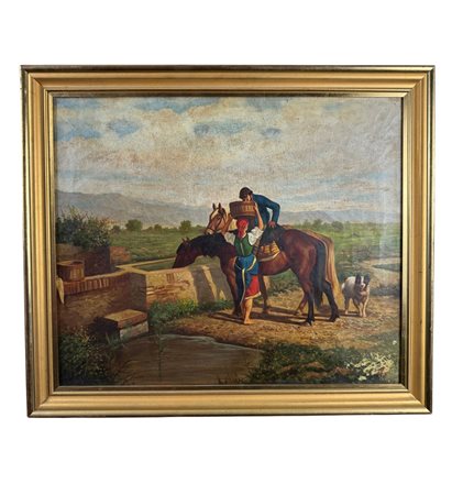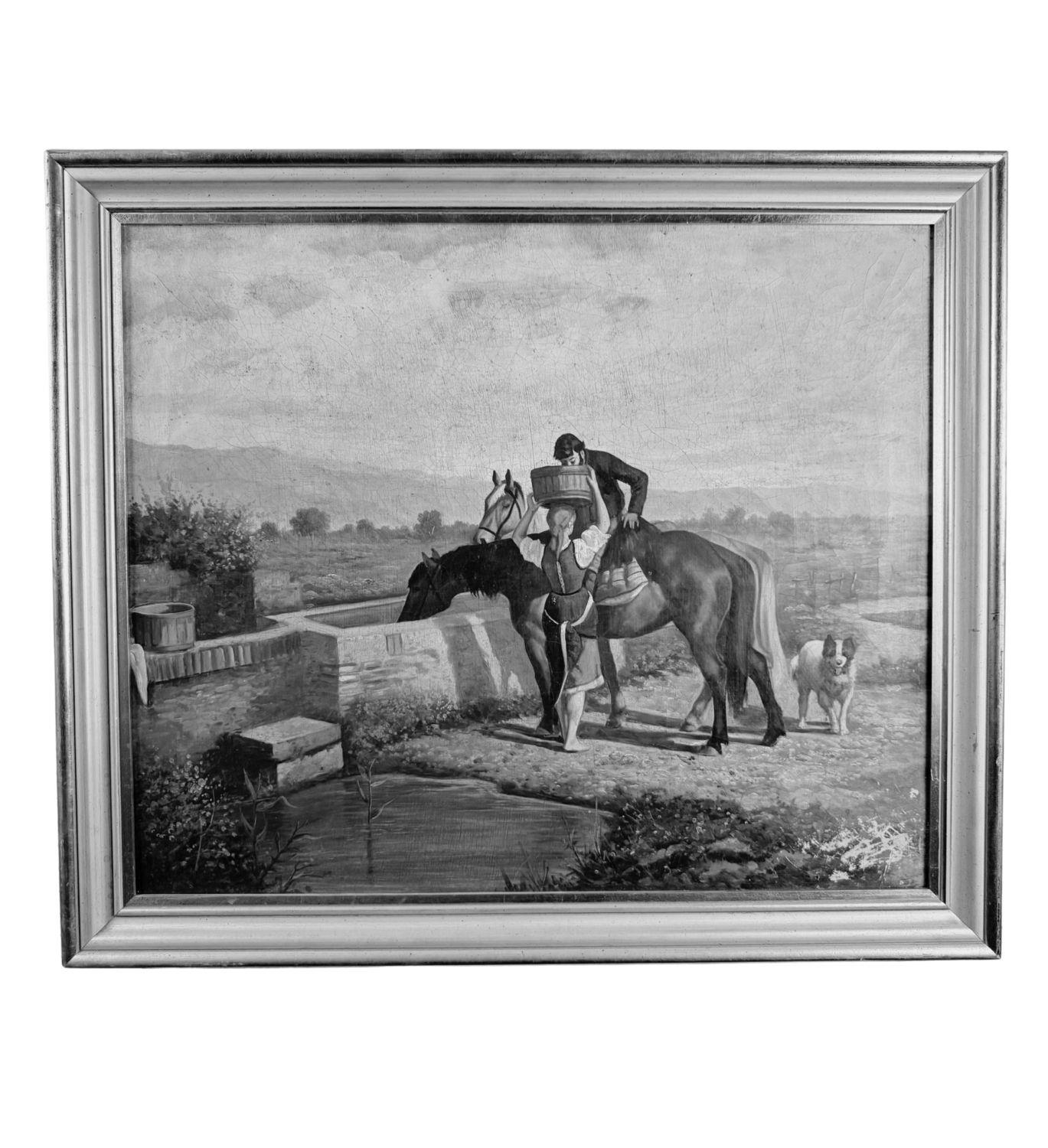 Dipinto olio su tela, periodo XX secolo scuola italiana, raffigurante Contadini. Dimensioni compreso cornice: 69x59 cm. Dimensioni interno cornice: 60x50 cm. Da artista anonimo. Opera in buone condizioni.