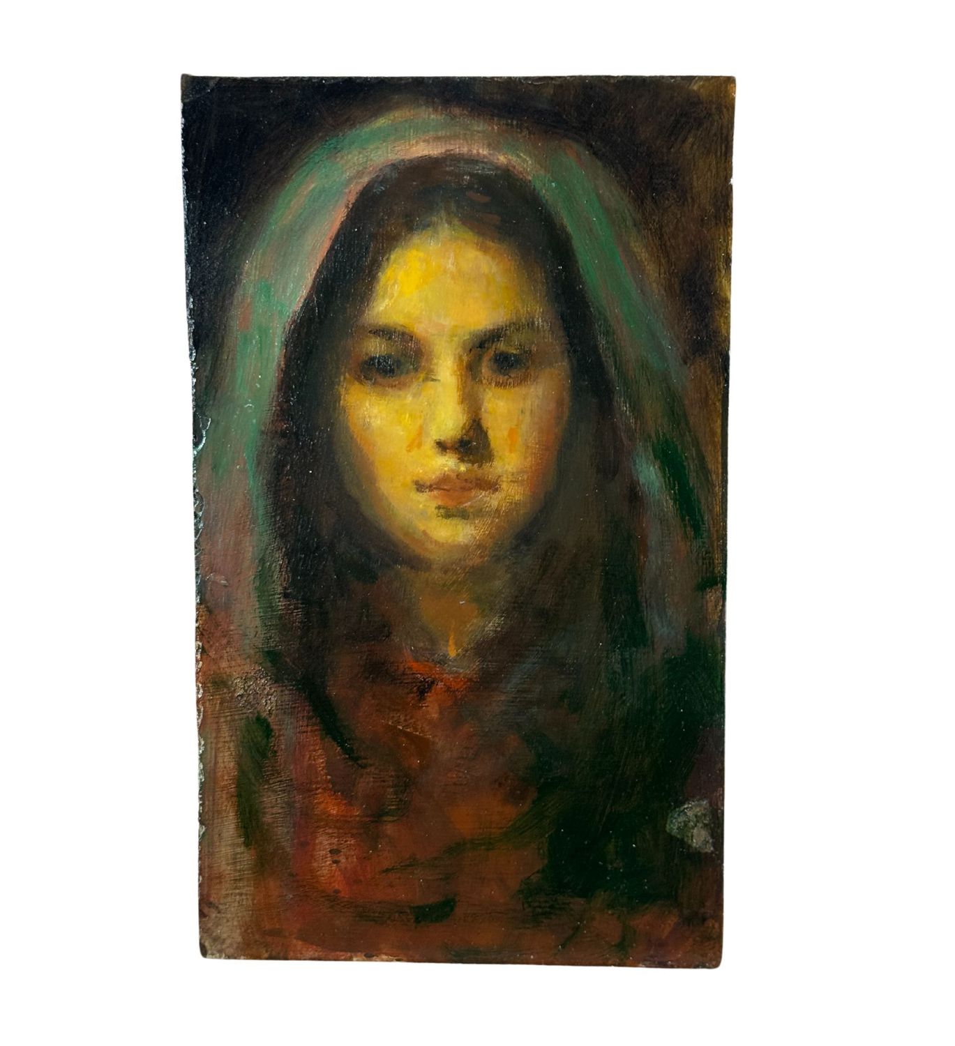 Dipinto olio su tavola, periodo prima metà del XX secolo scuola Italiana, raffigurante Ritratto di donna. Dimensioni: 24x14,5 cm. Da artista anonimo. Opera in buone condizioni.