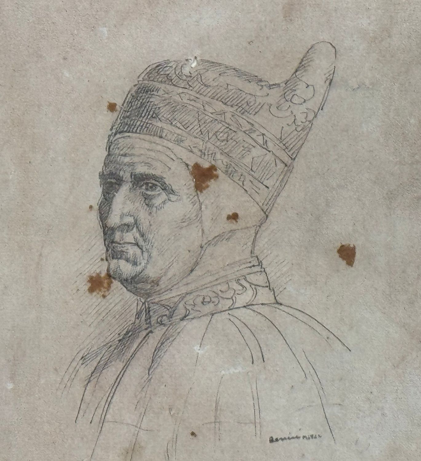 Disegno su carta, periodo XIX/XX secolo scuola Italiana, raffigurante Personaggio. Dimensioni compreso cornice: 36x44 cm. Dimensioni interno cornice: 18x26 cm. Da artista anonimo. Opera in buone condizioni con lievi segni di vissuto come da foto allegate.