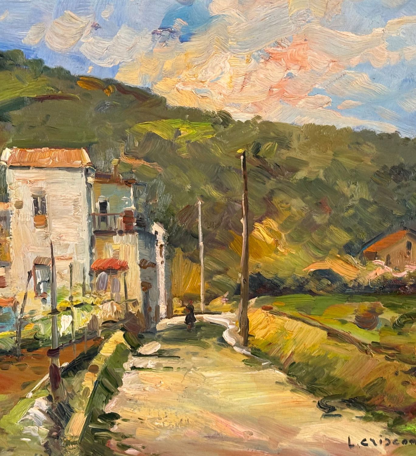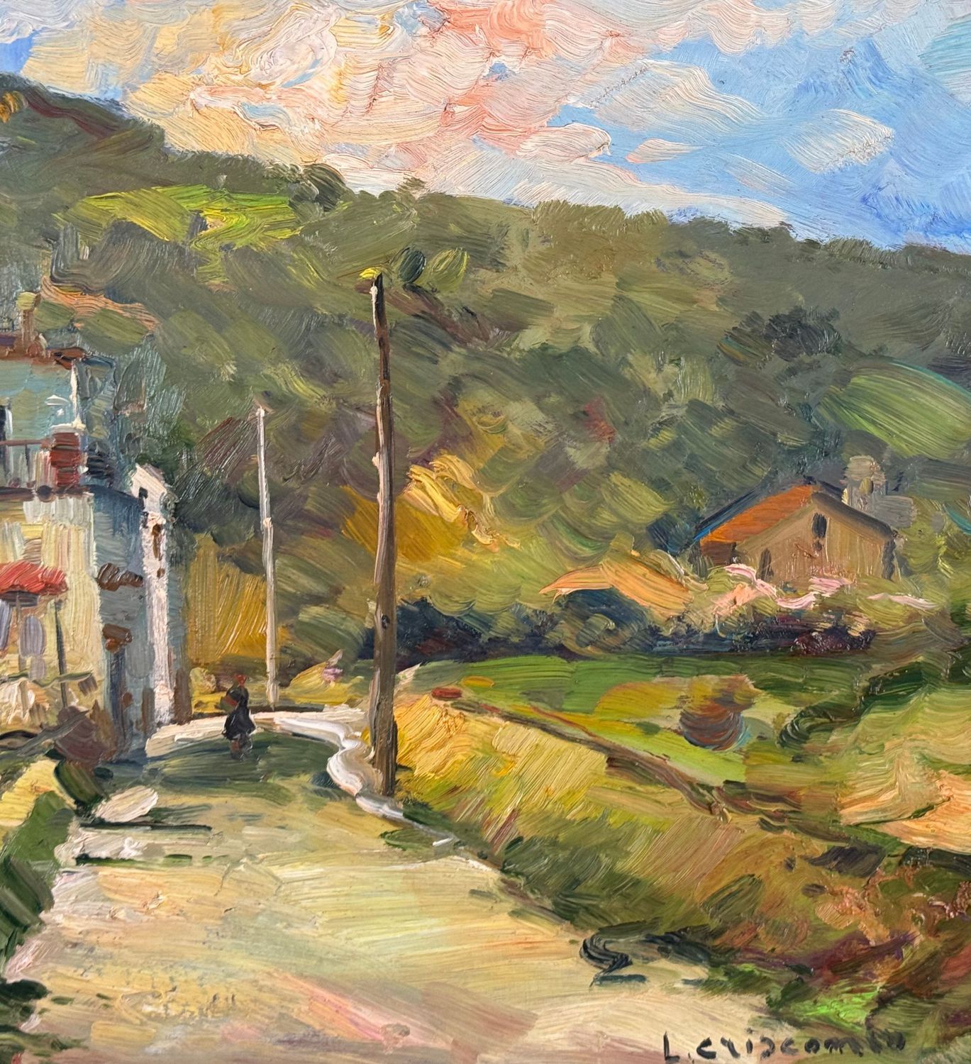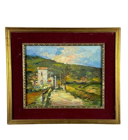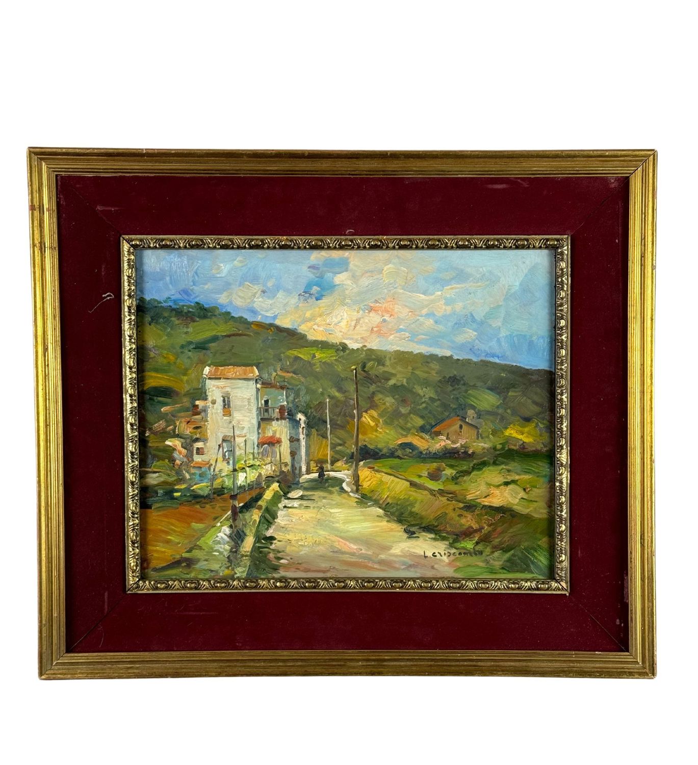 Dipinto olio su tavola, periodo XX secolo scuola Italiana, raffigurante Paesaggio. Dimensioni compreso cornice: 65x55 cm. Dimensioni interno cornice: 45x36 cm. Reca firma in basso a destra da Luigi Crisconio. Opera in buone condizioni.