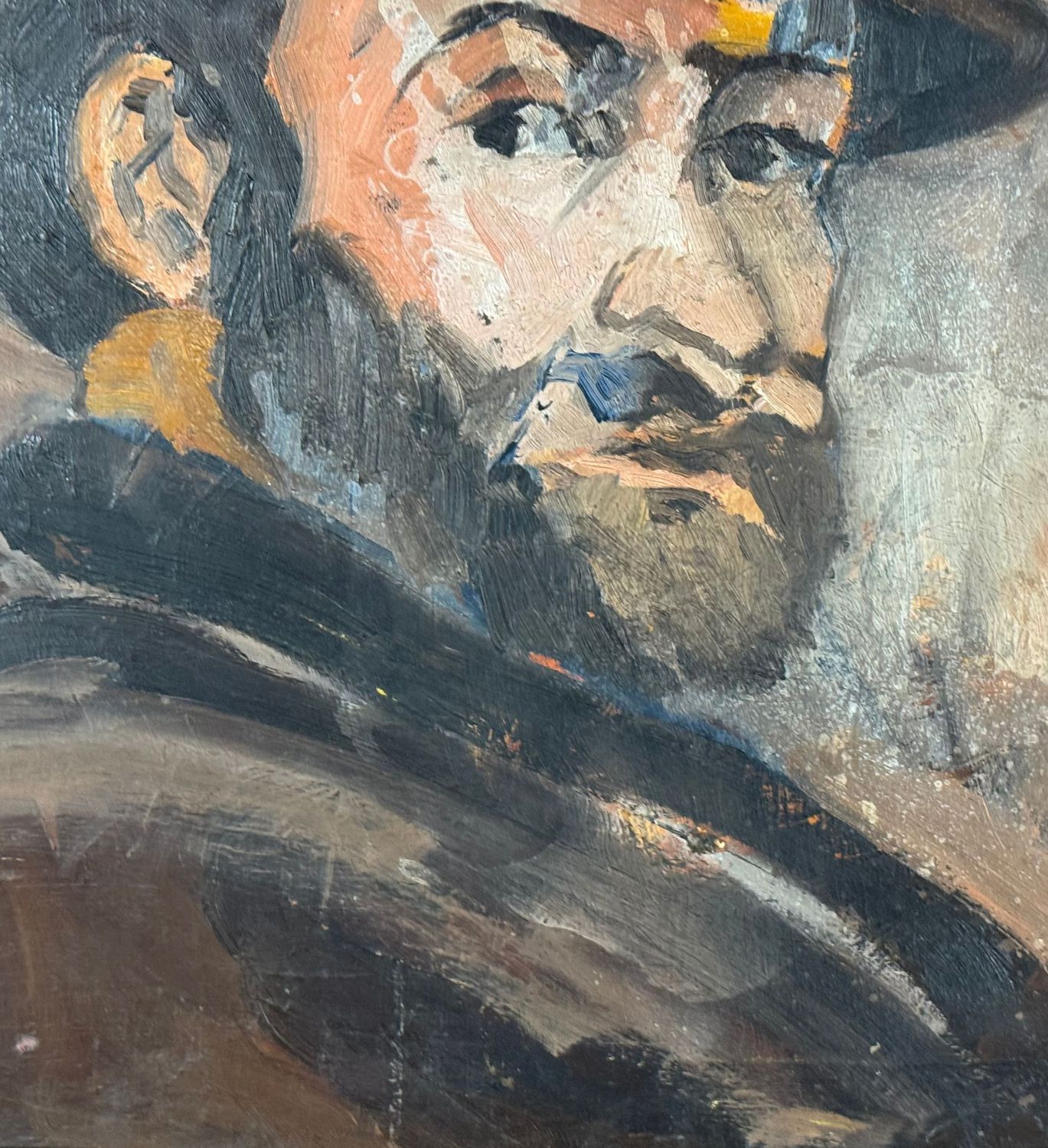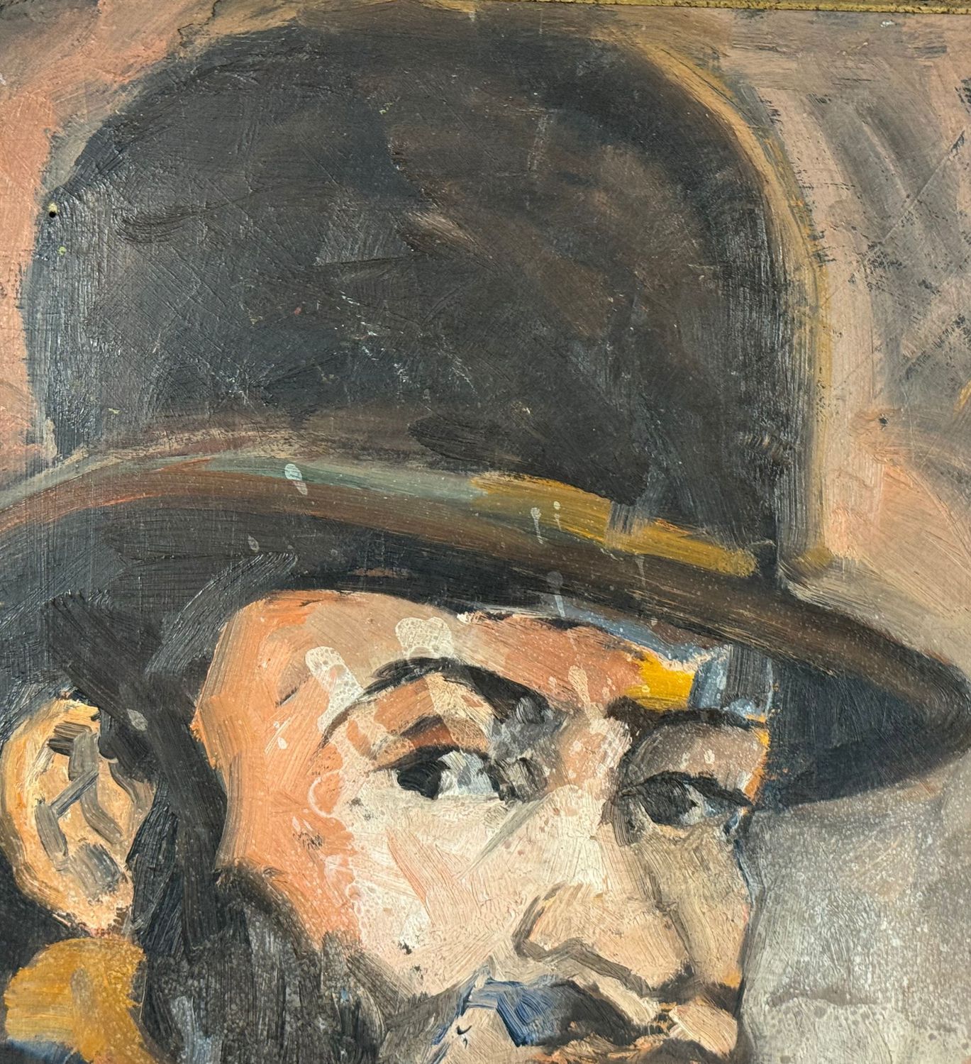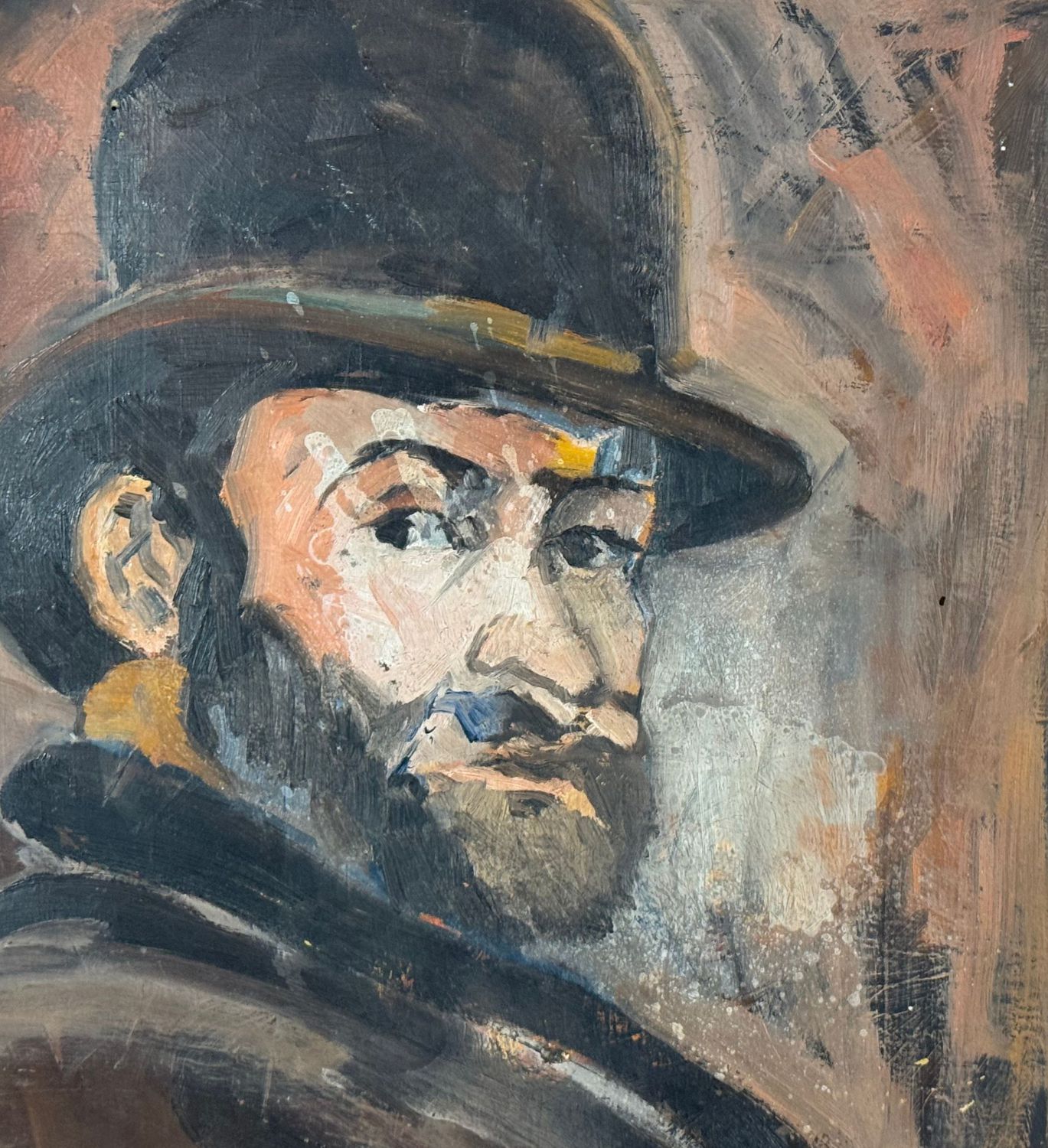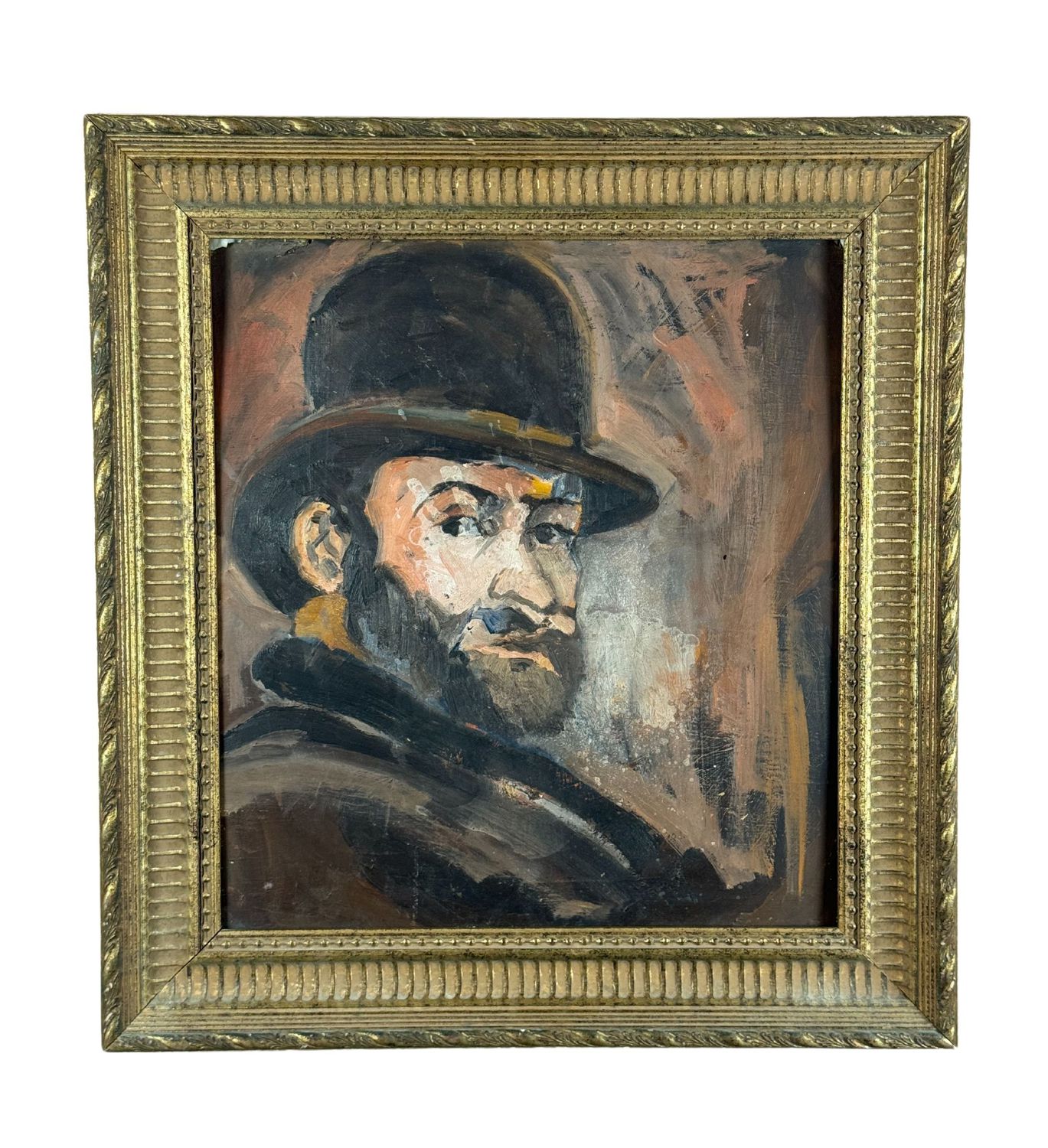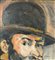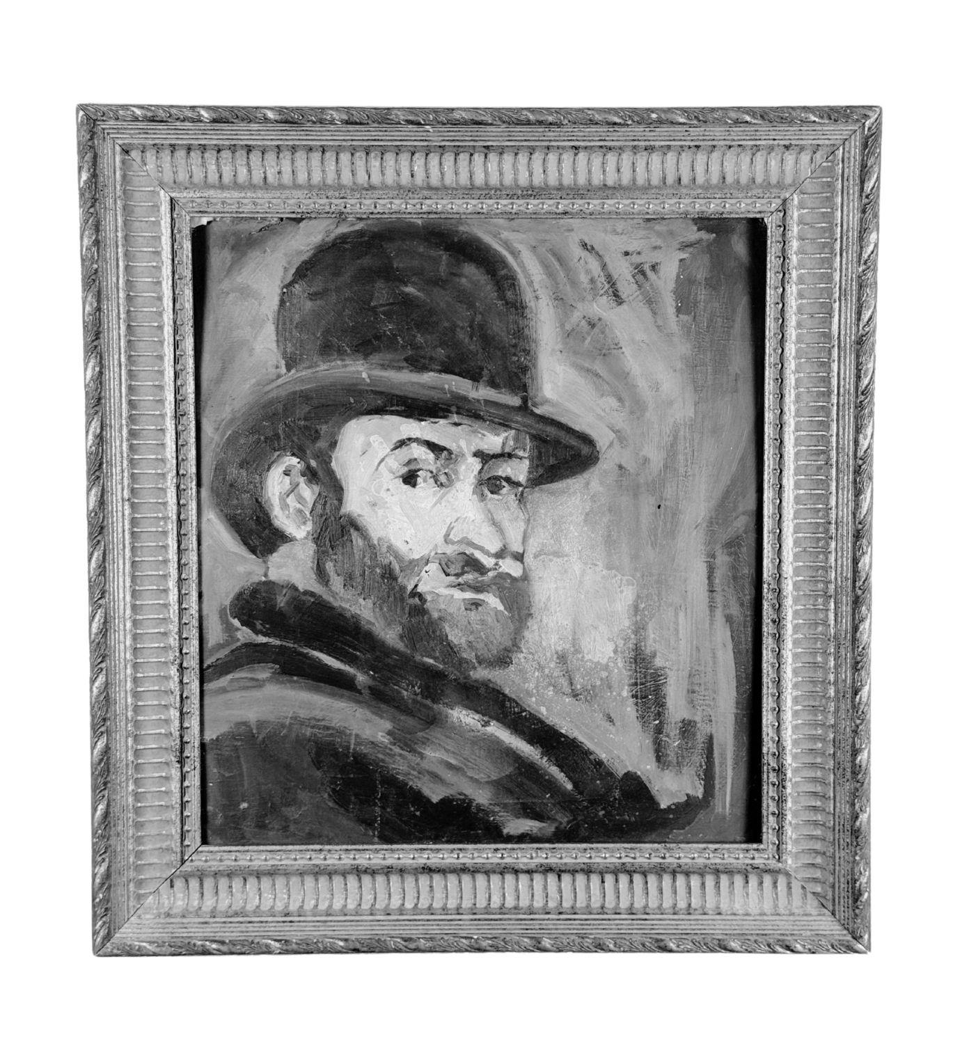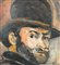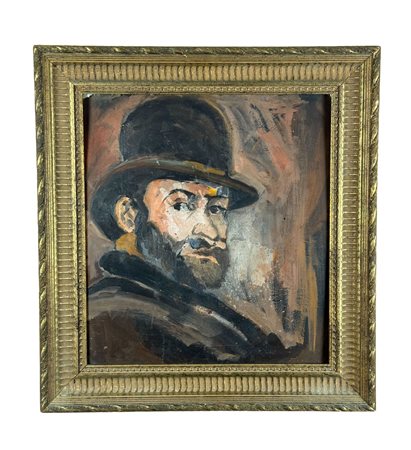 Dipinto olio su pannello, periodo XX secolo scuola Italiana, raffigurante Uomo con bombetta, omaggio a Paul Cézanne. Dimensioni compreso cornice: 57x61 cm. Dimensioni interno cornice: 43x47 cm. Da rtista anonimo. Opera in buone condizioni.