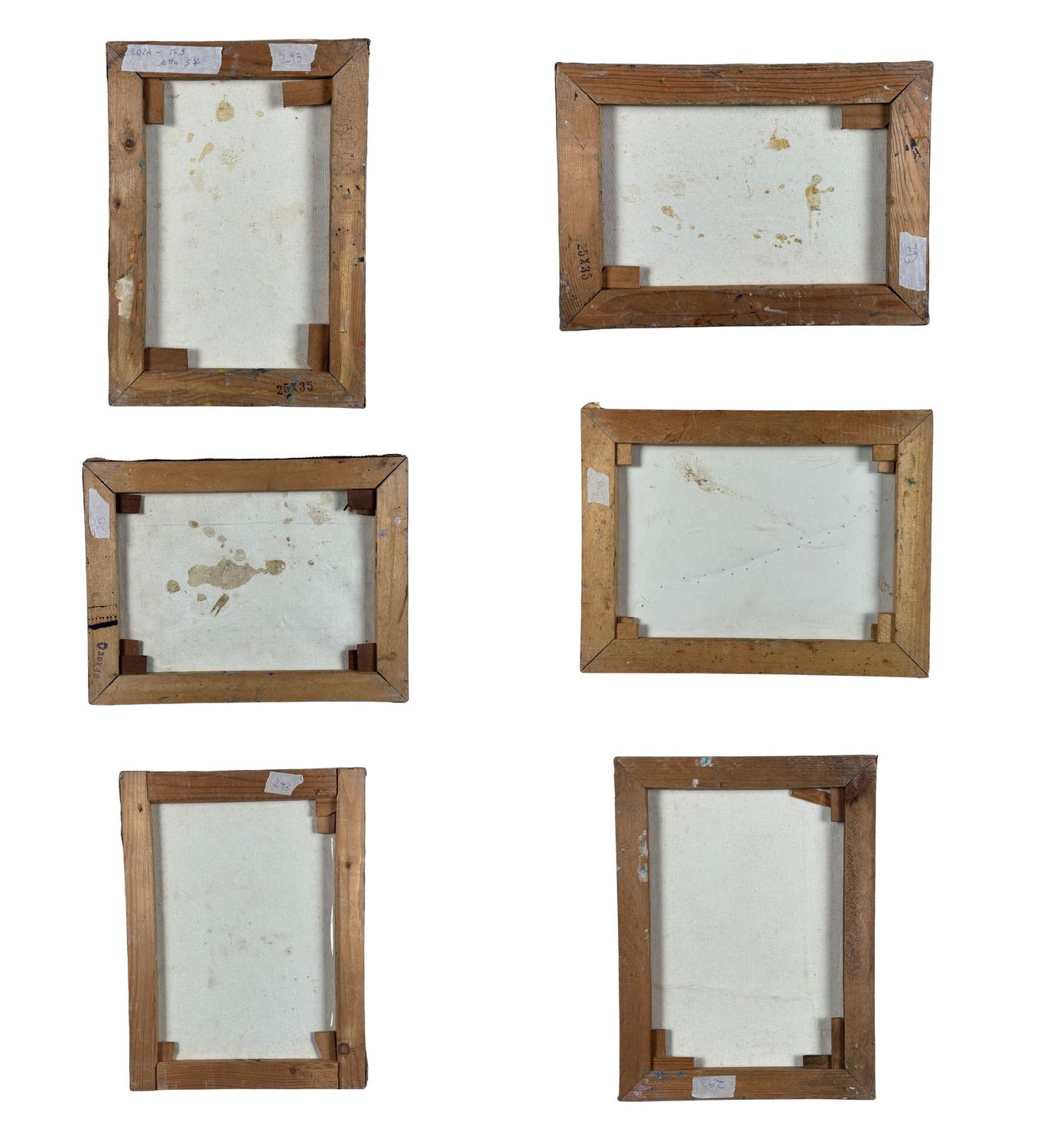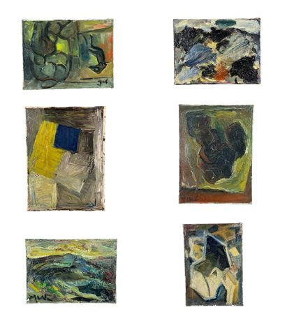 Lotto di 6 dipinti olio su tela, periodo XX secolo scuola Italiana, raffiguranti Figure astratte. Dimensioni elencate sul retro come da foto allegate.