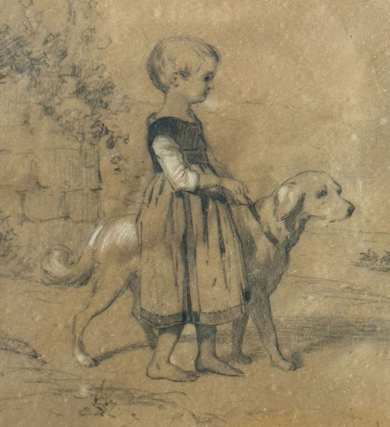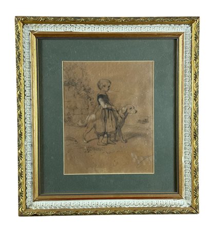 Disegno su carta, periodo XIX/XX secolo scuola Italiana, raffigurante Bambina con cane. Dimensioni compreso cornice: 34x37 cm. Dimensioni interno cornice: 17x21 cm. Reca firma in basso a destra da artista non identificato. Opera in buone condizioni.