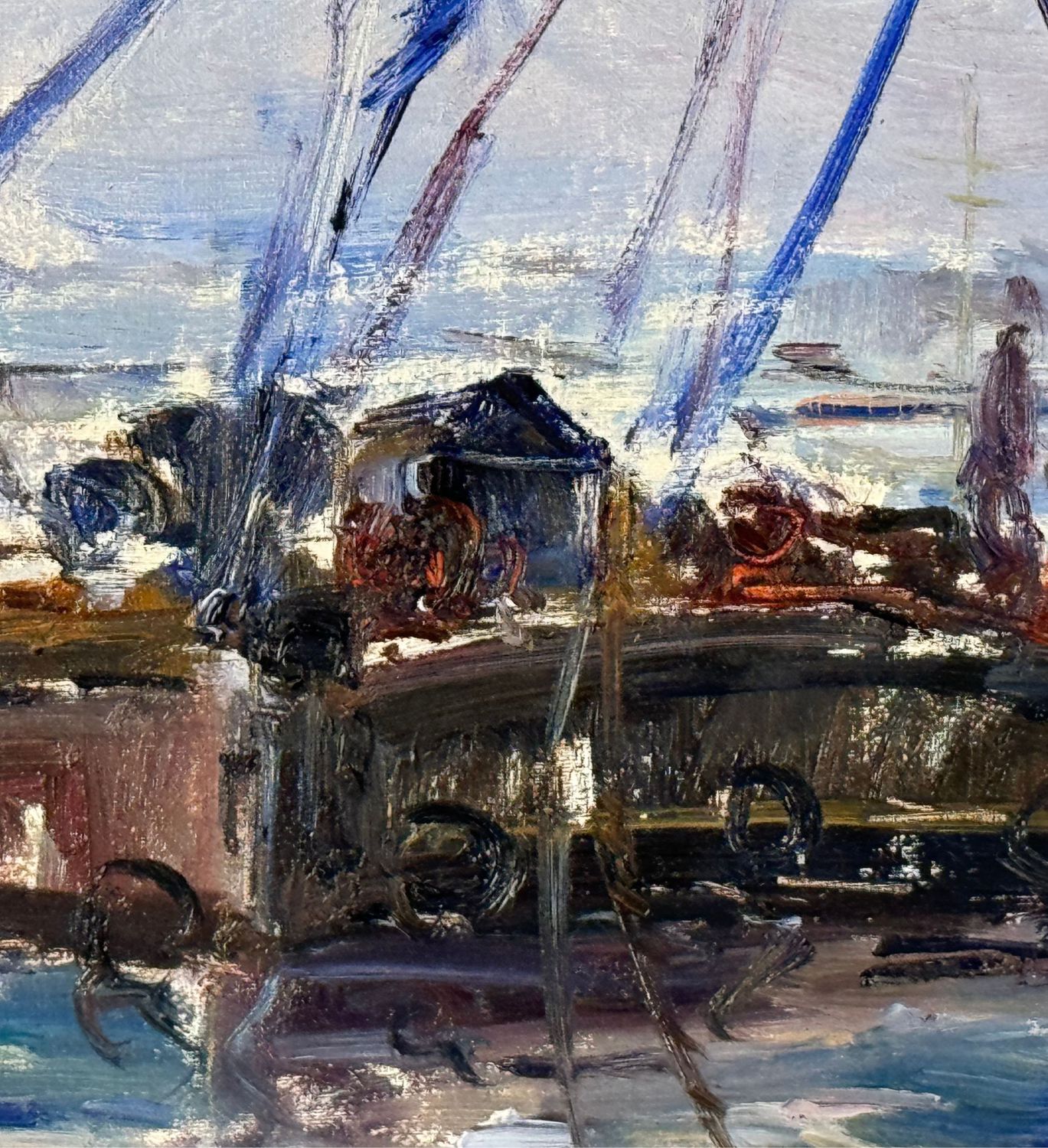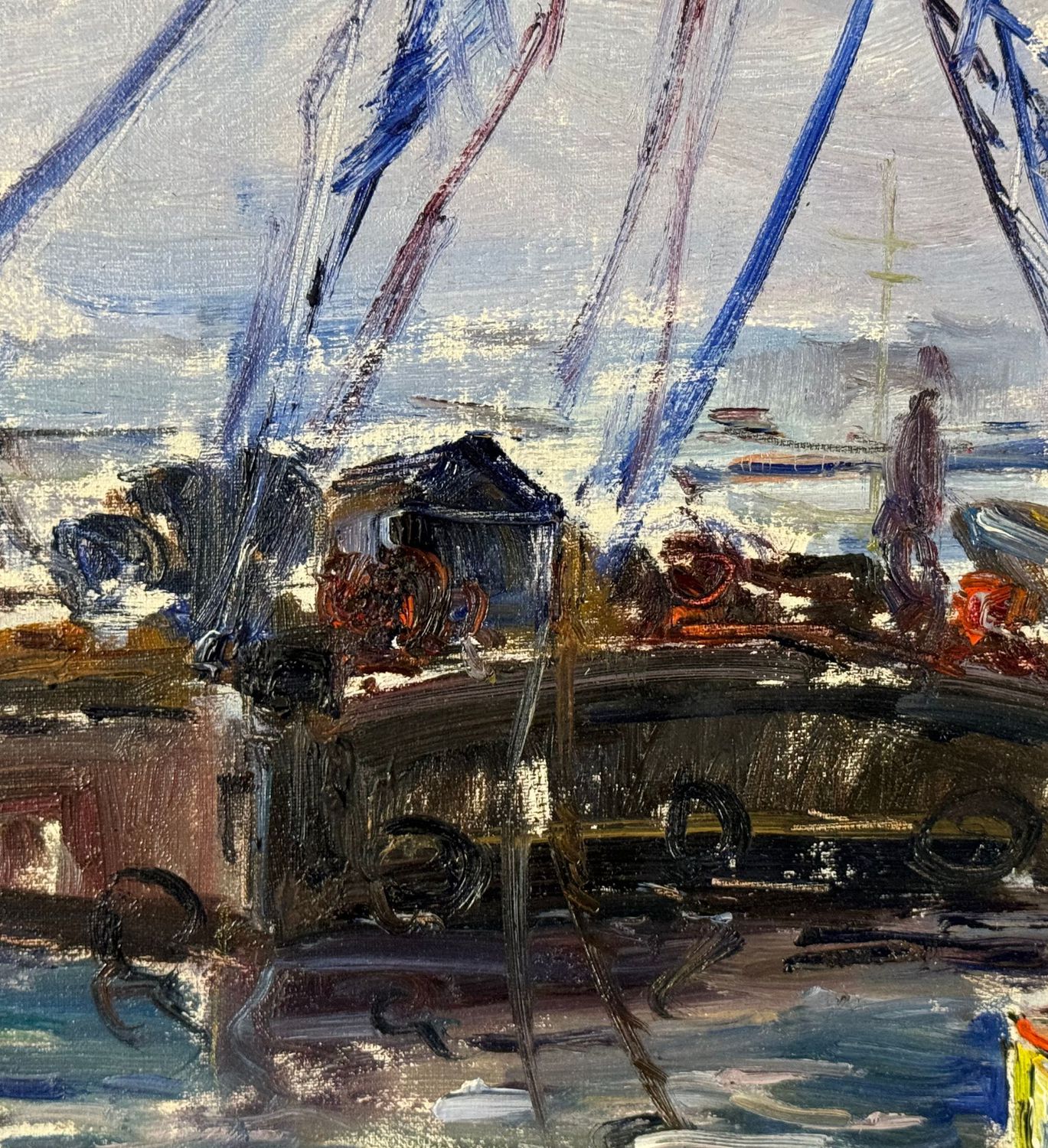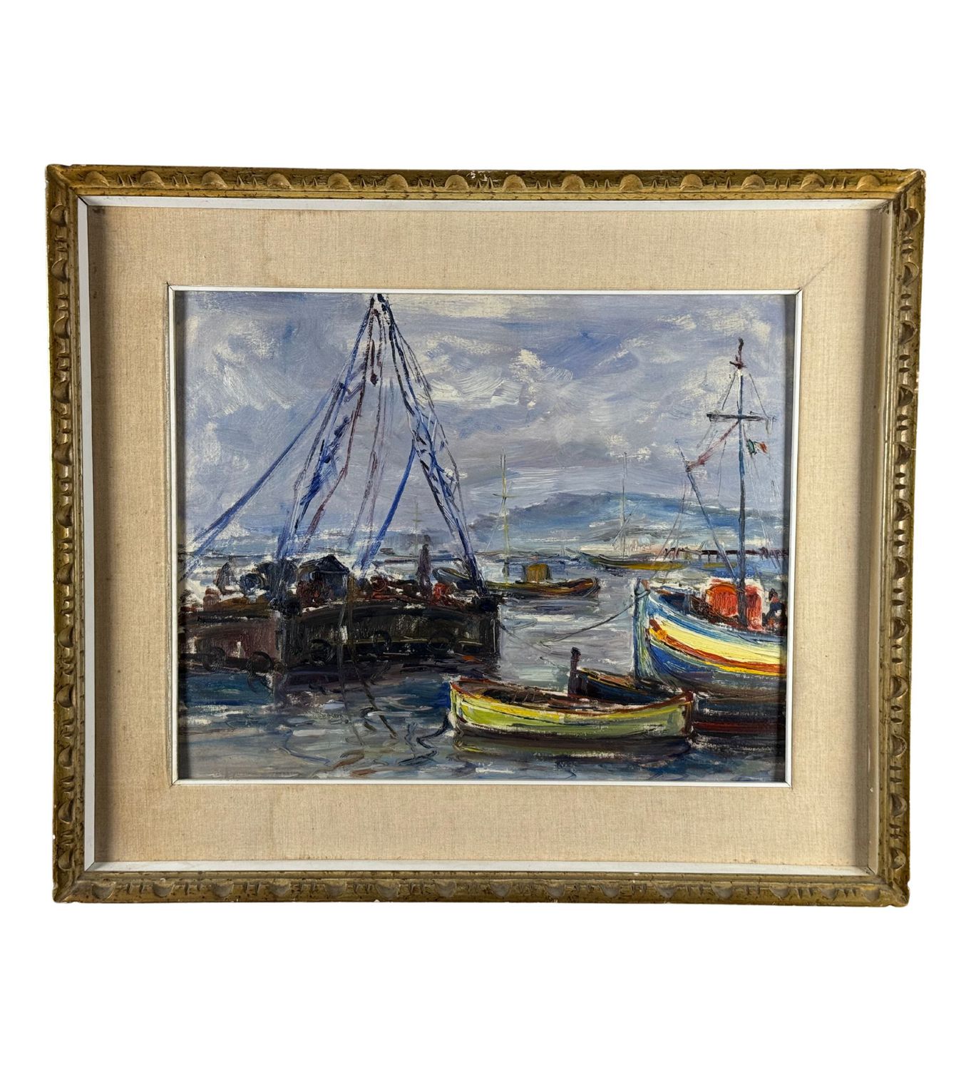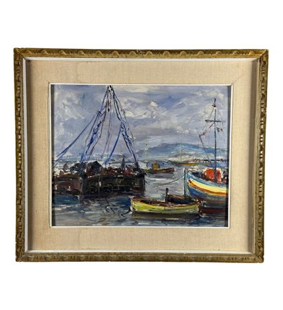 Dipinto olio su pannello, periodo XX secolo scuola Italiana, raffigurante Marina con barche. Dimensioni compreso cornice: 66x56 cm. Dimensioni interno cornice: 50x40 cm. Da artista anonimo. Opera in buone condizioni.