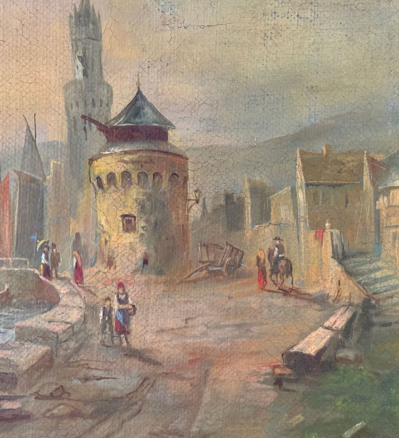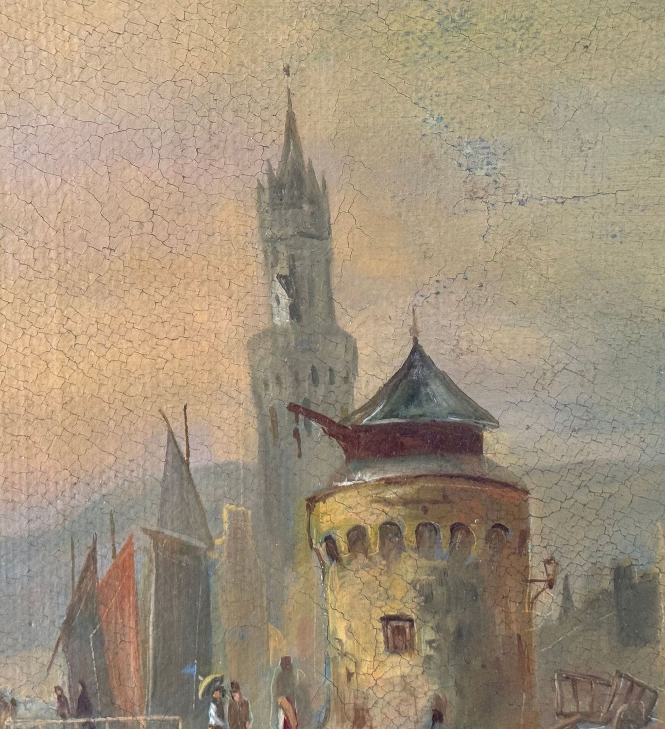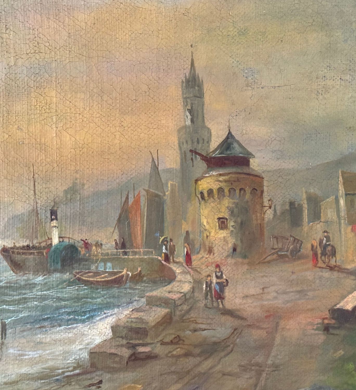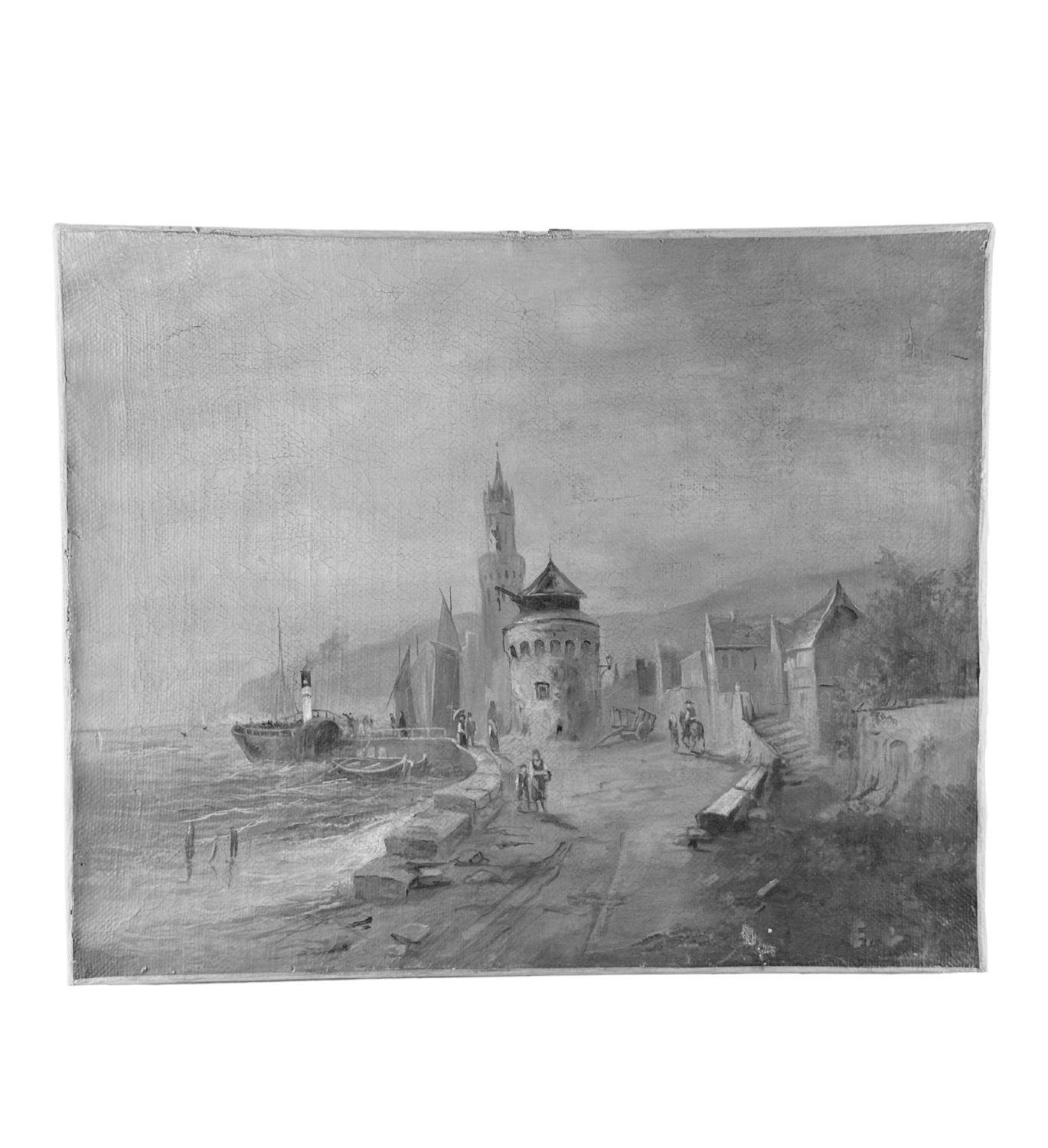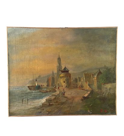 Dipinto olio su tela, periodo XIX/XX secolo scuola Italiana, raffigurante Scena portuale. Dimensioni: 73x59 cm. Da artista anonimo. Opera in buone condizioni.