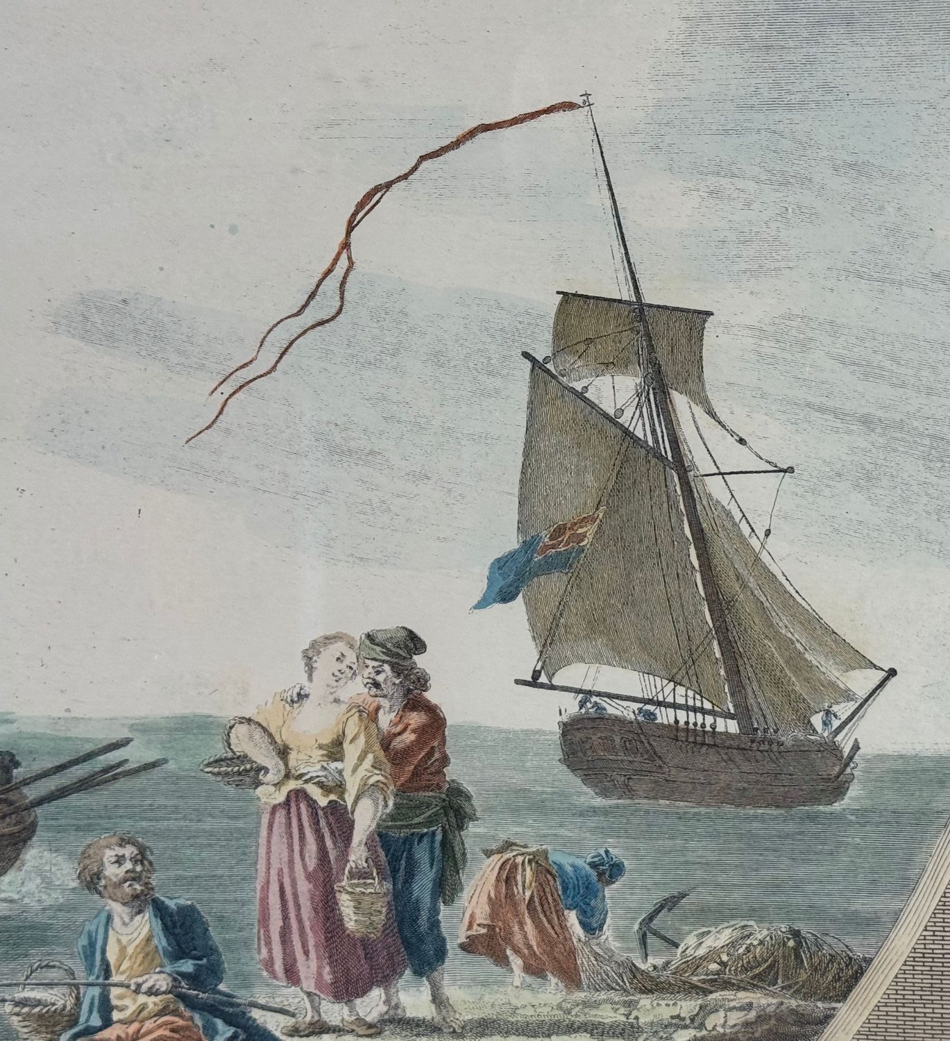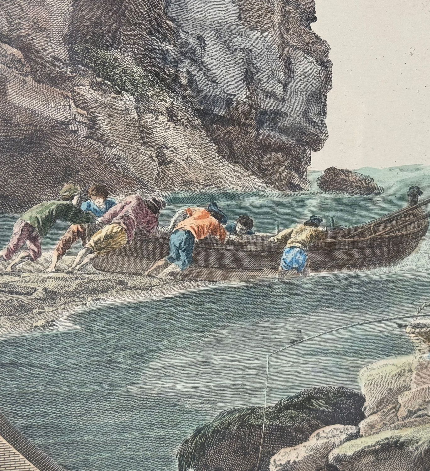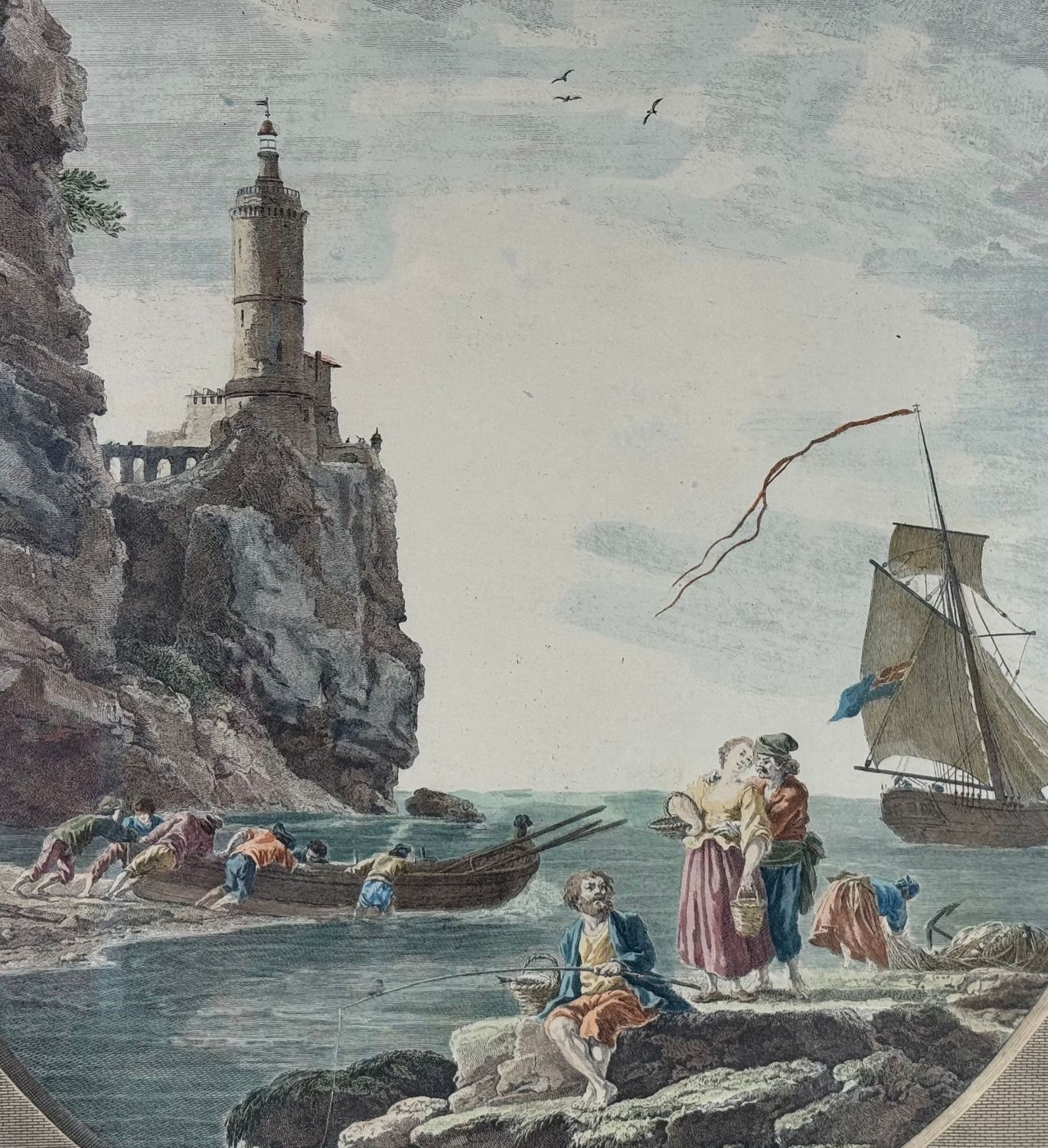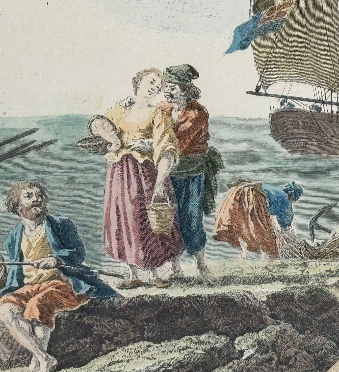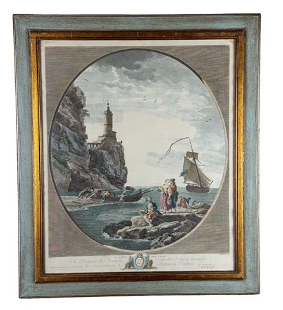 Incisione acquerellata su carta, periodo XIX secolo scuola Italiana, raffigurante Marina con personaggi e architettura. Dimensioni compreso cornice: 62x72 cm. Dimensioni interno cornice: 59x49 cm. Da artista anonimo. Opera in buone condizioni.