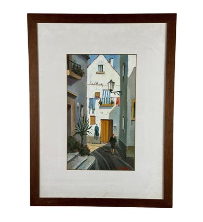 Dipinto olio su cartoncino, periodo XX secolo scuola Italiana, raffigurante Stradina. Dimensioni compreso cornice: 48x64 cm. Dimensioni interno cornice: 23x38 cm. Reca firma in basso a destra da Carusi. Opera in buone condizioni.