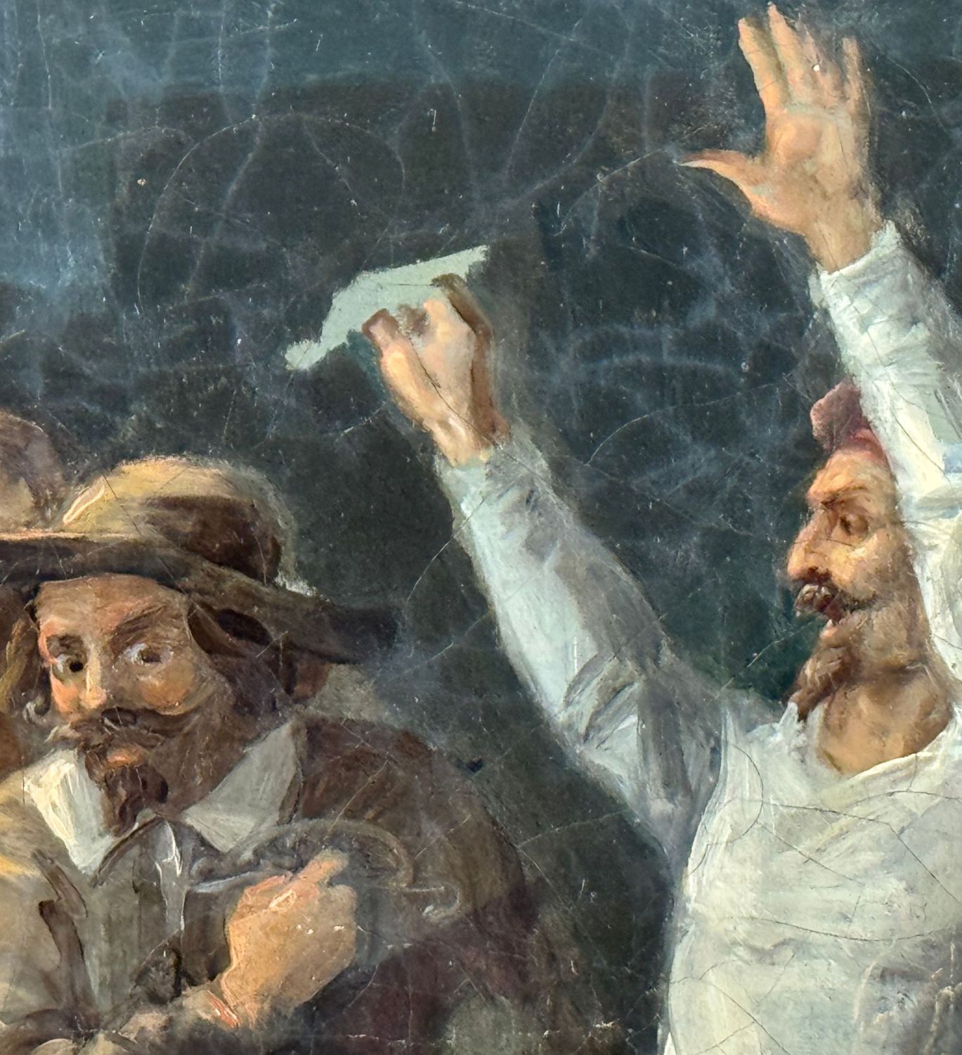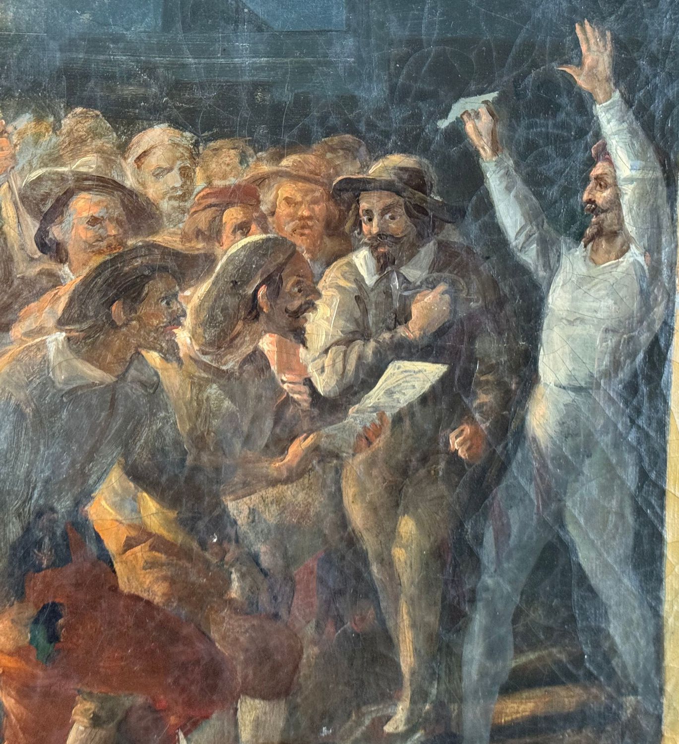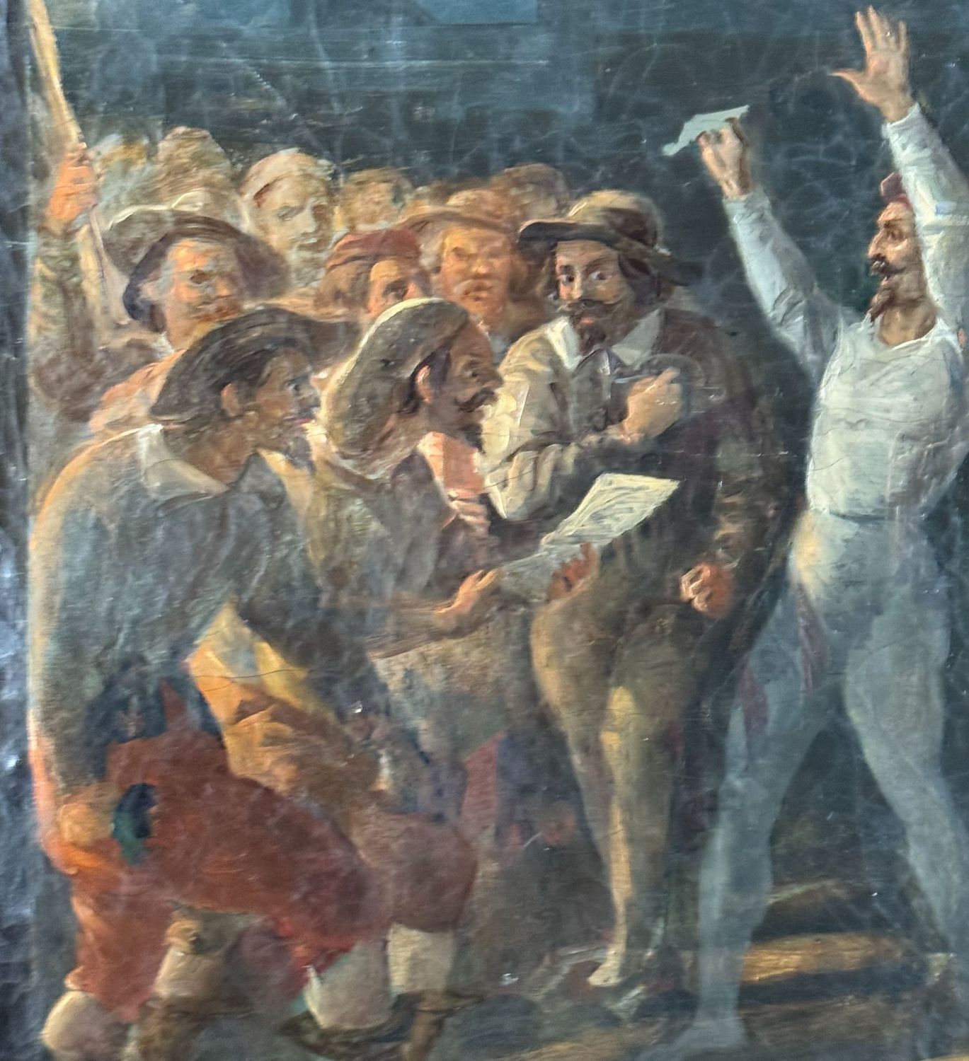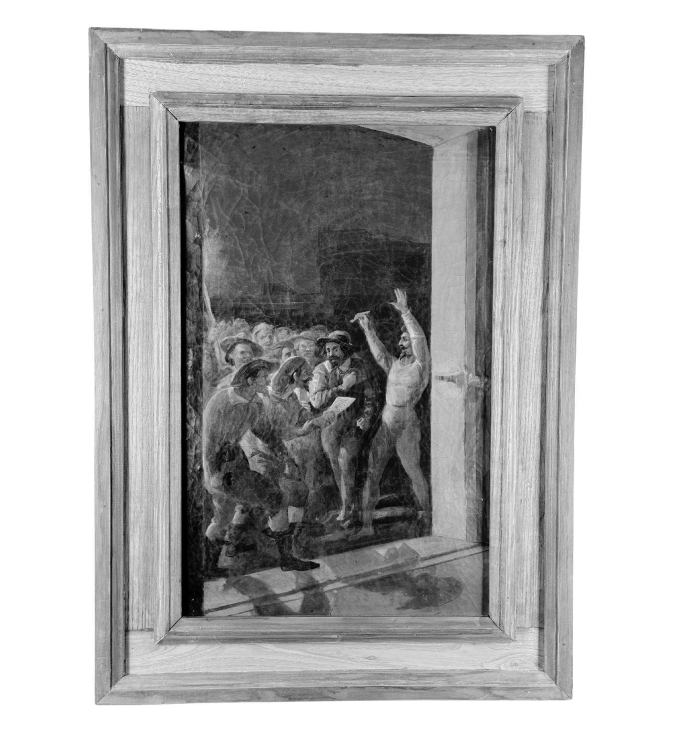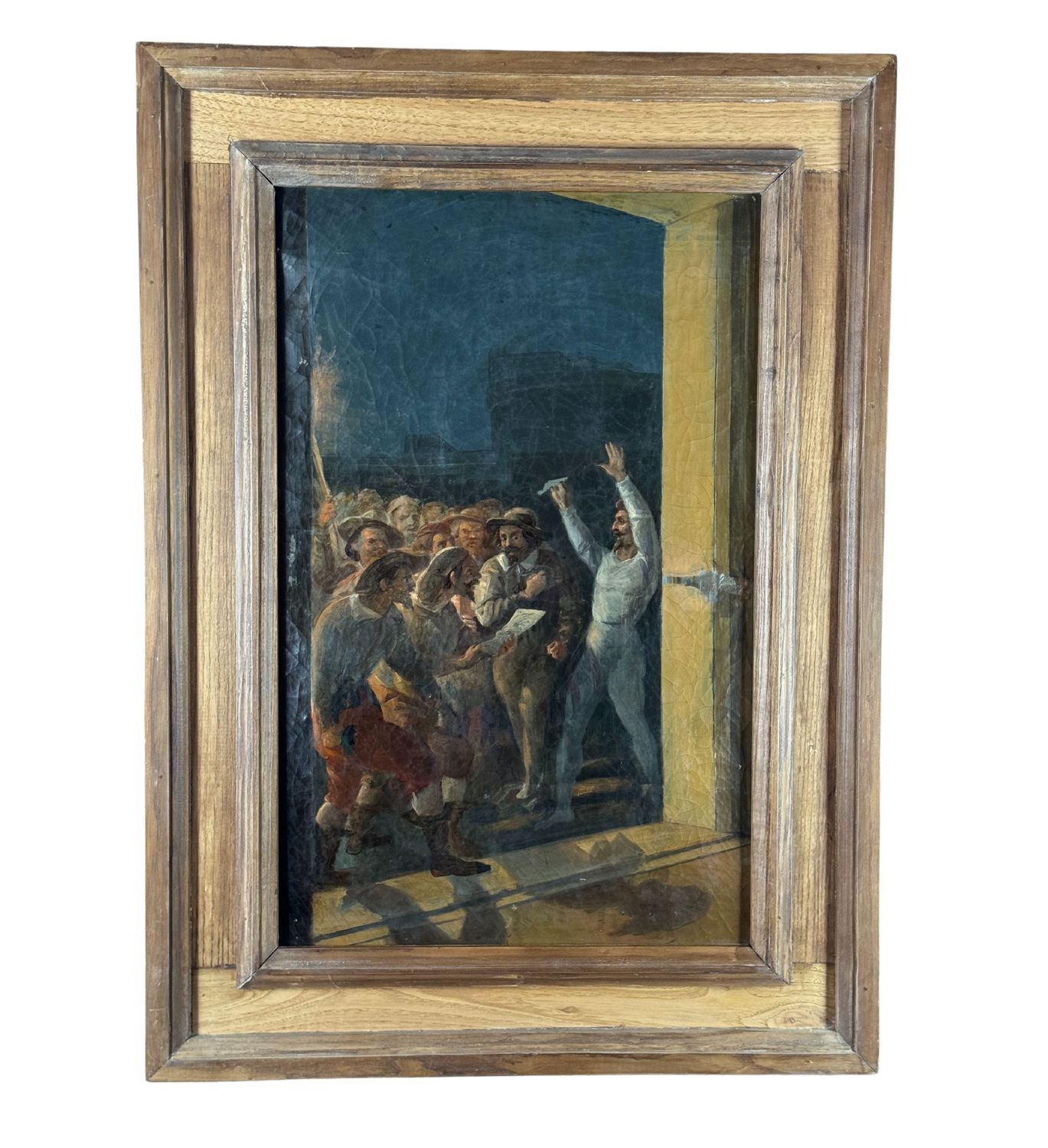 Dipinto olio su tela, periodo XVIII secolo scuola Italiana, raffigurante La rivolta napoletana. Dimensioni compreso cornice: 59x81 cm. Dimensioni interno cornice: 41x63 cm. Da artista anonimo (Seguace di Solimena). Opera in buone condizioni con lievi segni di vissuto come da foto allegate.