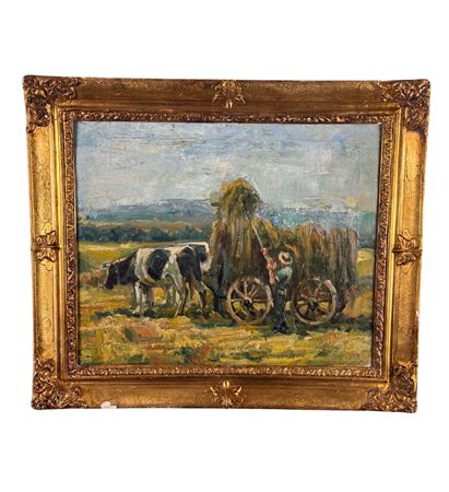 Dipinto olio su tela, periodo XIX/XX secolo scuola Italiana, raffigurante Contadina con carretto. Dimensioni compreso cornice: 69x58 cm. Dimensioni interno cornice: 55x45 cm. Da artista anonimo. Opera in buone condizioni.