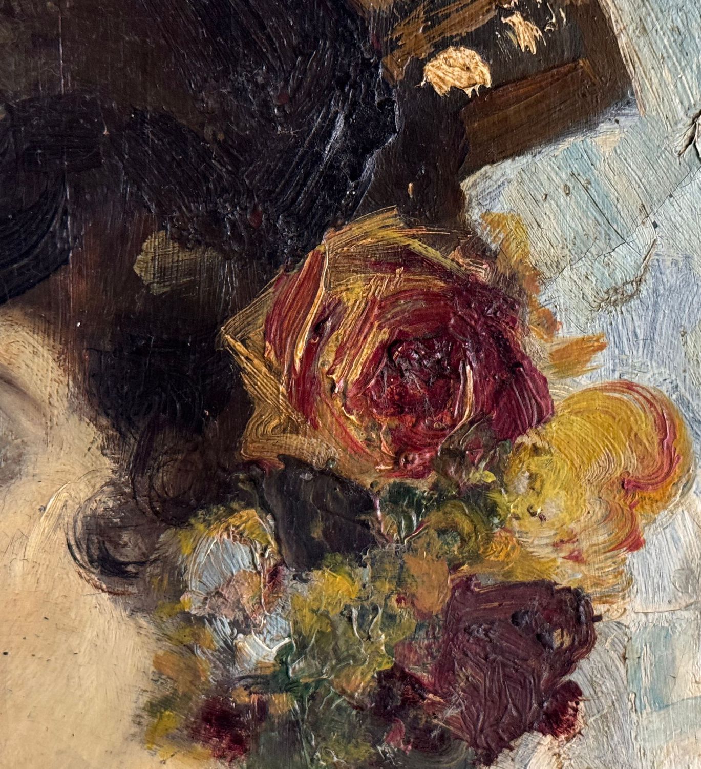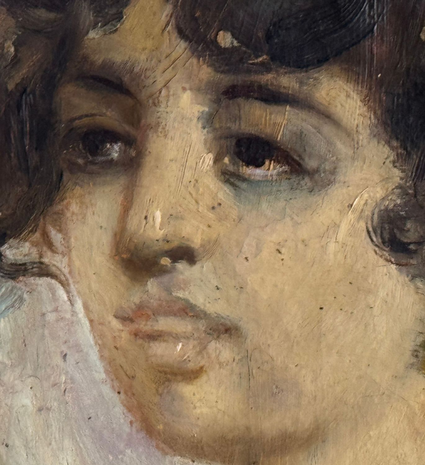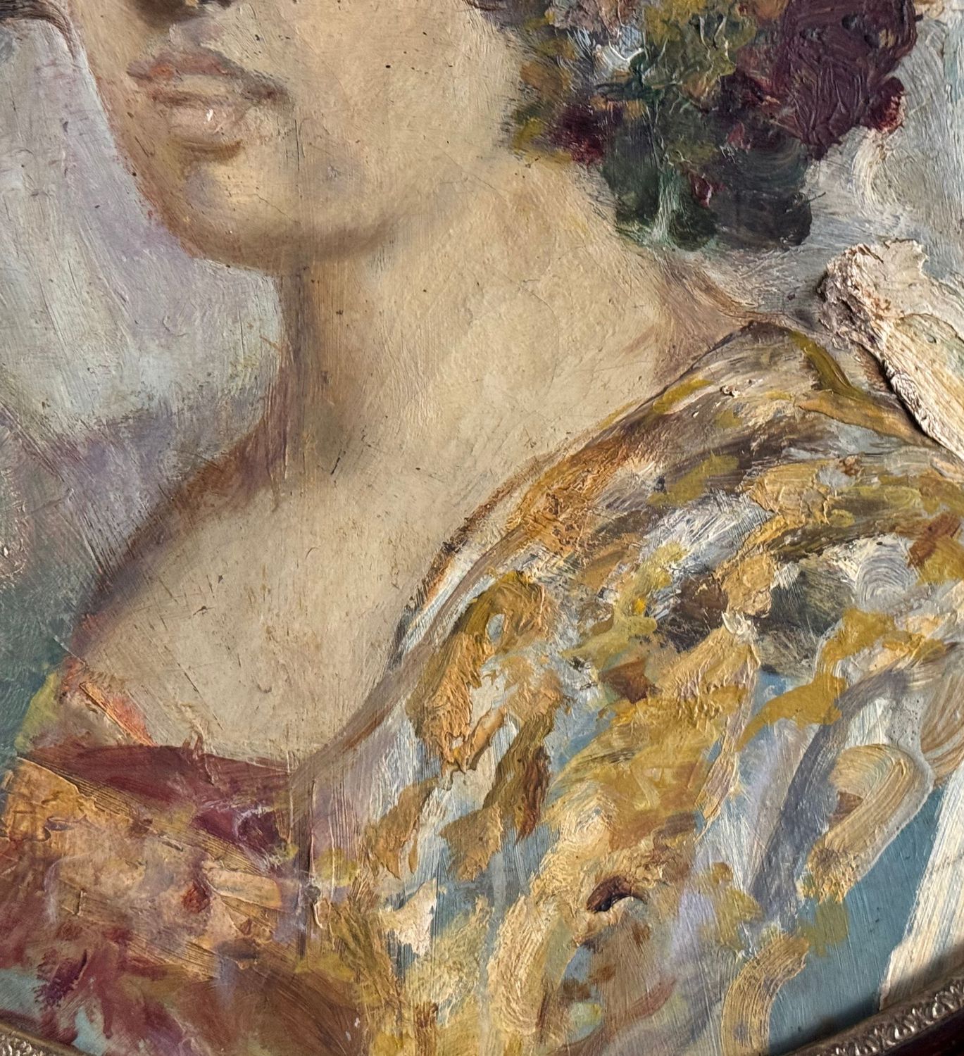 Dipinto olio su pannello di forma tonda, periodo XX secolo scuola Napoletana, raffigurante Ritratto di giovane donna. Dimensioni compreso cornice: 64x64 cm. Dimensioni interno cornice: 50x50 cm. Da artista anonimo. Opera in buone condizioni con lievi segni di vissuto come da foto allegate. Cornice difetti e mancanze.