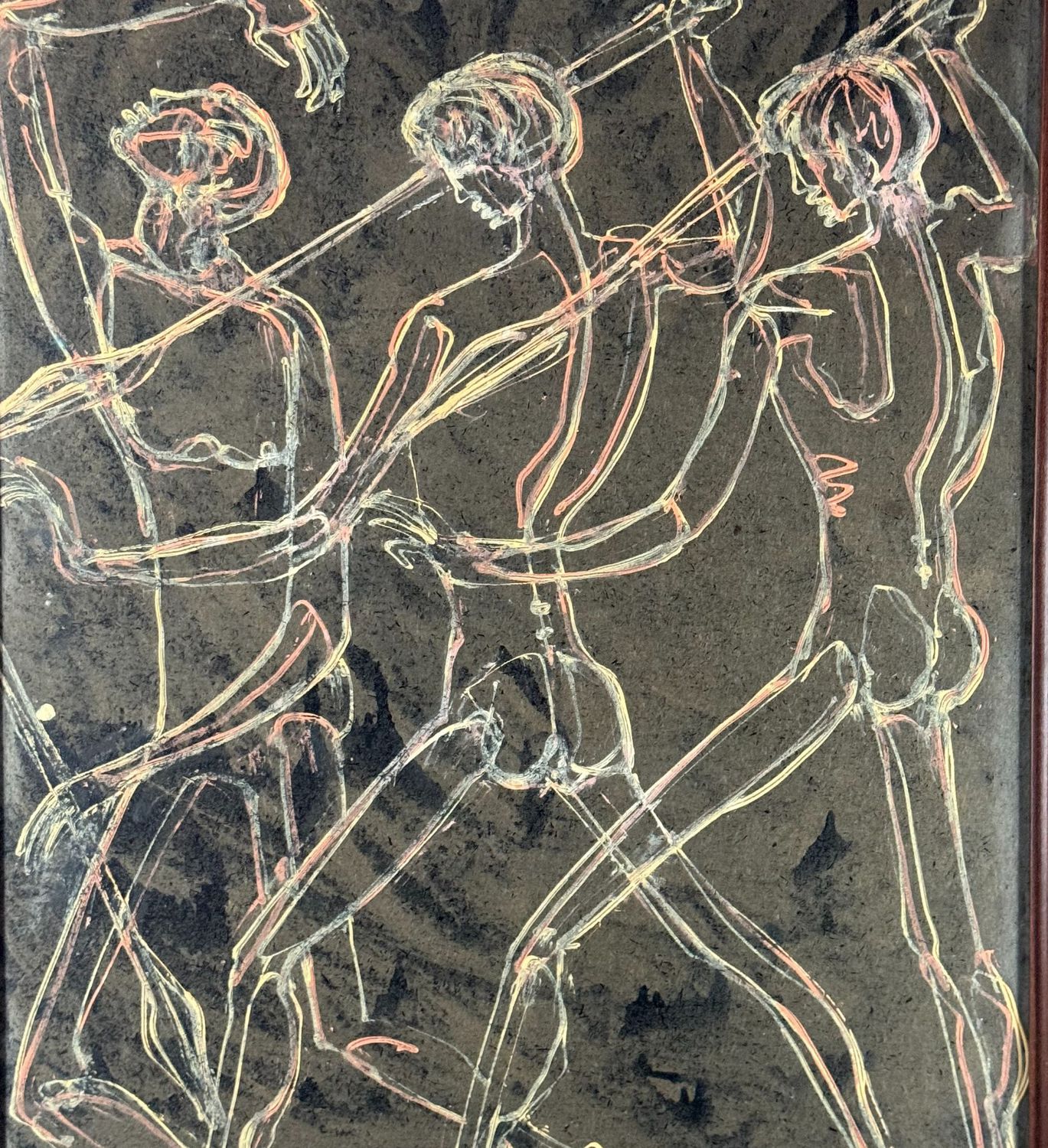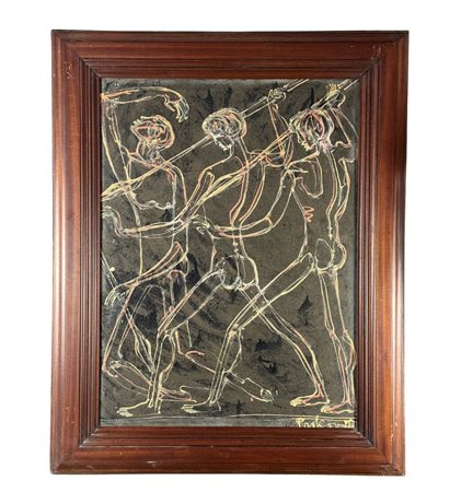 Dipinto olio su pannello, periodo XX secolo scuola Italiana, raffigurante Personaggi. Dimensioni compreso cornice: 80x101 cm. Dimensioni interno cornice: 60x80 cm. Reca firma in basso a destra da Péter Prokop. Opera in buone condizioni.