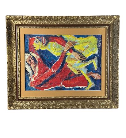 Dipinto olio su pannello, periodo XX secolo scuola Italiana, raffigurante Figure. Dimensioni compreso cornice: 72x85 cm. Dimensioni interno cornice: 45x61 cm. Reca firma in basso a destra da Péter Prokop. Opera in buone condizioni.