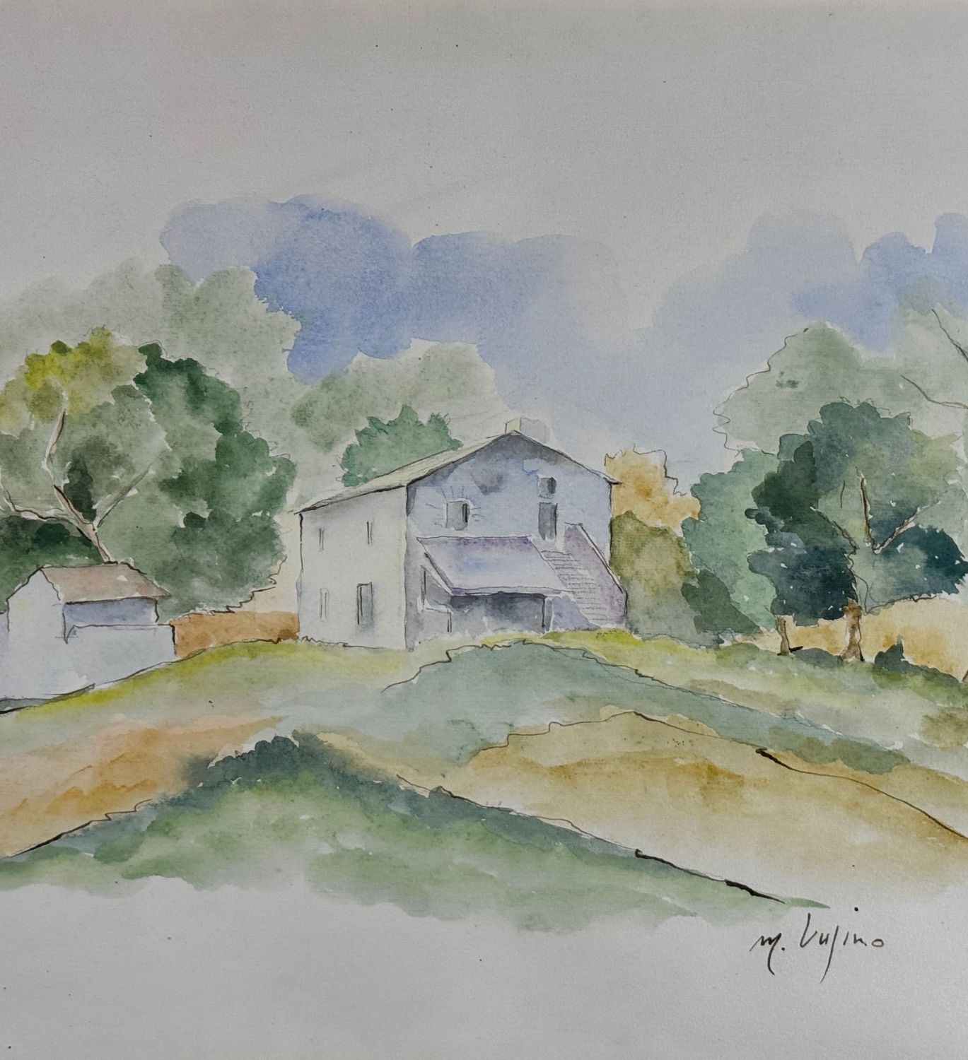Acquerello su carta, periodo XX secolo scuola Italiana, raffigurante Paesaggio di campagna. Dimensioni compreso cornice: 74x59 cm. Dimensioni interno cornice: 48x33 cm. Reca firma in basso a destra da M.Lupino (artista non identificato). Opera in buone condizioni.