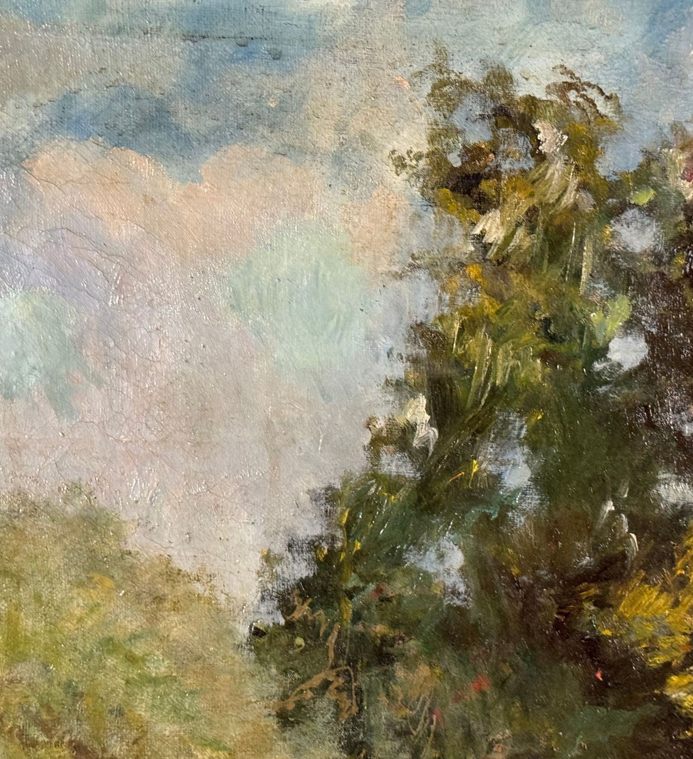 Dipinto olio su tela, periodo XIX secolo scuola Italiana, raffigurante Paesaggio. Dimensioni: 78x65 cm. Da artista anonimo. Opera in buone condizioni. Da segnalare caduta di calore, piccoli punti di restauro e taglio di circa 2 cm nella parte bassa a sinistra della tela.