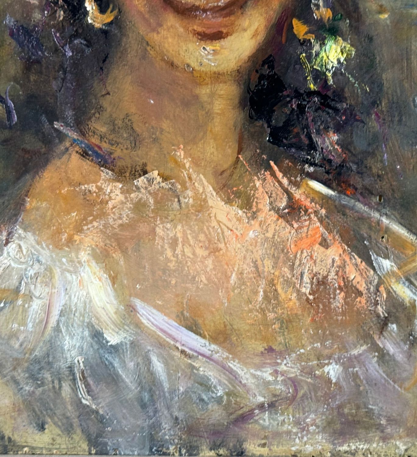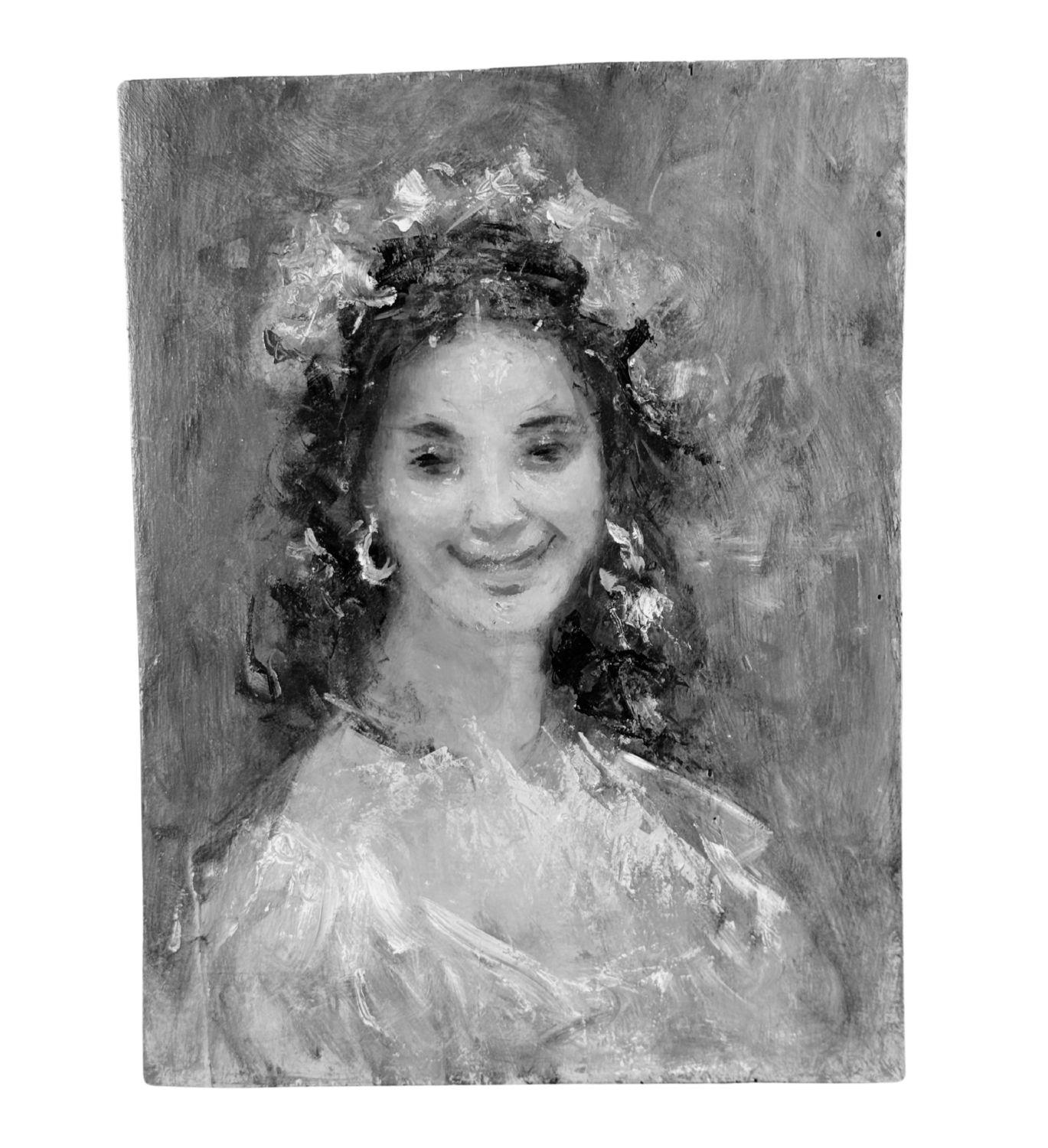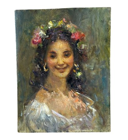 Dipinto olio su tavola, periodo XX secolo scuola Italiana, raffigurante Ritratto di donna. Dimensioni: 29,5x22,5 cm. Da artista anonimo. Opera in buone condizioni.