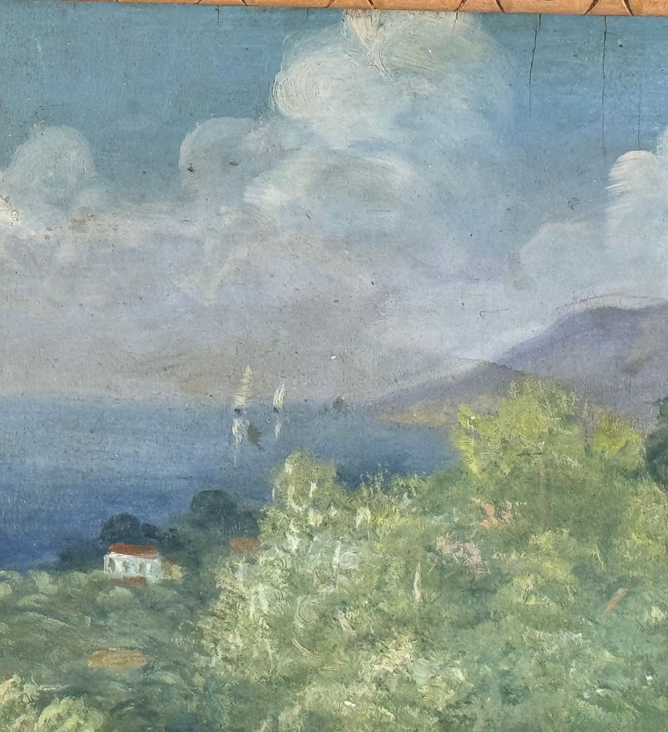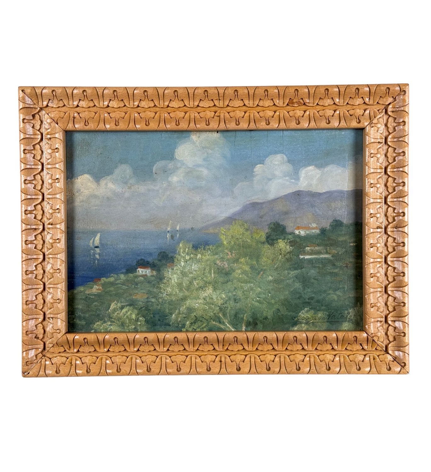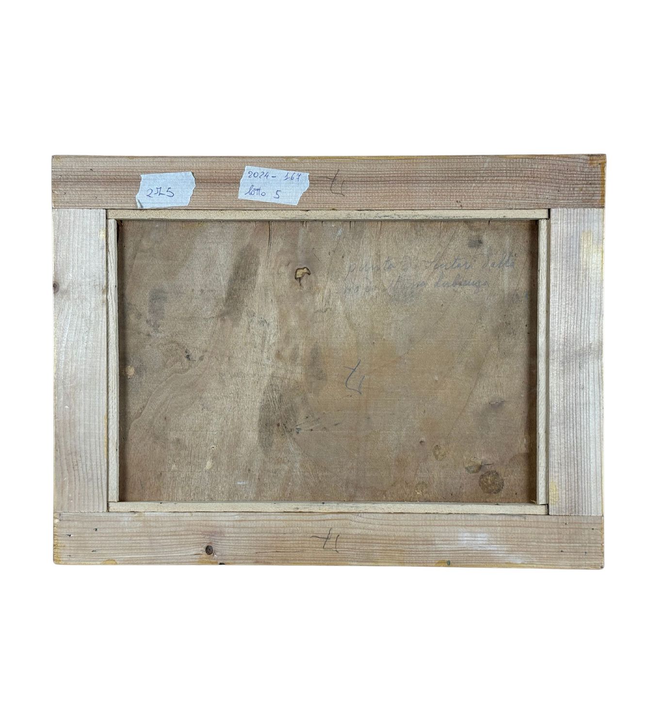 Dipinto olio su tavola, periodo XX secolo scuola Italiana, raffigurante Massa Lubrense. Dimensioni compreso cornice: 31,5x42 cm. Diemnsioni interno cornice: 33x23 cm. Reca firma in basso a destra da Natale Cesareo 1887 - 1949. Opera in buone condizioni con lievi segni di vissuto come da foto allegate.