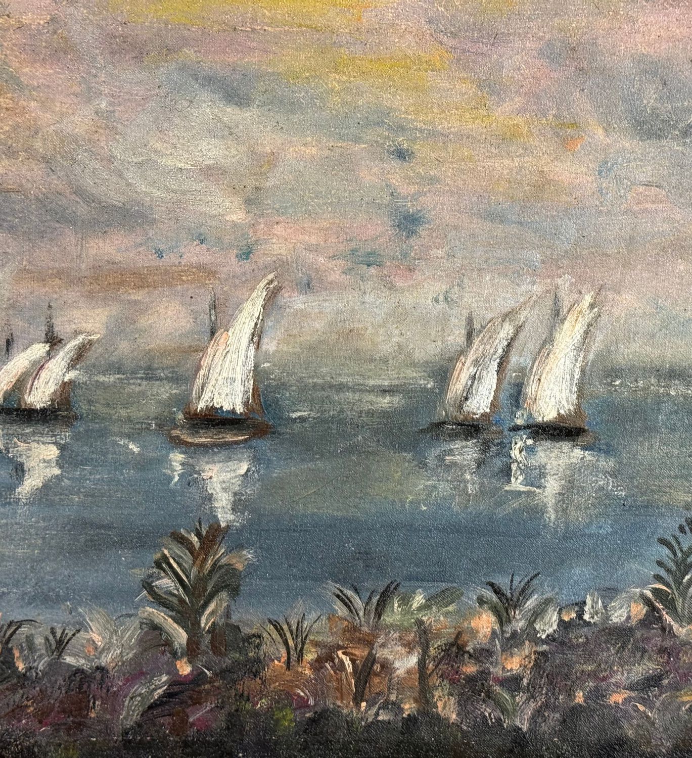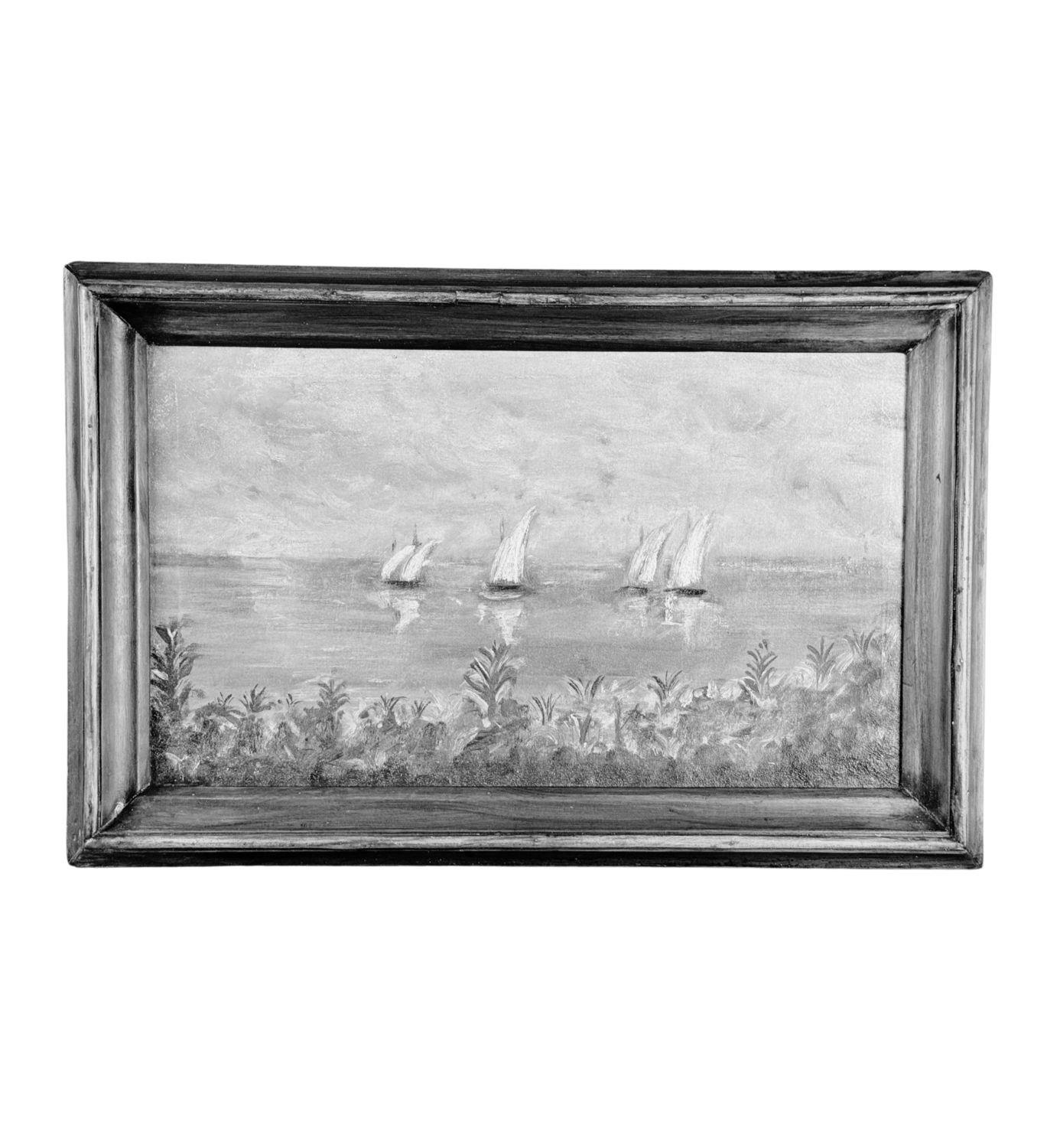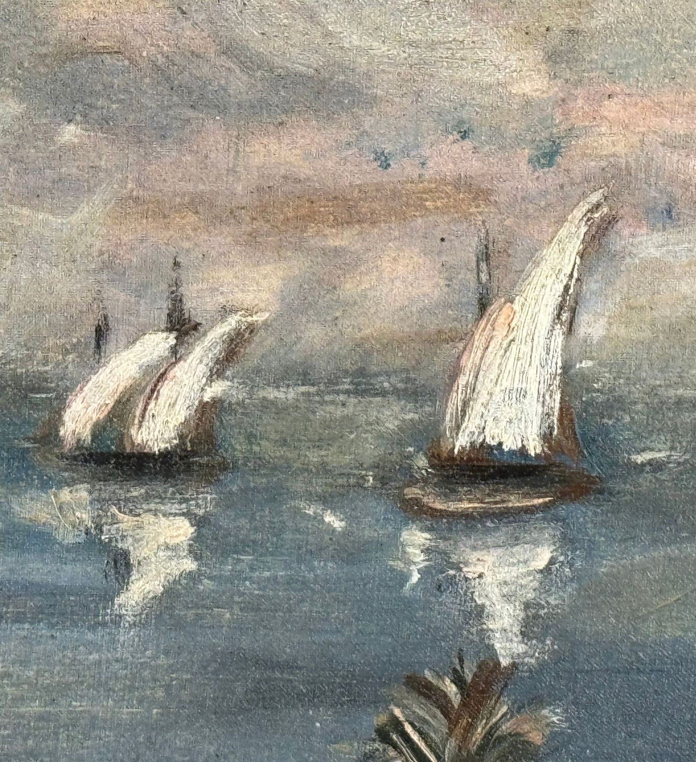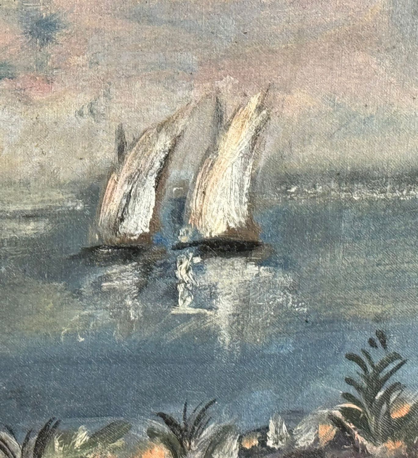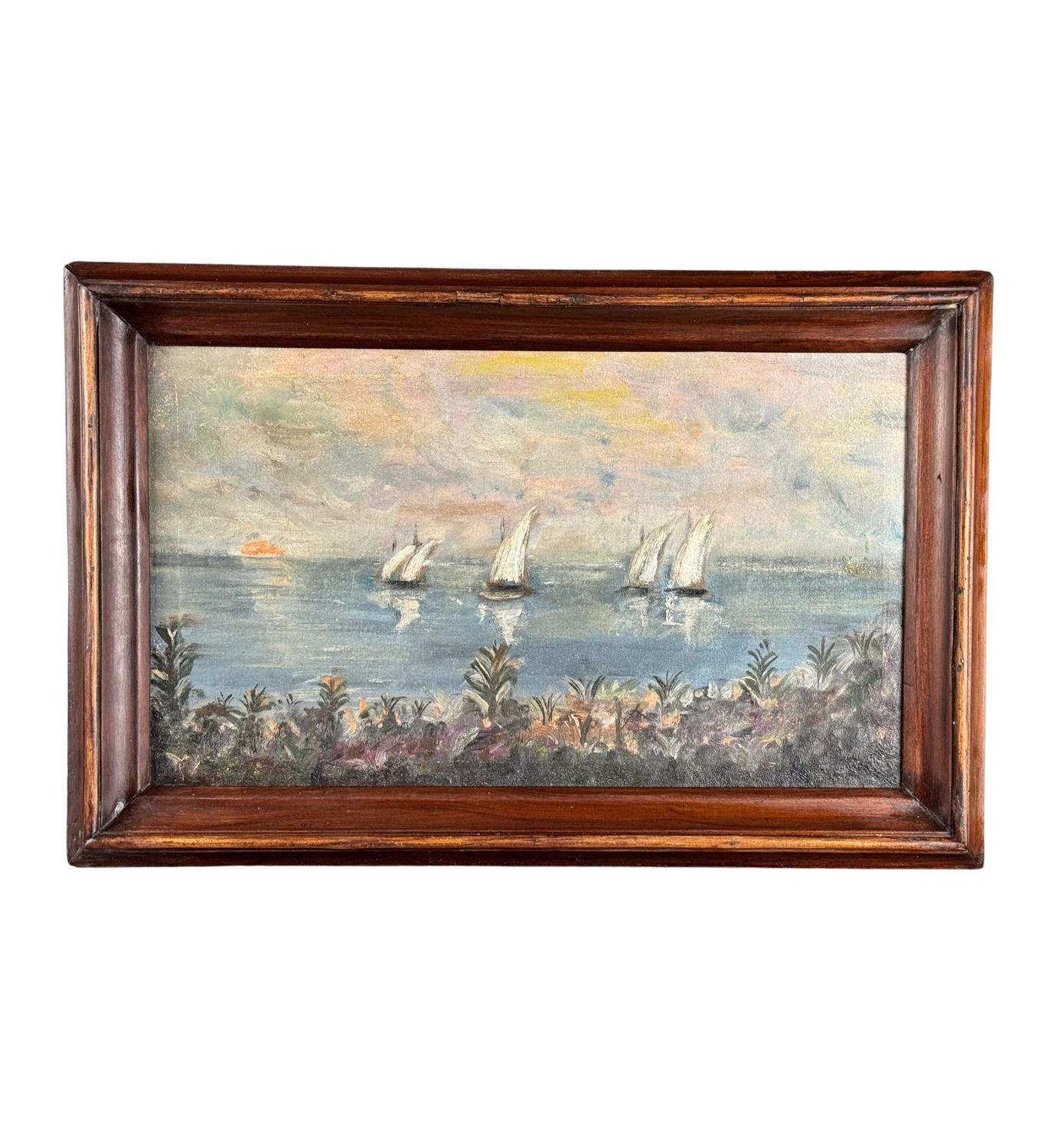 Dipinto olio su tela, periodo XIX/XX secolo scuola Italiana, raffigurante Paesaggio marine con barche. Dimensioni compreso cornice: 57x37 cm. Dimensioni interno cornice: 50x30 cm. Da artista anonimo. Opera in buone condizioni.