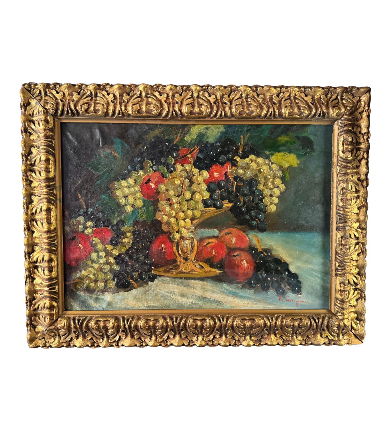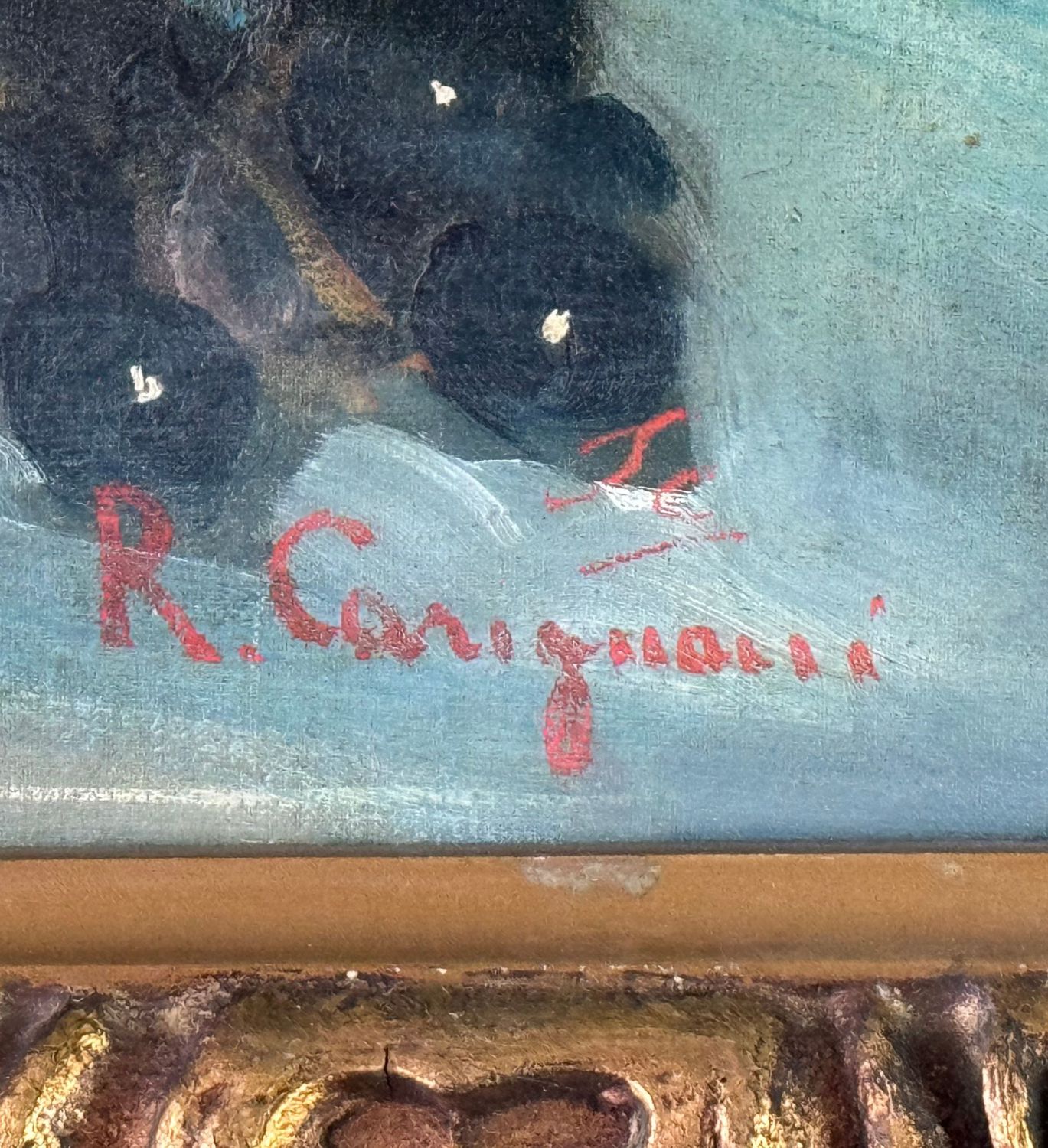 Dipinto olio su tela, periodo XX secolo scuola Italiana, raffigurante Natura morta. Dimensioni compreso cornice: 83x63 cm. Dimensioni interno cornice: 67x47 cm. Reca firma in basso a destra da Roberto Carignani. Opera in buone condizioni con lievi segni di vissuto come da foto allegate.