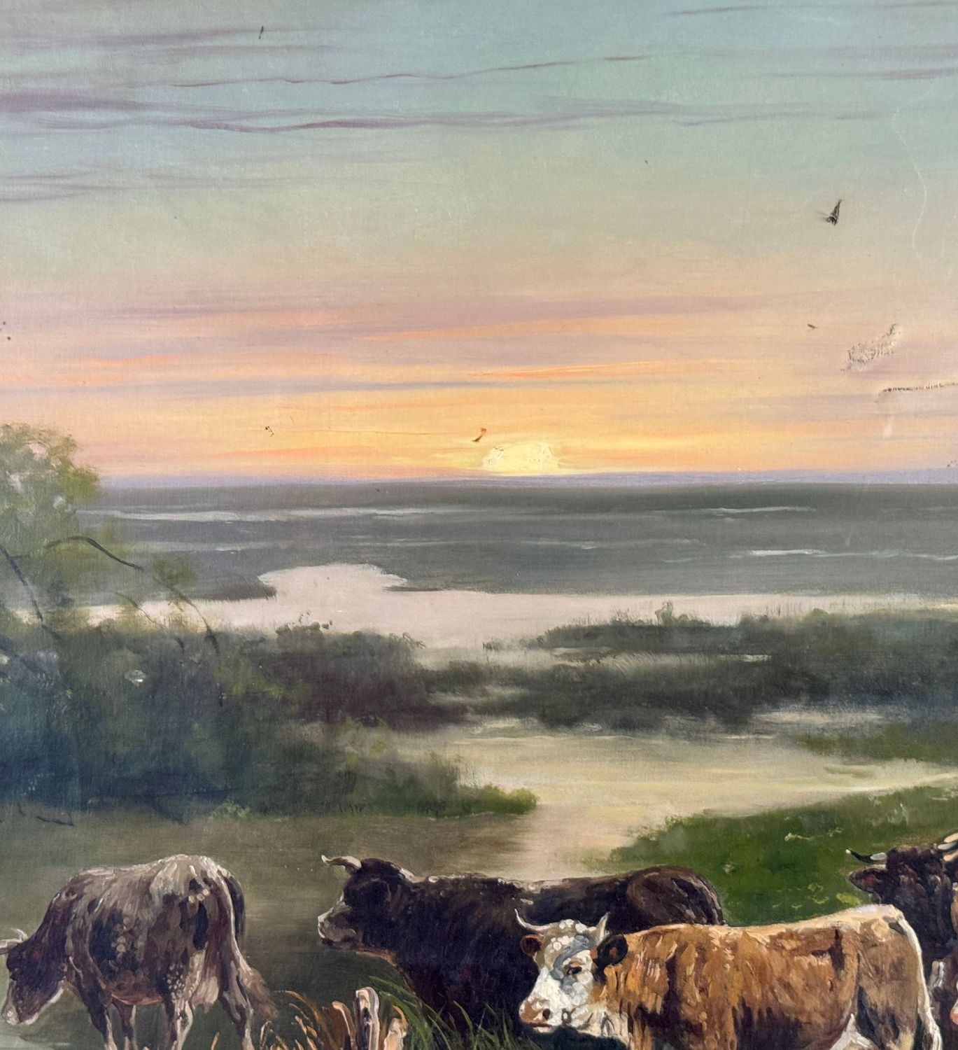 Dipinto olio su tela, periodo XIX/XX secolo scuola Italiana, raffigurante Paesaggio con gregge. Dimensioni compreso cornice: 83x70 cm. Dimensioni interno cornice: 64x51 cm. Da artista anonimo. Opera in discrete condizioni con lievi segni di vissutoi come da foto allegate.