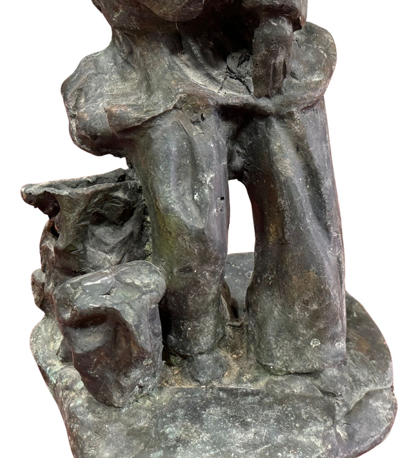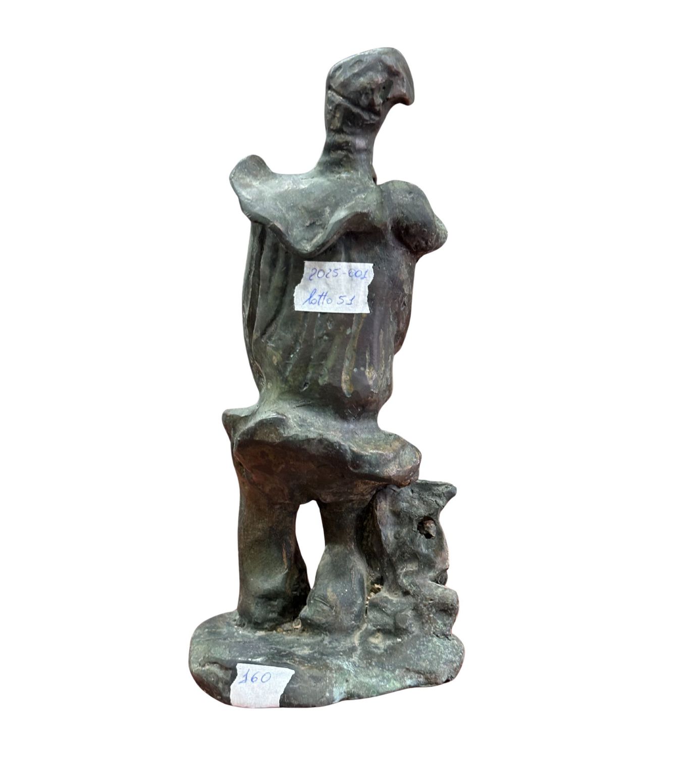 Scultura in bronzo a cera persa, periodo XX secolo, raffigurante Pierrot. Dimensioni: h35x15x15 cm. Scultura in buone condizioni.