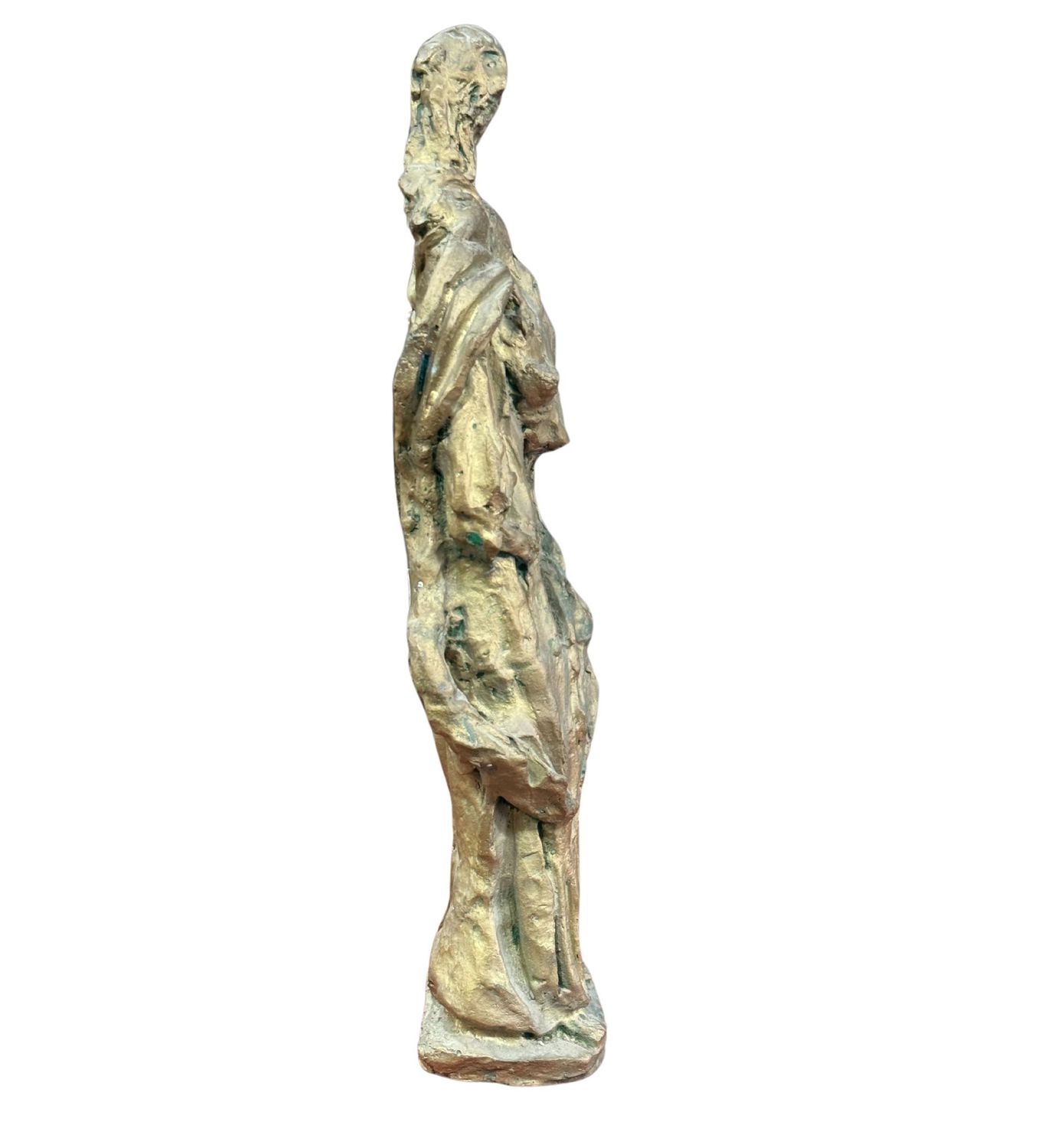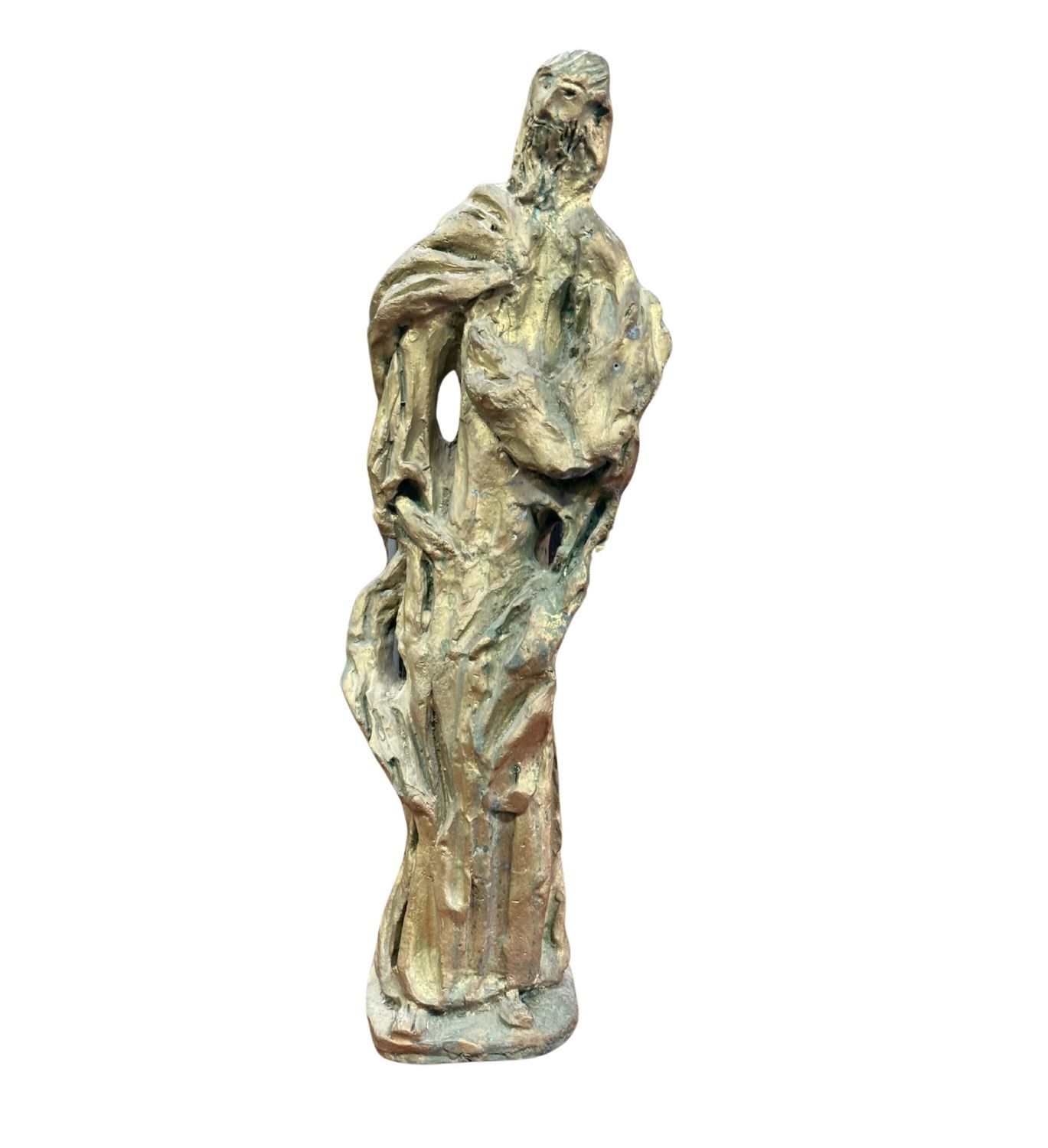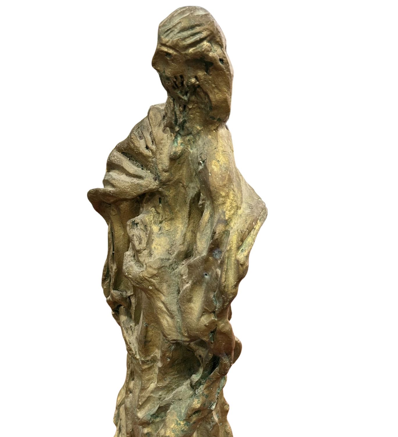 Scultura in bronzo a cera persa, periodo XX secolo, raffigurante Personaggio. Dimensioni: h60x20x10 cm. Scultura in buone condizioni. Reca firma.