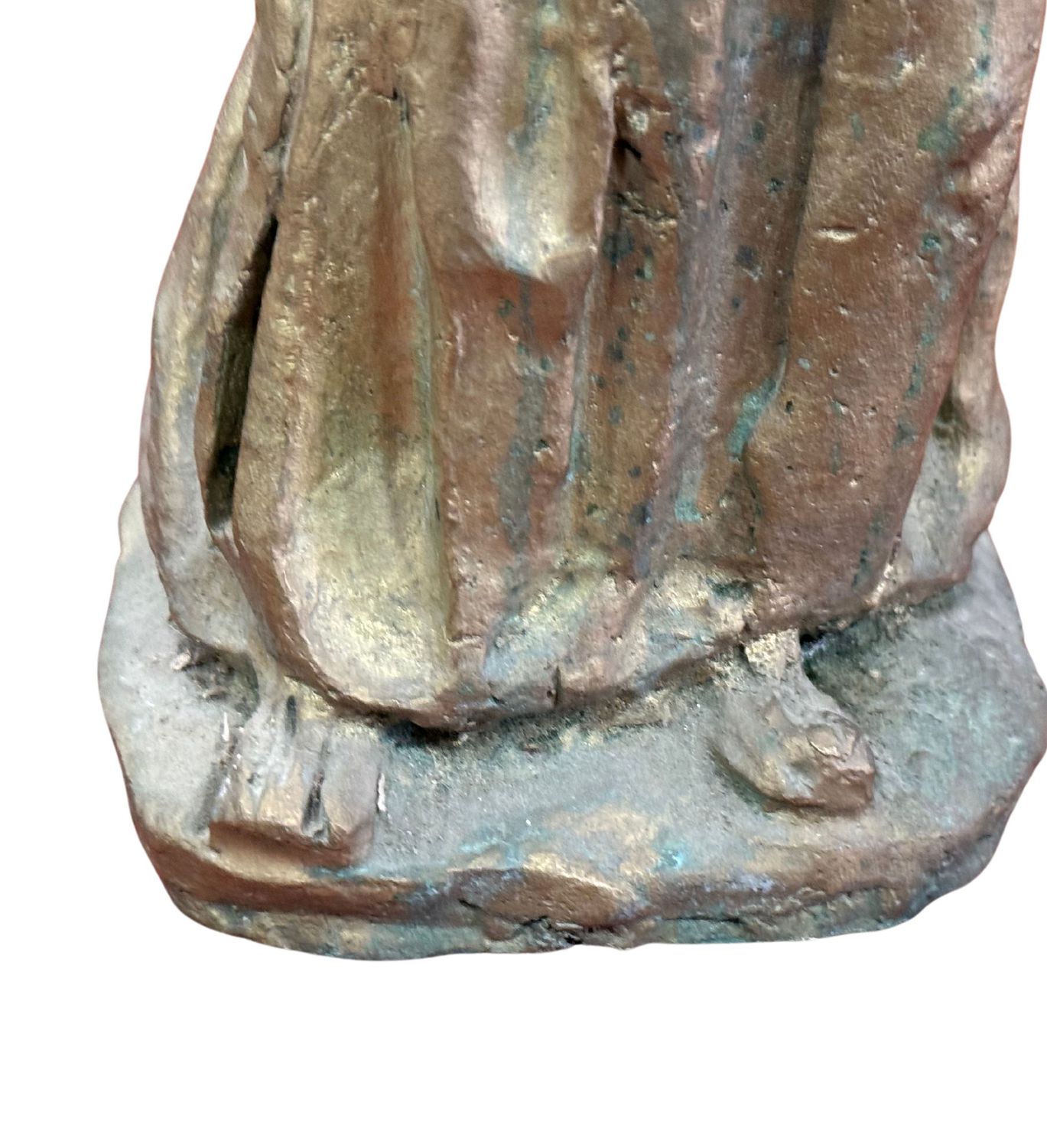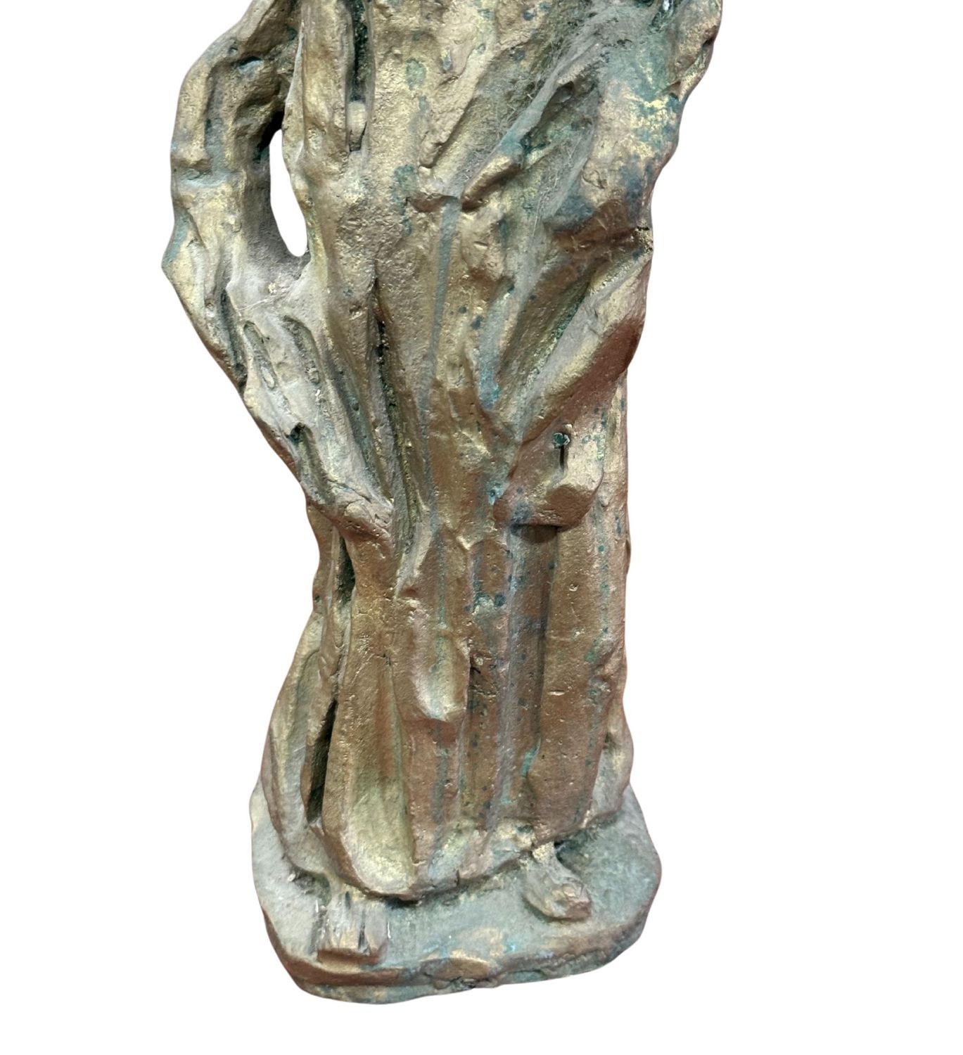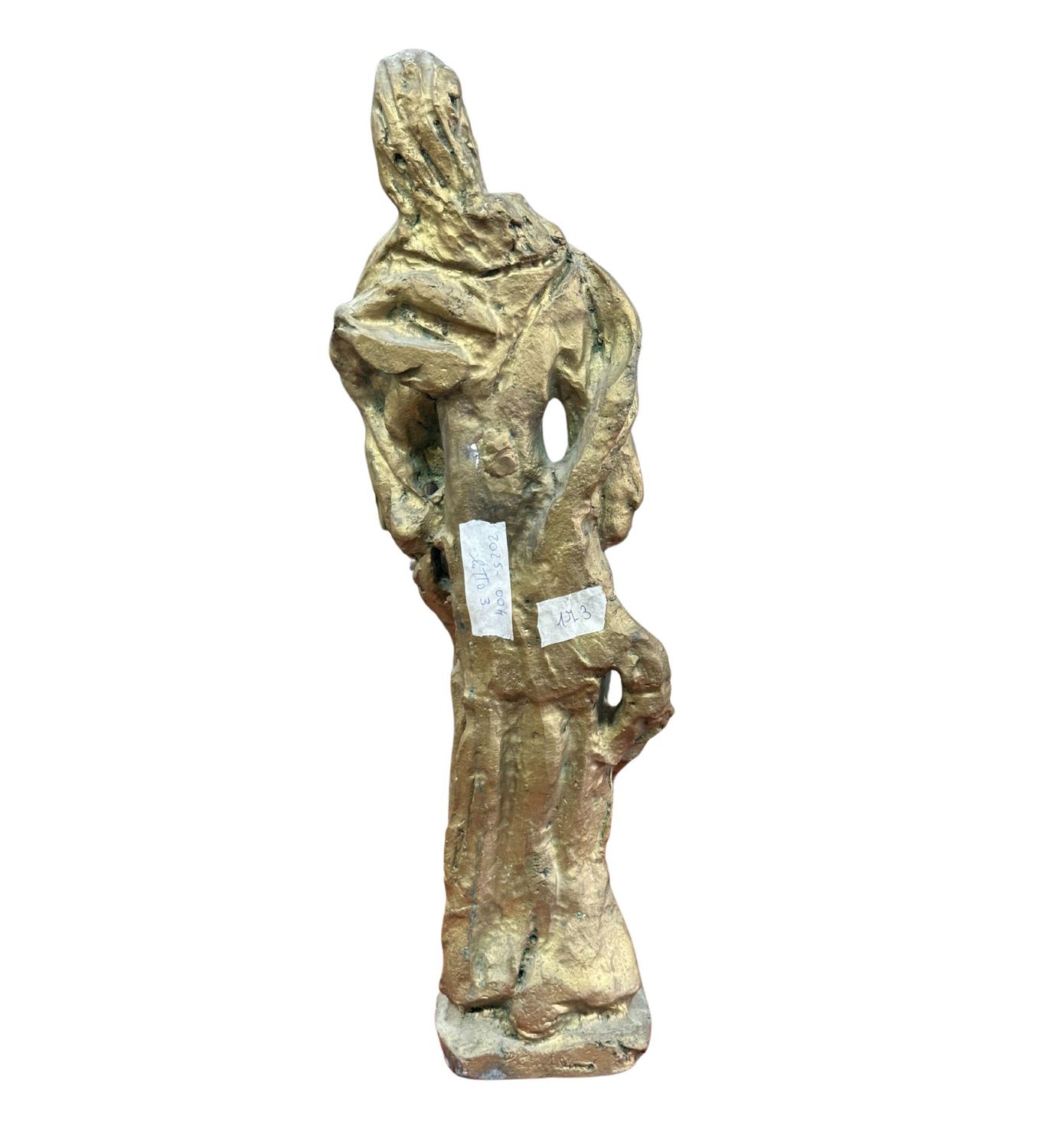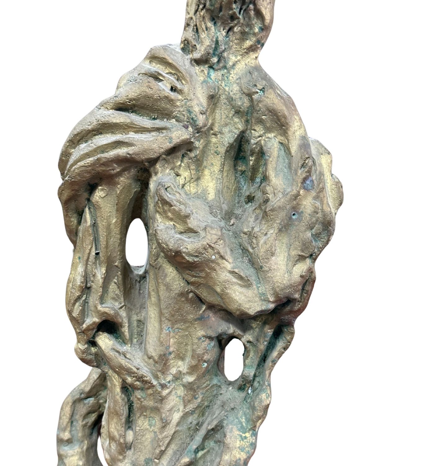 Scultura in bronzo a cera persa, periodo XX secolo, raffigurante Personaggio. Dimensioni: h60x20x10 cm. Scultura in buone condizioni. Reca firma.