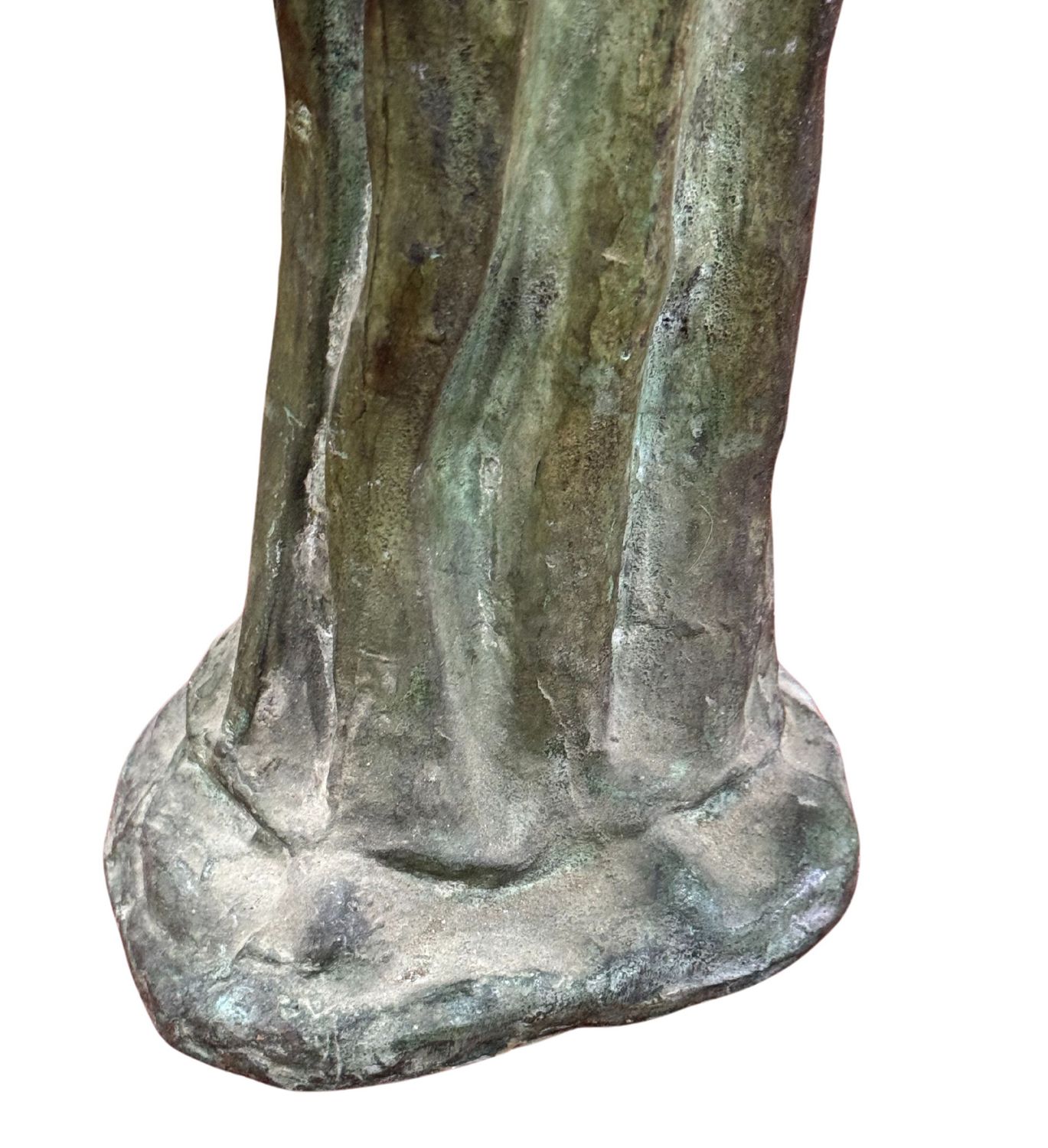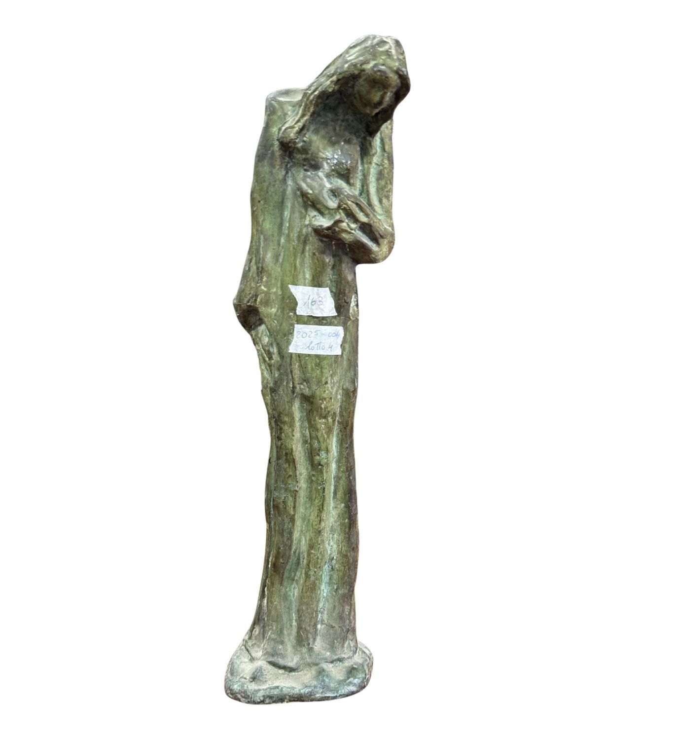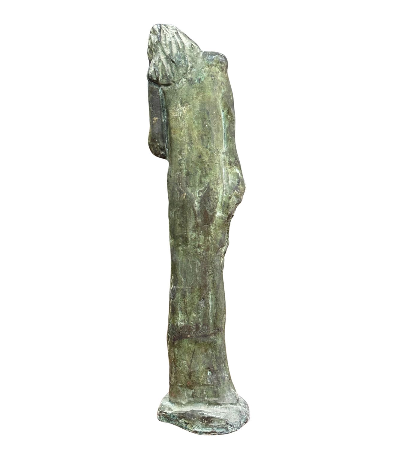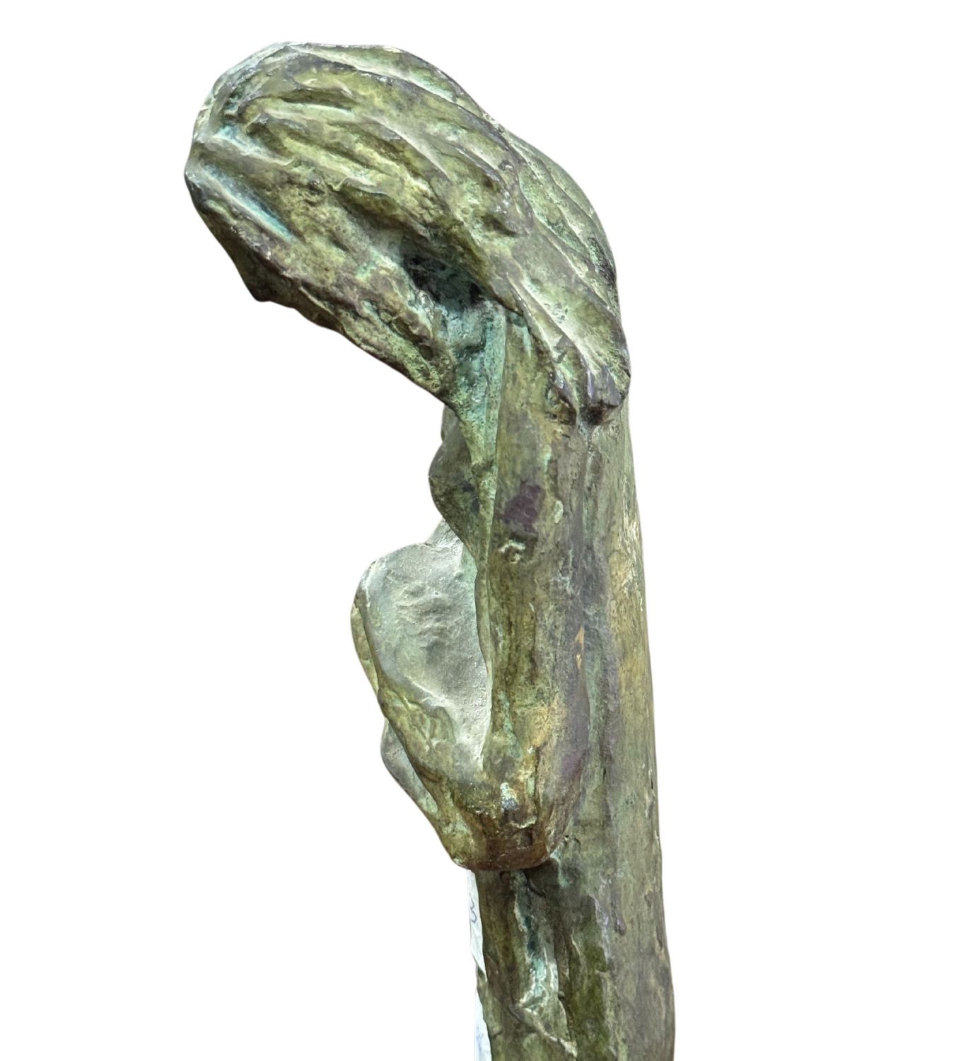 Scultura in bronzo a cera persa, periodo XX secolo, raffigurante Personaggio femminile. Dimensioni: h59x14x12 cm. Scultura in buone condizioni. Reca firma.