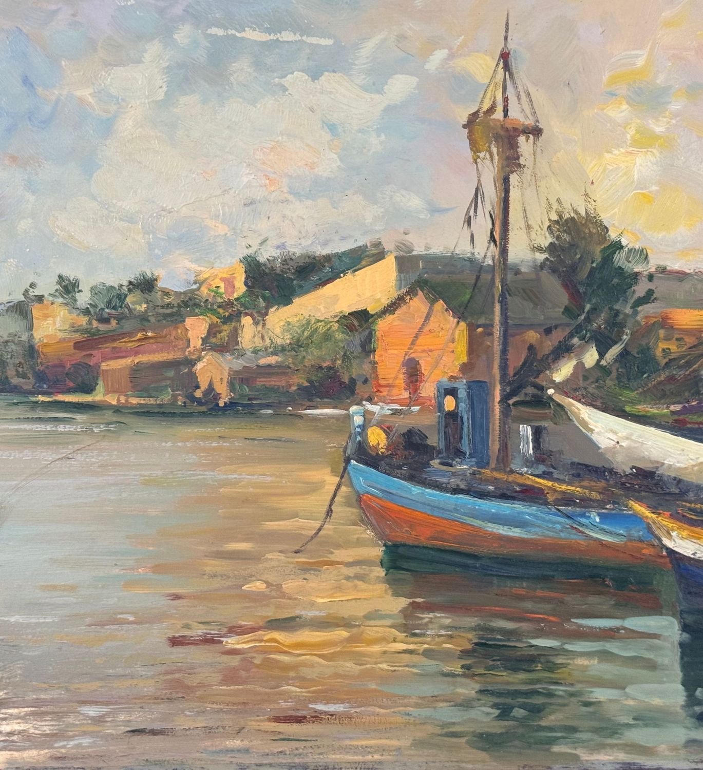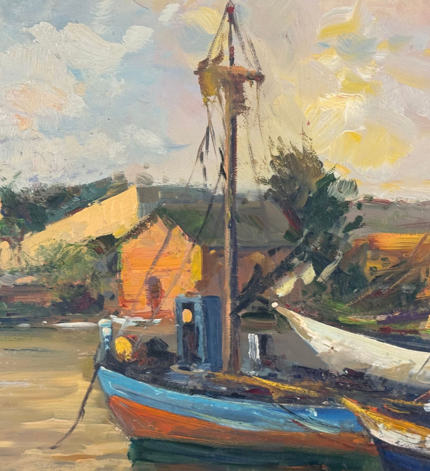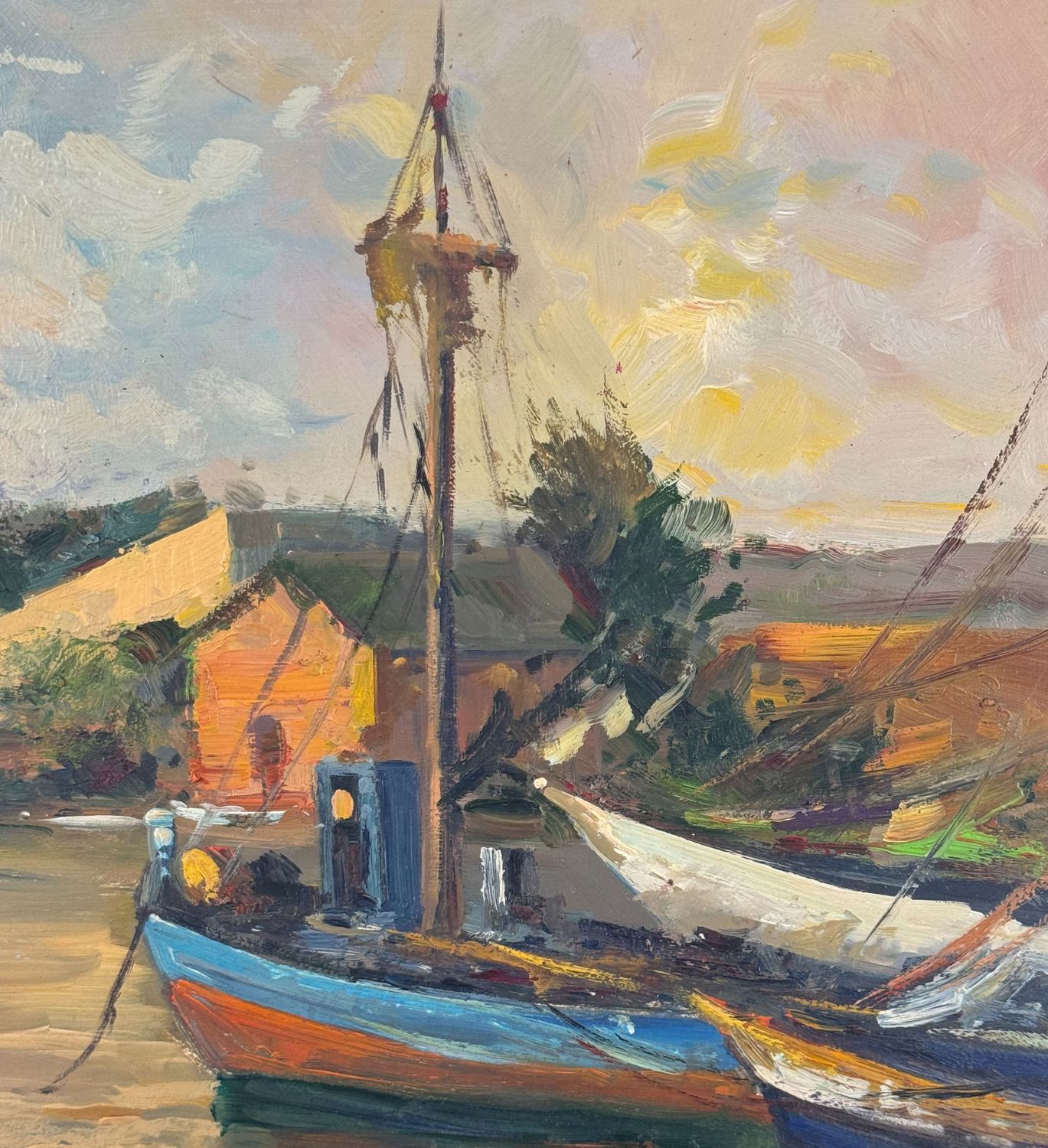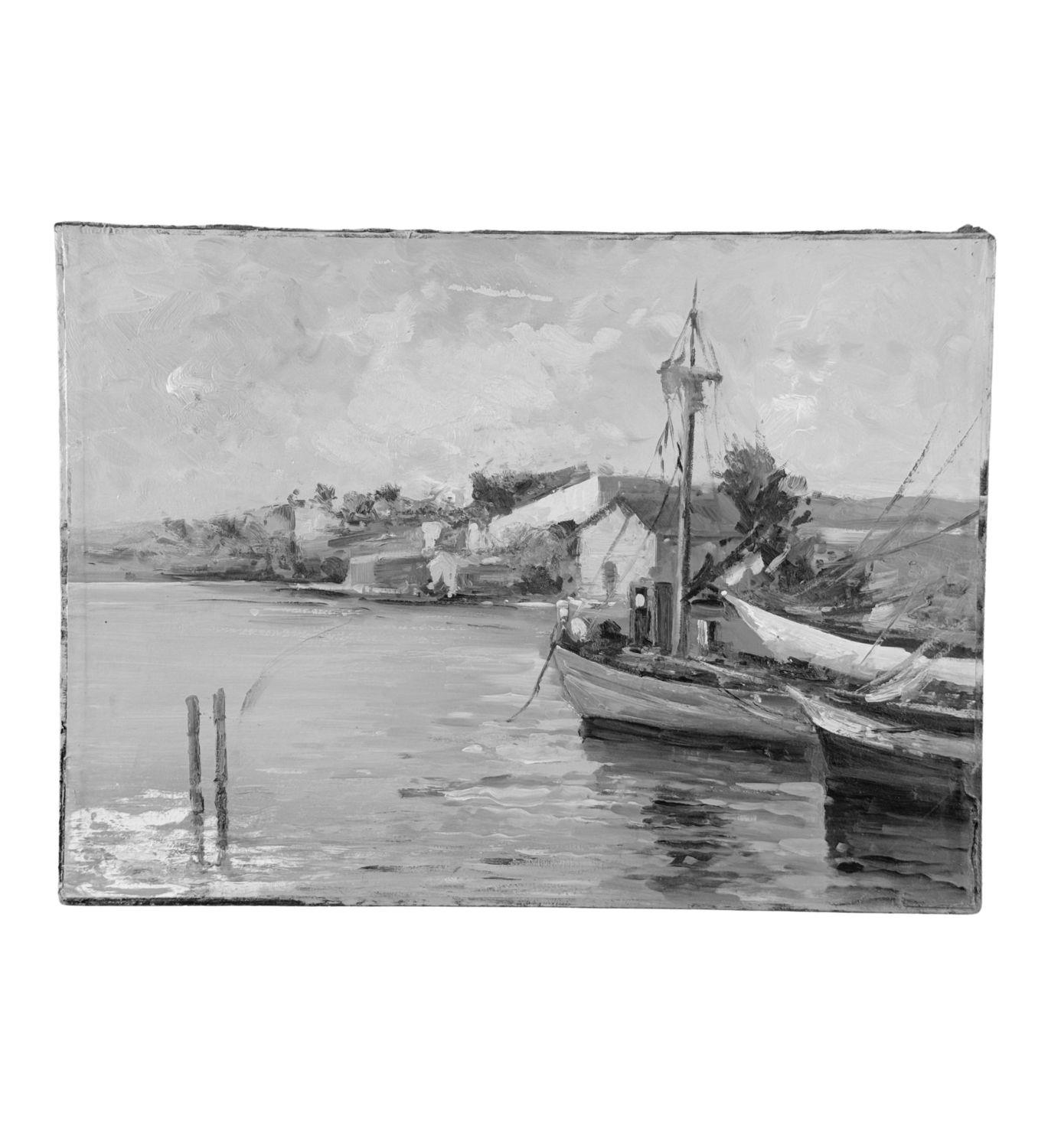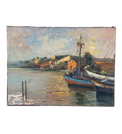 Dipinto olio su cartoncino, periodo XX secolo scuola Italiana, raffigurante Scena marina con barche. Dimensioni: 35x48 cm. Da artista anonimo. Opera in buone condizioni.