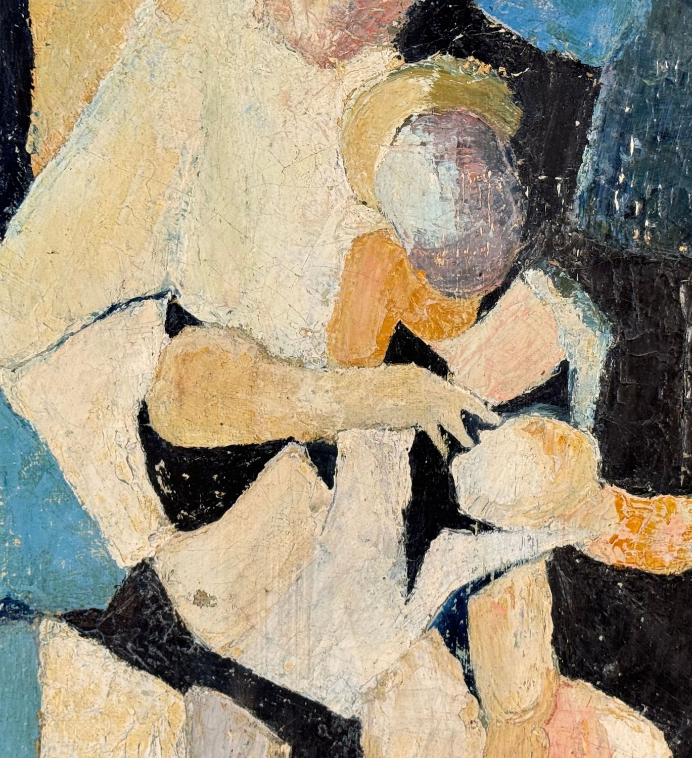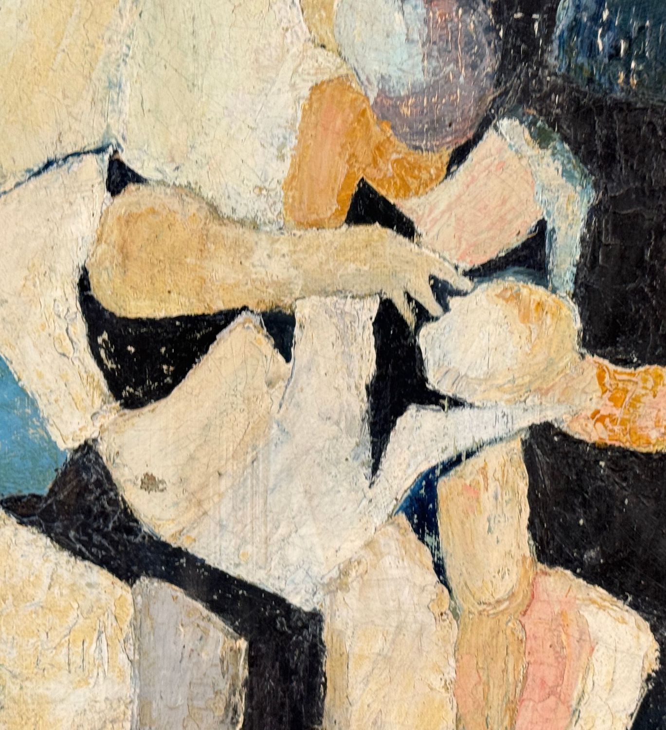 Dipinto olio su tela, periodo XX secolo scuola Italiana, raffigurante Due figure astratte. Dimensioni: 49x60 cm. Da artista anonimo. Opera in buone condizioni con lievi segni di vissuto come da foto allegate.