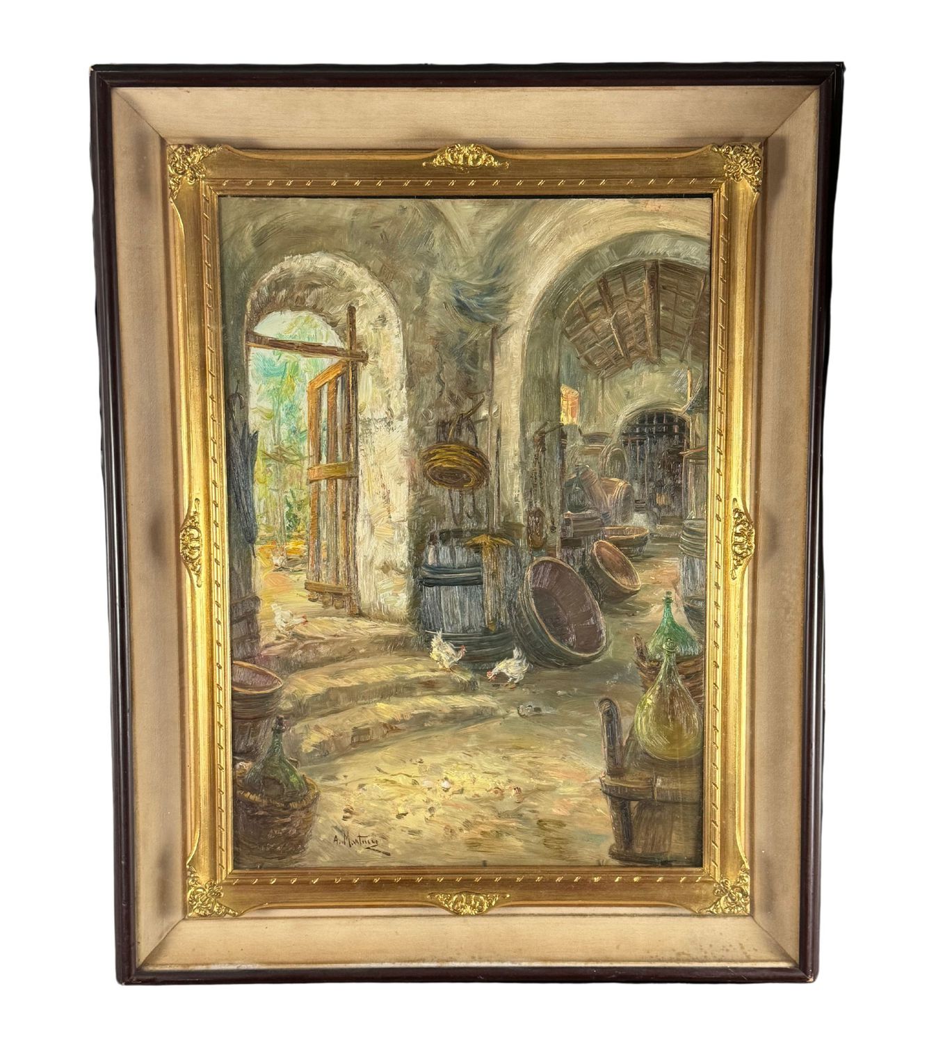 Dipinto olio su tavola, periodo XX secolo, scuola Italiana, raffigurante Interno di stalla. Dimensioni compreso cornice: 75x96 cm. Dimensioni interno cornice: 50x71 cm. Reca firma in basso a sinistra Antonio Martucci. Opera in buone condizioni e di ottima qualità artistica.