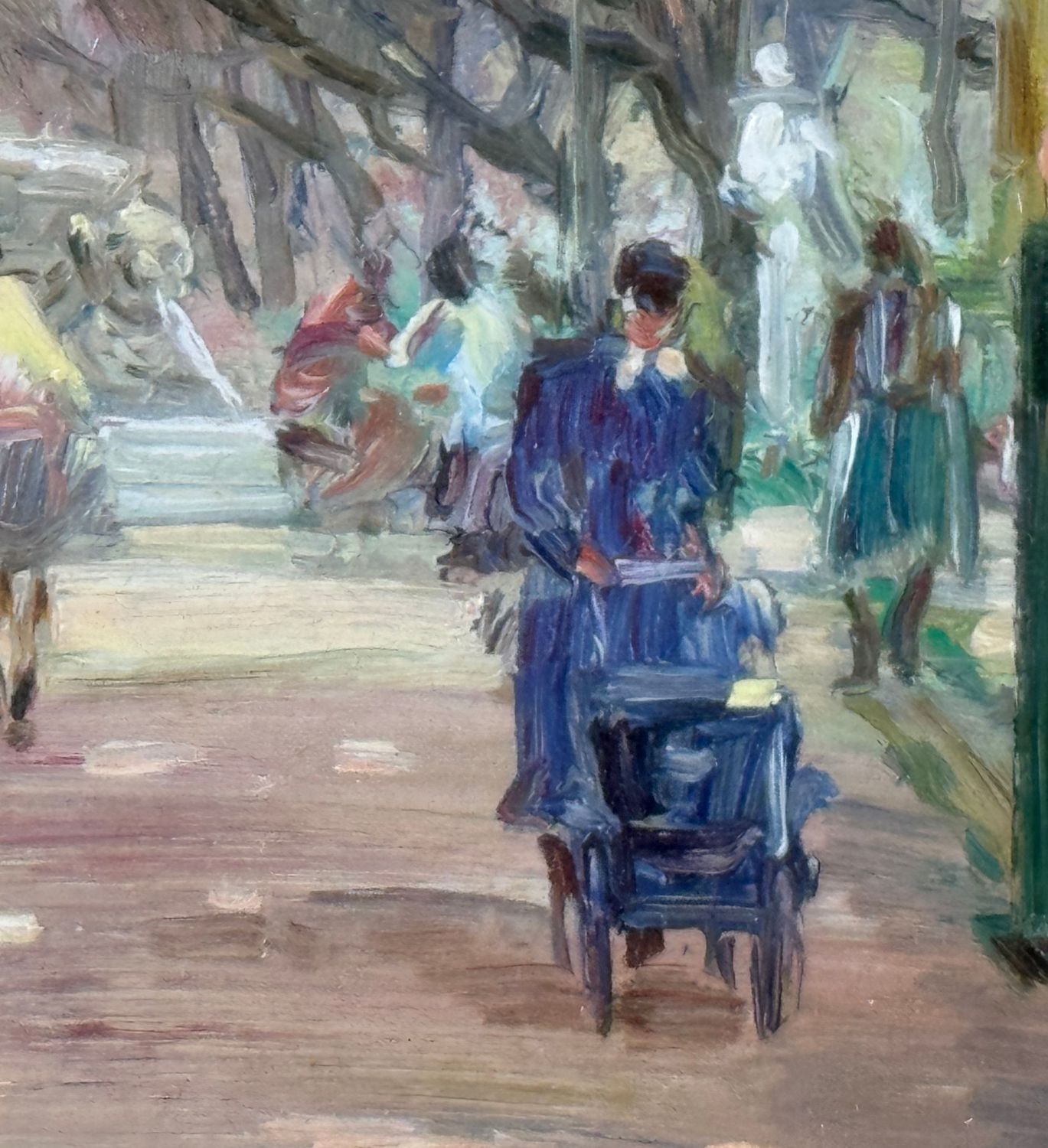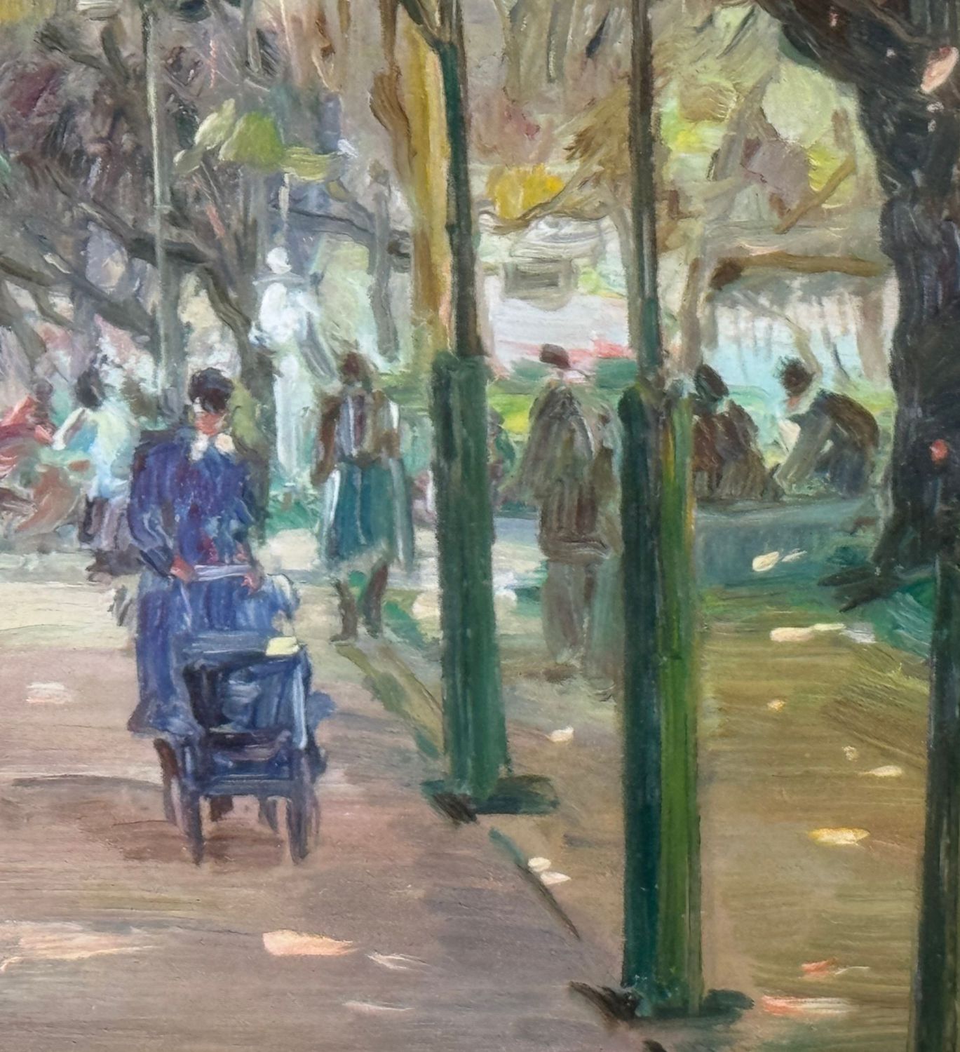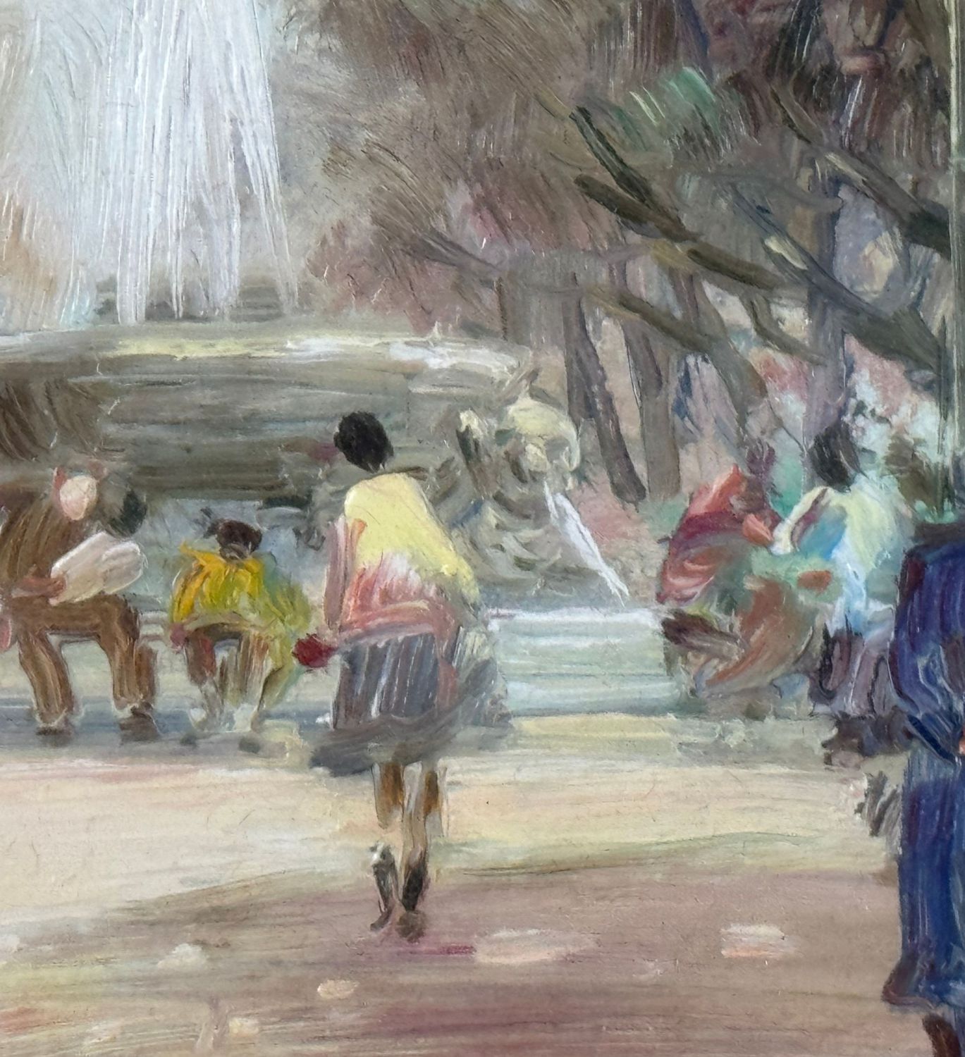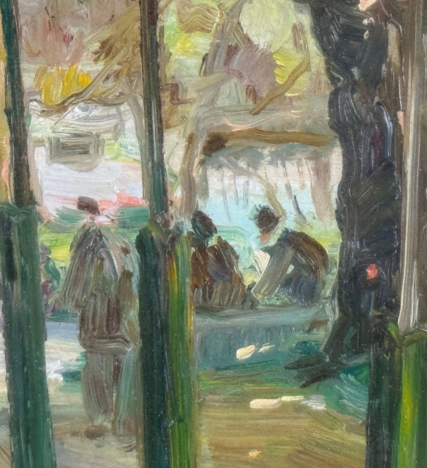 Dipinto olio su tavola, periodo XX secolo, scuola Italiana, raffigurante Personaggi alla Villa Comunale a Napoli. Dimensioni compreso cornice: 55x49 cm. Dimensioni interno cornice: 25x30 cm. Reca firma in basso a sinistra Antonio Martucci. Opera in buone condizioni.
