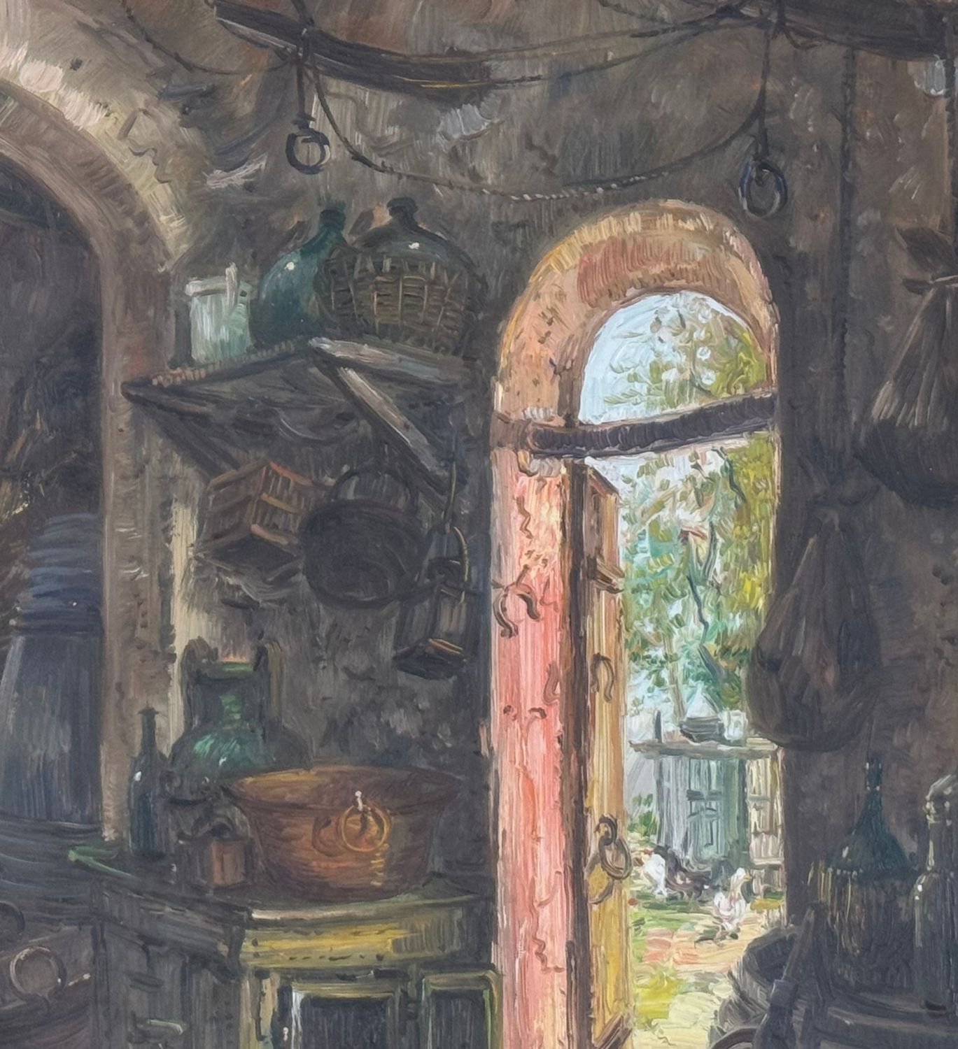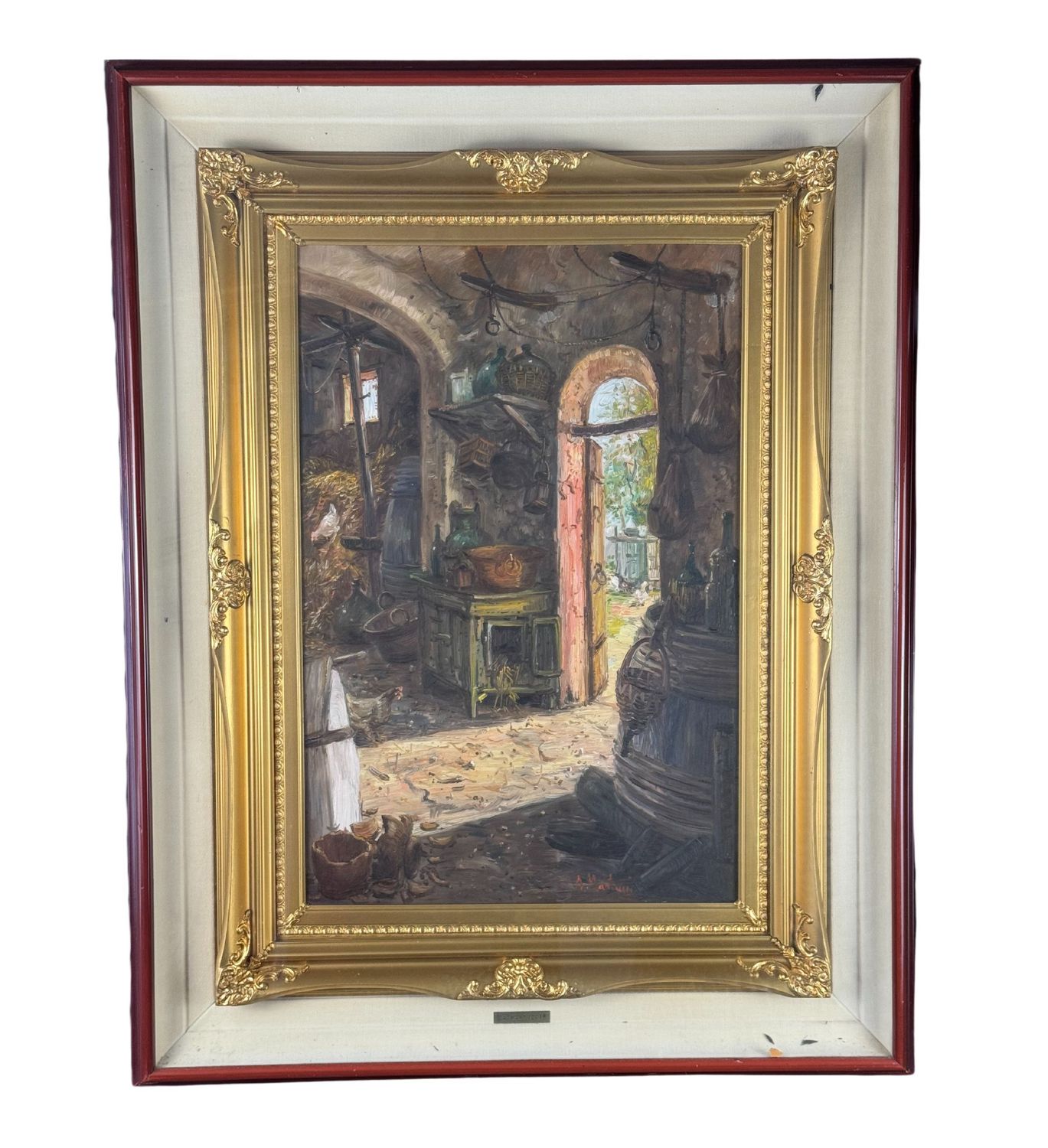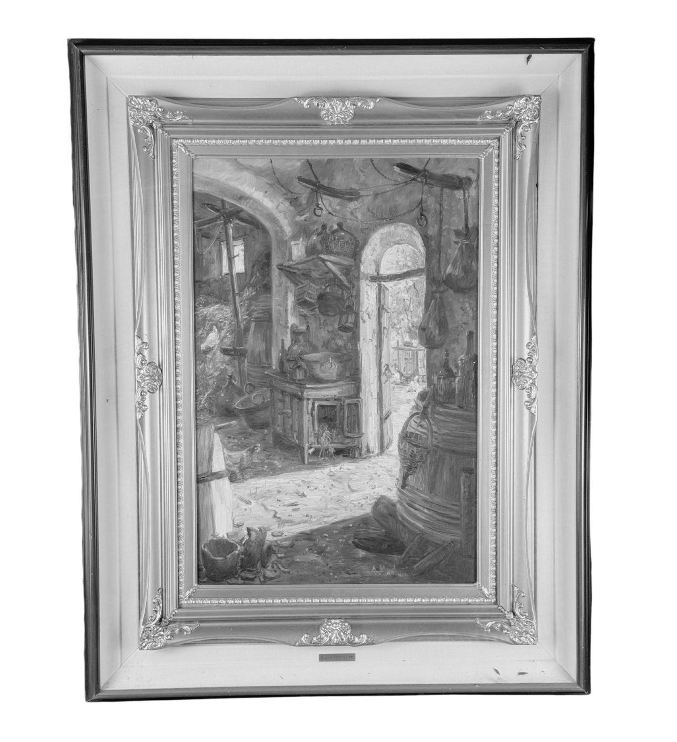 Dipinto olio su tavola, periodo XX secolo, scuola Italiana, raffigurante Interno di stalla. Dimensioni compreso cornice: 71x91 cm. Dimensioni interno cornice: 40x60 cm. Reca firma in basso a destra Antonio Martucci. Opera in buone condizioni.