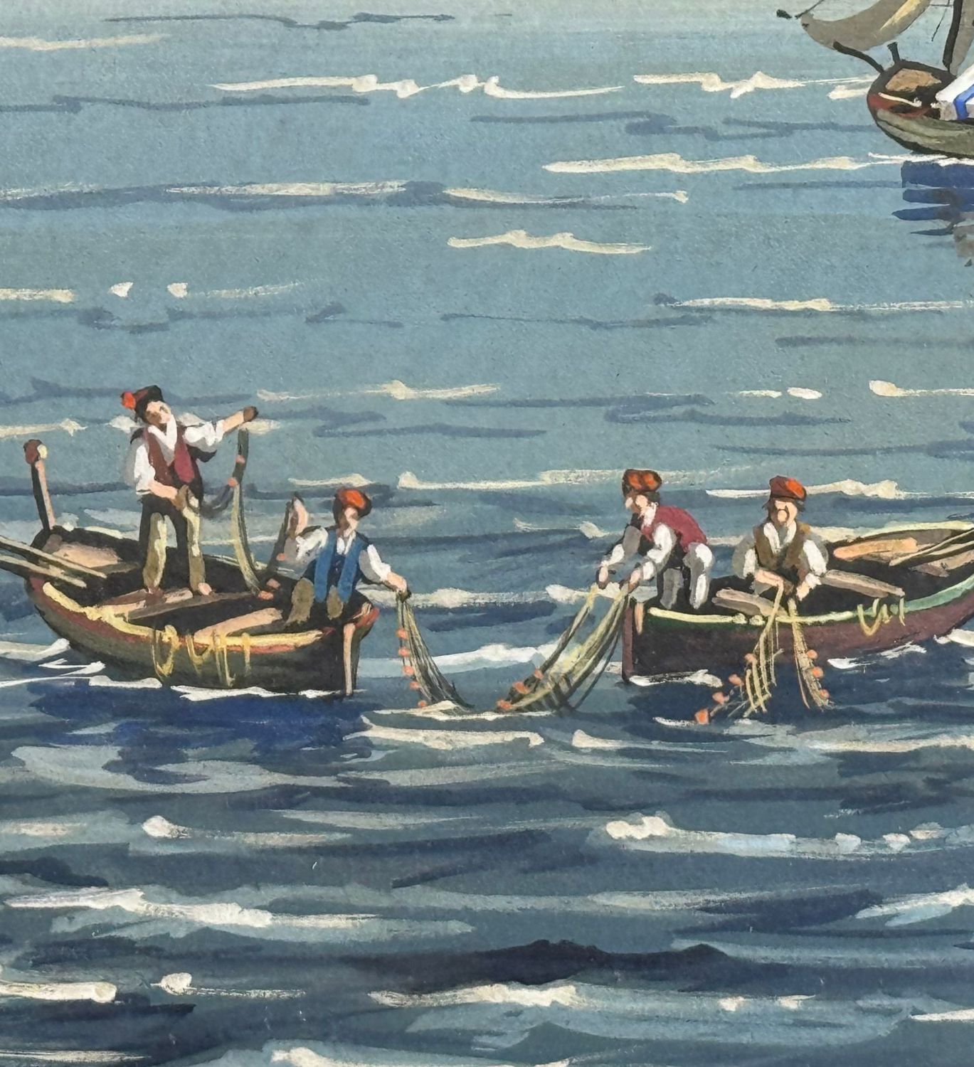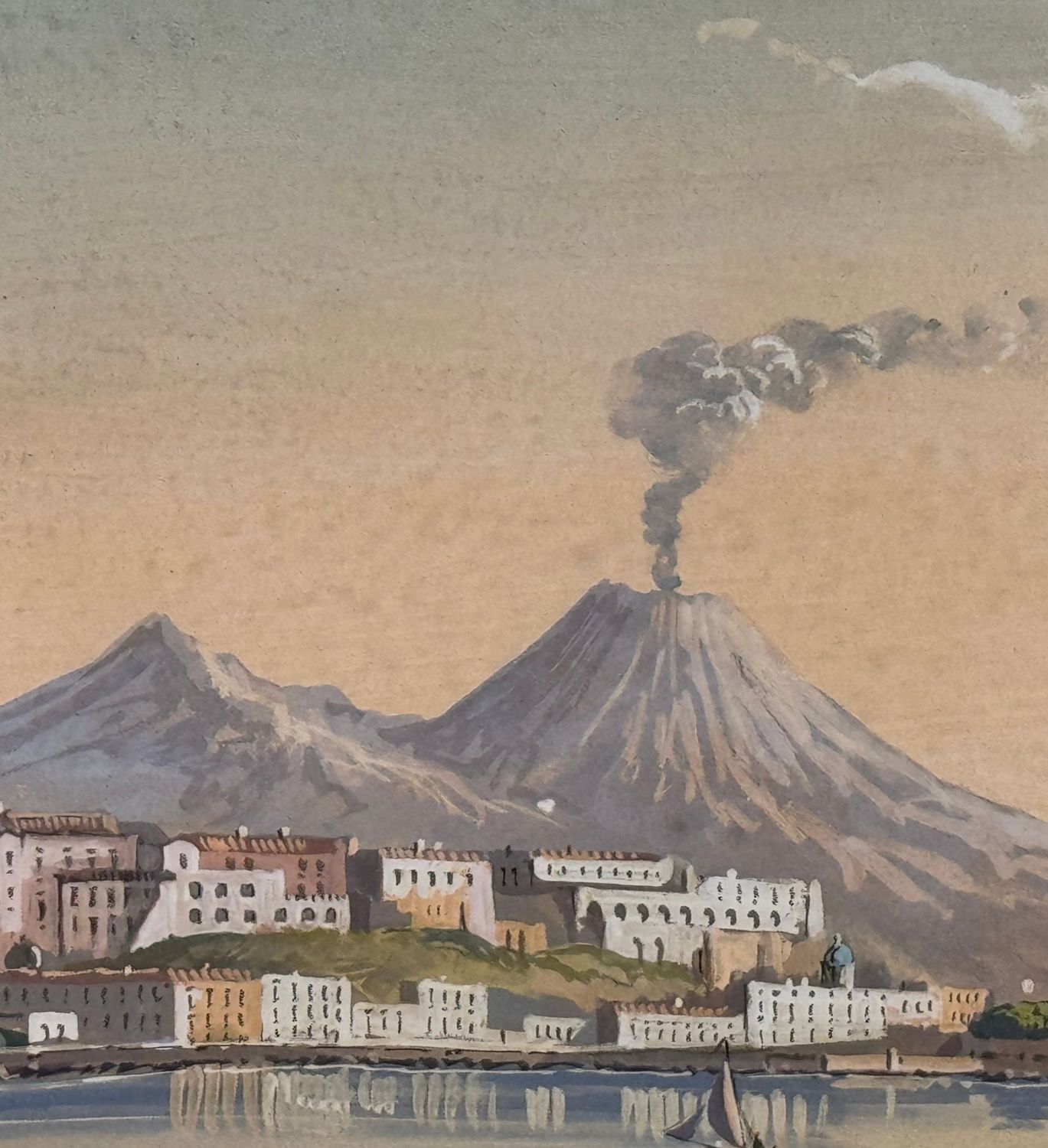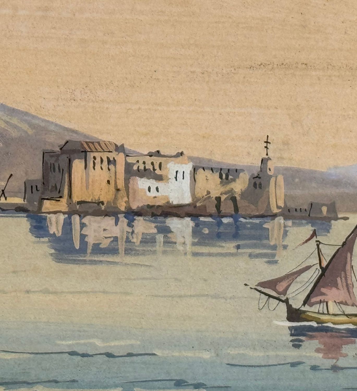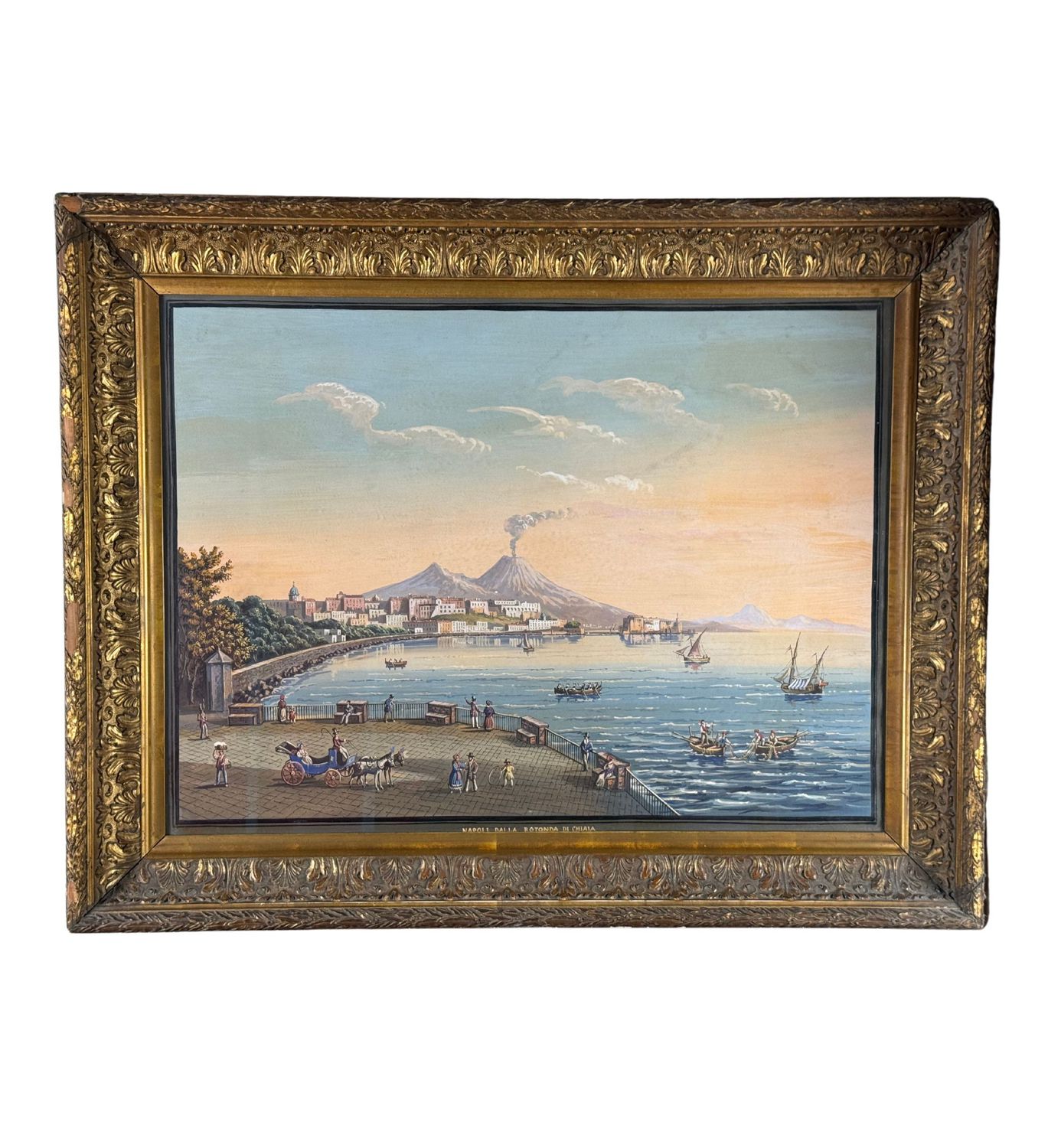 Dipinto guazzo (Acquerello su carta), periodo XIX/XX secolo scuola Italiana, raffigurante Veduta di Napoli. Dimensioni compreso cornice: 76x96 cm. Dimensioni interno cornice: 57x77 cm. Da artista anonimo. Opera in buone condizioni.