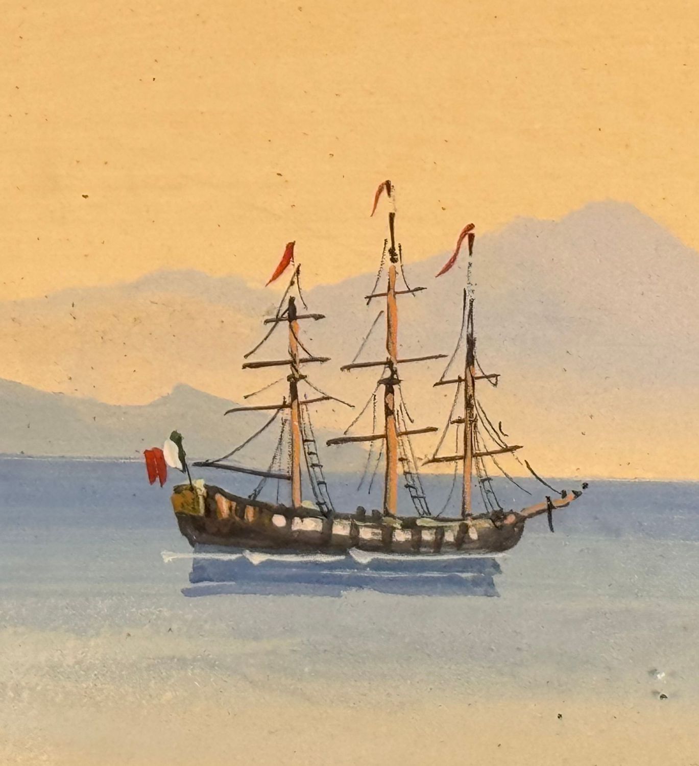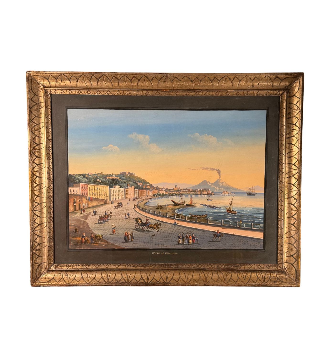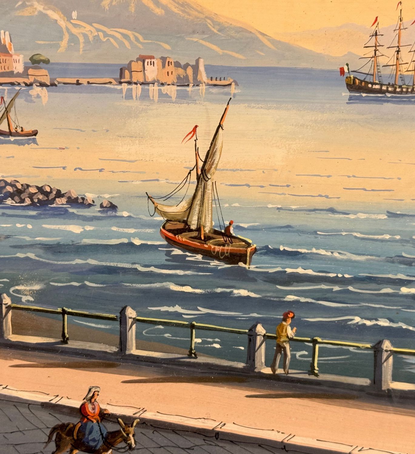 Dipinto guazzo (Acquerello su carta), periodo prima metà del XX secolo scuola Italiana, raffigurante Veduta di Napoli da Mergellina. Dimensioni compreso cornice: 74x94 cm. Dimensioni interno cornice: 60x80 cm. Da artista anonimo. Opera in buone condizioni.