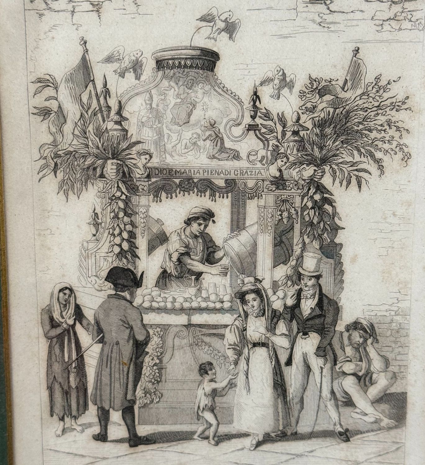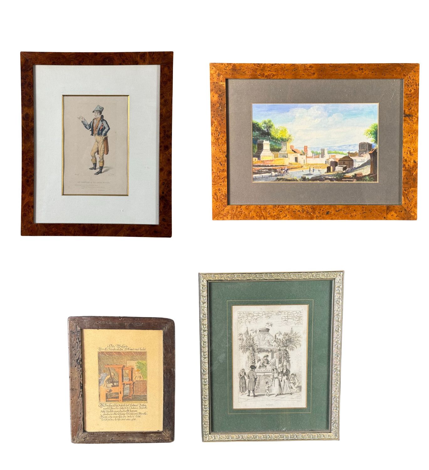 Lotto di quattro stampe e incisioni di varie raffigurazioni, periodo XIX/XX secolo scuola Italiana. Dimensioni riportate sul retro delle incisioni. Artista anonimo. Opera in buone condizioni.