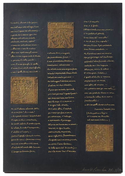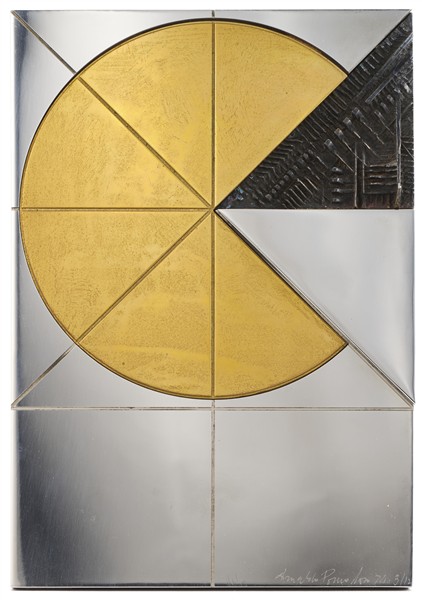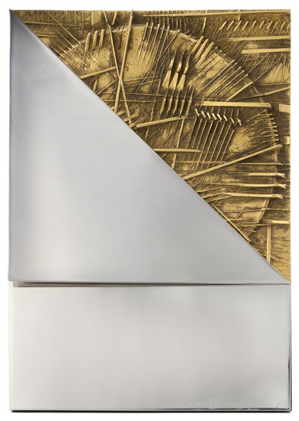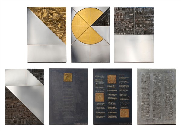 Arnaldo Pomodoro "Studio per 7 tavole" 1974 7 rilievi in ottone, ottone brunito,