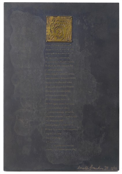 7 bronze reliefs, burnished brass, lead, silver-plated brass, steel, gilded brass and wood