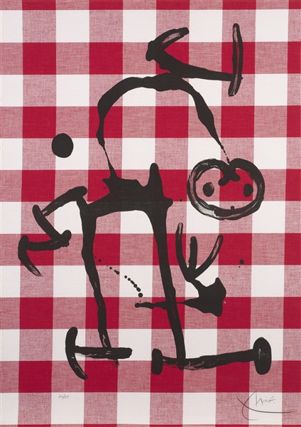 Joan Miró "L'Illêtre aux Carreaux rouges" 1969 litografia a colori su tela su ca