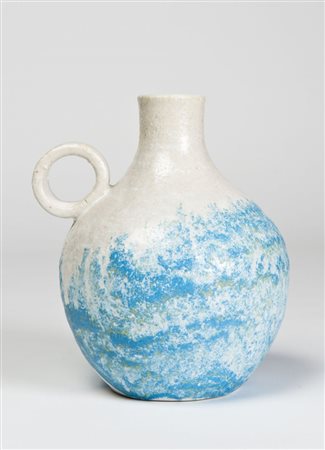 Marcello Fantoni (1915) - Piccola anfora in grès smaltato in avorio, azzurro...