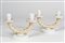 Manifattura Pauly, Murano (attr.) Coppia di candelieri a due luci in vetro lattimo con applicazione di foglia d'oro, metà circa del sec XX (h cm 16,5)