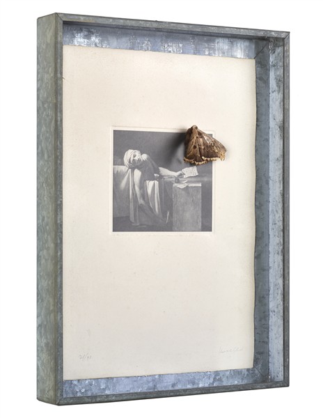 fotolito su carta, incasso calcografico, farfalla, in scatola di lamiera zincata