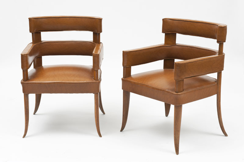 Guglielmo Ulrich (Milano 1904 - 1977) - Coppia di poltroncine disegnate per la villa “Quota 110” di Marcello Piacentini, Milano 1933. Struttura in legno di pero naturale, quattro gambe curvilinee inflesse e rastremate, seduta e schienale rivestiti in similpelle marrone risalente agli anni 80. (cm 59x80x53) (lievi difetti) Provenienza: eredi Marcello Piacentini. Accompagnate da expertise scritta dell’Archivio Ulrich di Milano. Bibliografia: “Quota 110”. Villa in Roma alla Camilluccia, in «Domus», n. 97, gennaio 1936, pp. 2-13 L. Scacchetti, Guglielmo Ulrich, Federico Motta Editore, Milano 2009, pp. 203-205, 403 fig. 284, 483 dis. n. 284, 505. Ulrich. Gli oggetti fatti ad arte, a cura di Ugo La Pietra, Electa, Milano 1984, p 52 fig.36. M. Pisani, Architetture di Marcello Piacentini. Le opere maestre, Clear, Roma 2004, pp. 94-108 R. Dulio, “Potremo fare, uniti, una grande cosa”. Piacentini e Sironi, in Mario Sironi 1855-1961, catalogo della mostra, a cura di E. Pontiggia, Skira, Milano 2014, pp. 81-89