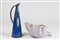 Lotto composto da una conchiglia in ceramica smaltata in avorio, giallo e lavanda di Marcello Fantoni e da un'anforetta versatoio in ceramica smaltata in grigio e blu di Ivanhoe Gambini (h. cm 26). Firmate sotto la base