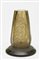 Vaso déco in vetro ambrato soffiato in stampo, decorato con profonde incisioni alla mola. Anni 30 del sec XX. Firma “FBR” all’acido sotto la base. (h cm 19)